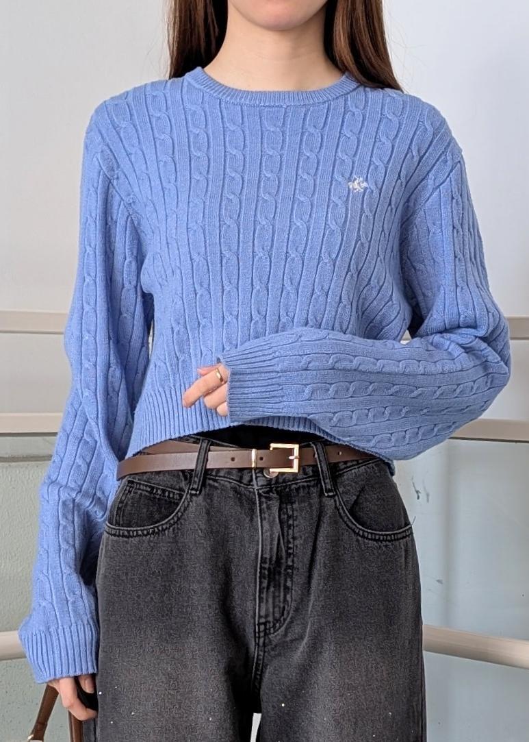 ROPÉ PICNIC【BEVERLYHILLS POLO CLUB・WEB限定】ケーブル編みクロップドニットプルオーバーサックス / F¥4,940レビューたっぷりとした袖のシルエットが可愛いです。クロップド丈なのでハイウエストボトムスとの相性抜群です。