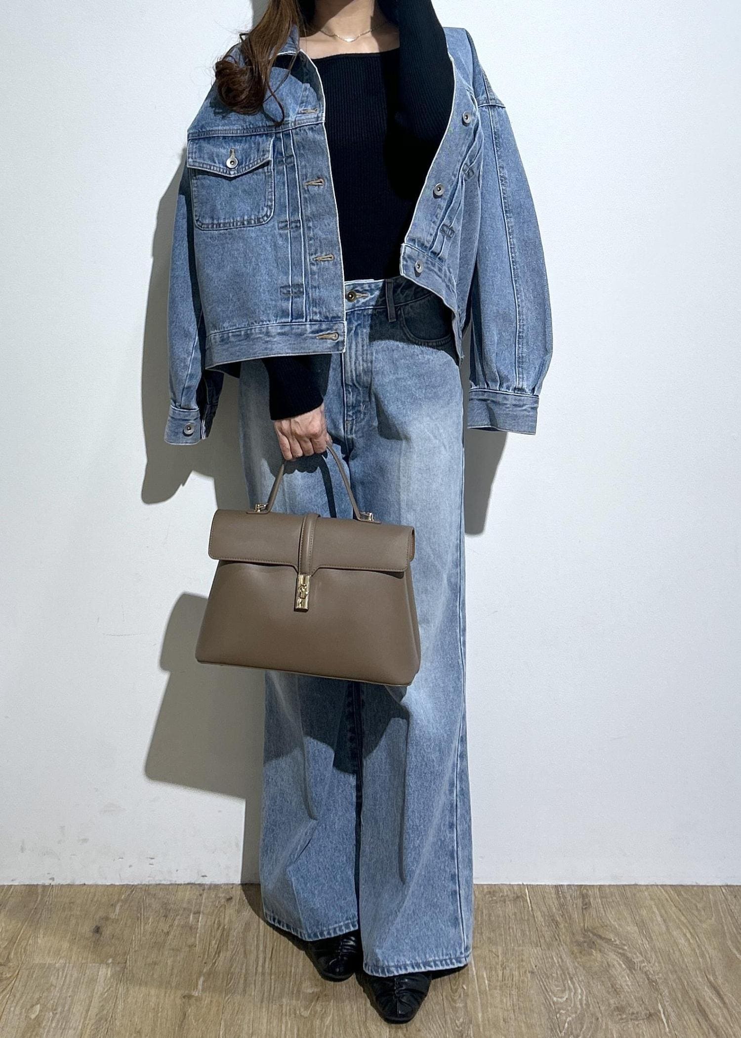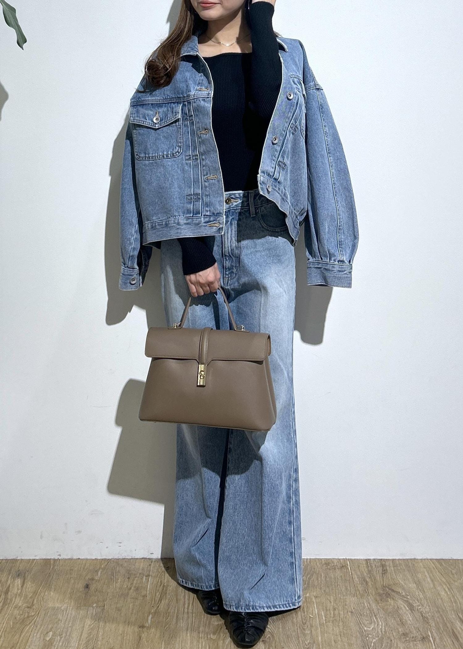 春にベストアイテムのデニムをセットアップで着用してみました◎デニム好きにはたまらないコーデです♡上下デニムですが、パンツはフレアタイプなのでカジュアルすぎずに綺麗にスタイルアップをしてくれます。