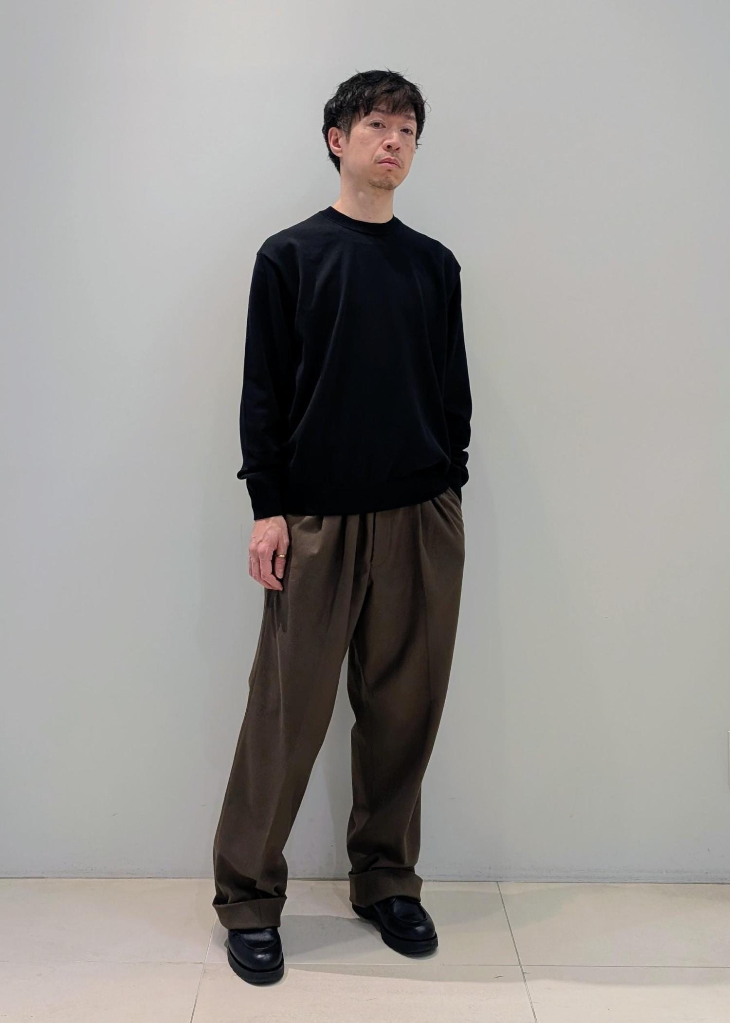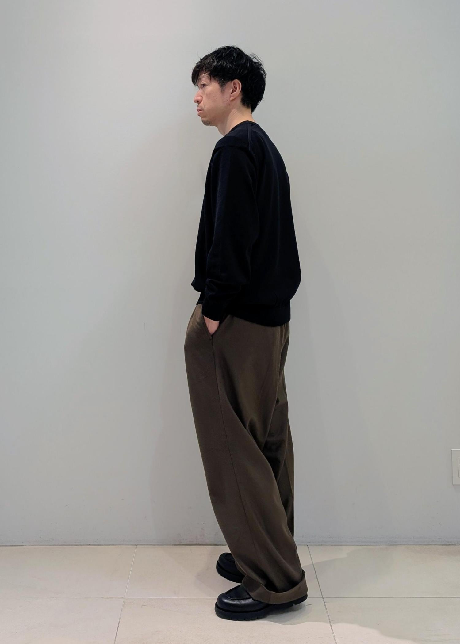 ADAM ET ROPÉ HOMME強撚プレーティング ニット プルオーバーブラック / M¥12,100レビューMサイズ着用。サラッとした生地で肌触りも軽く、ゆったりとしてますが大きくは見えないデザイン。