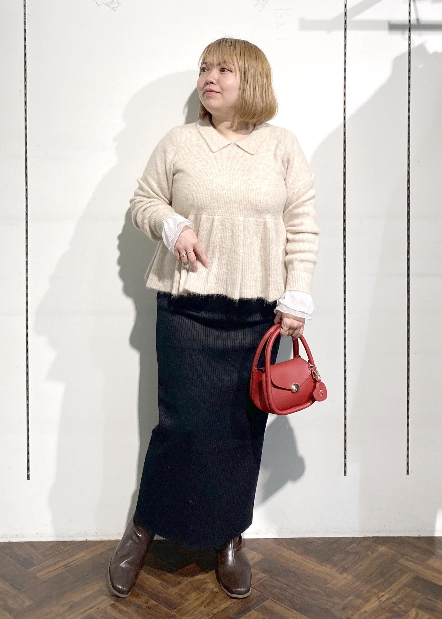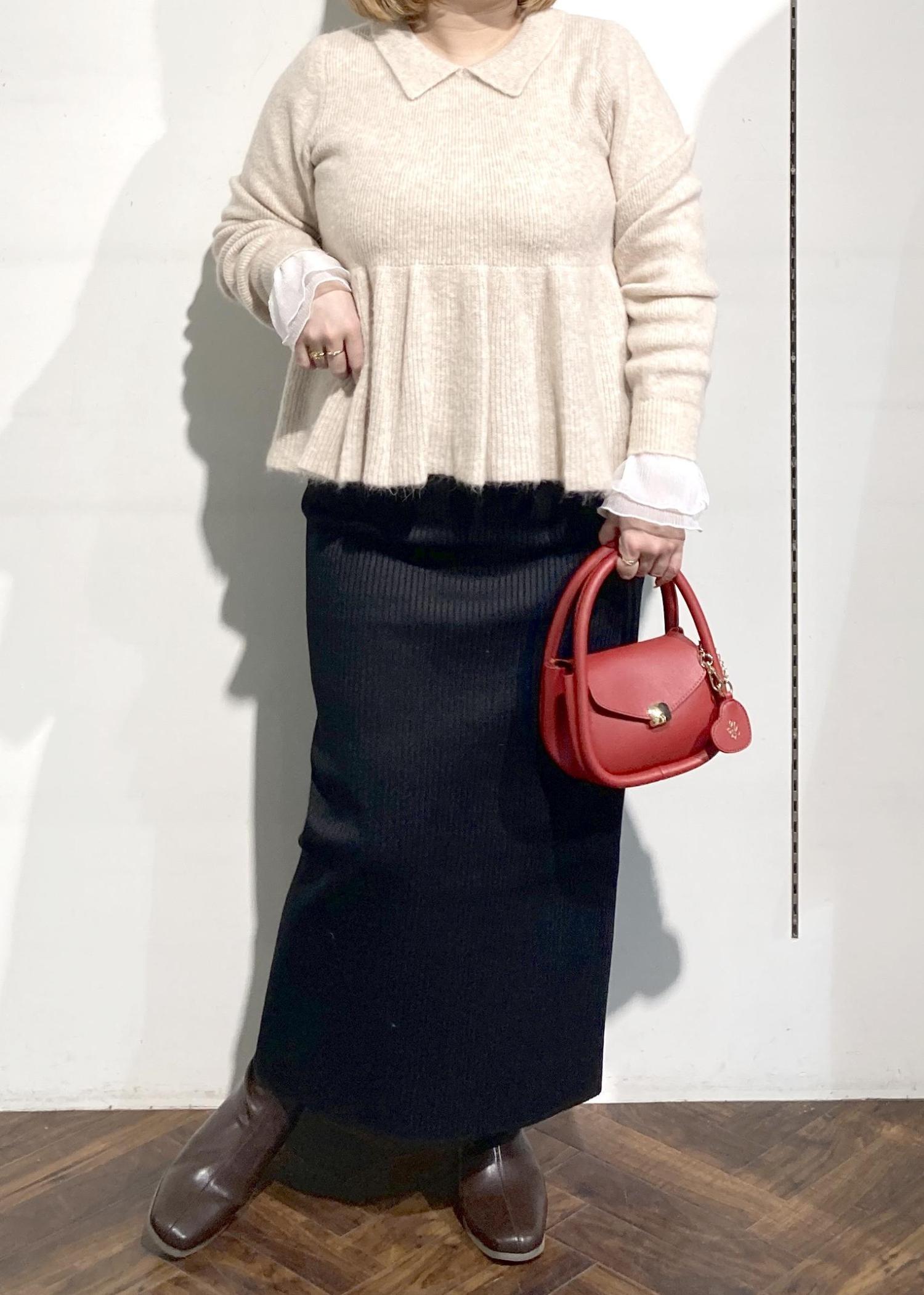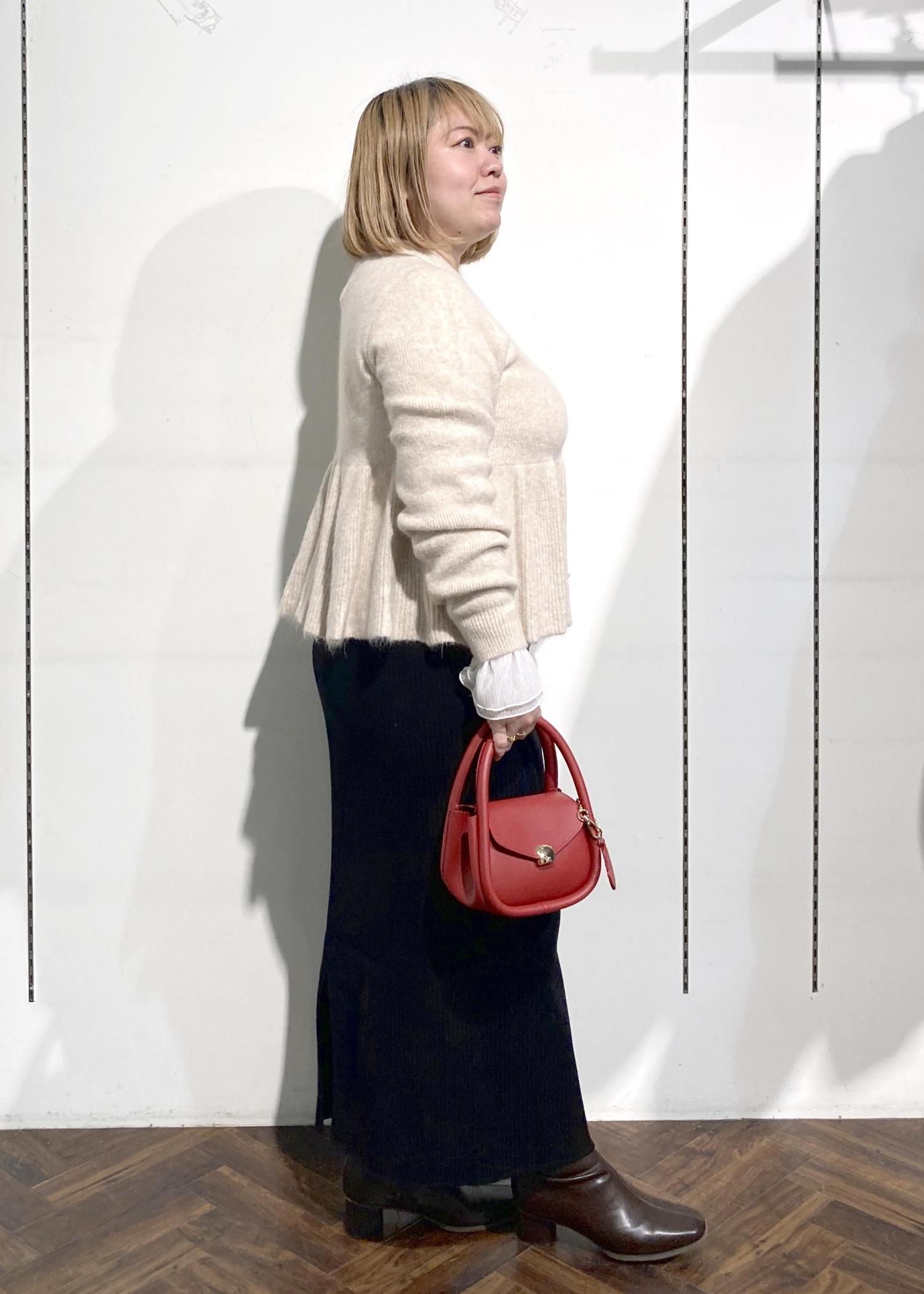 ペプラムニットコーデ