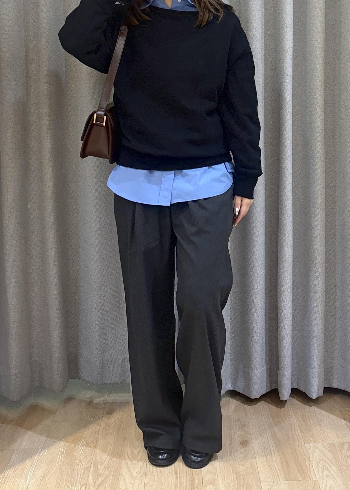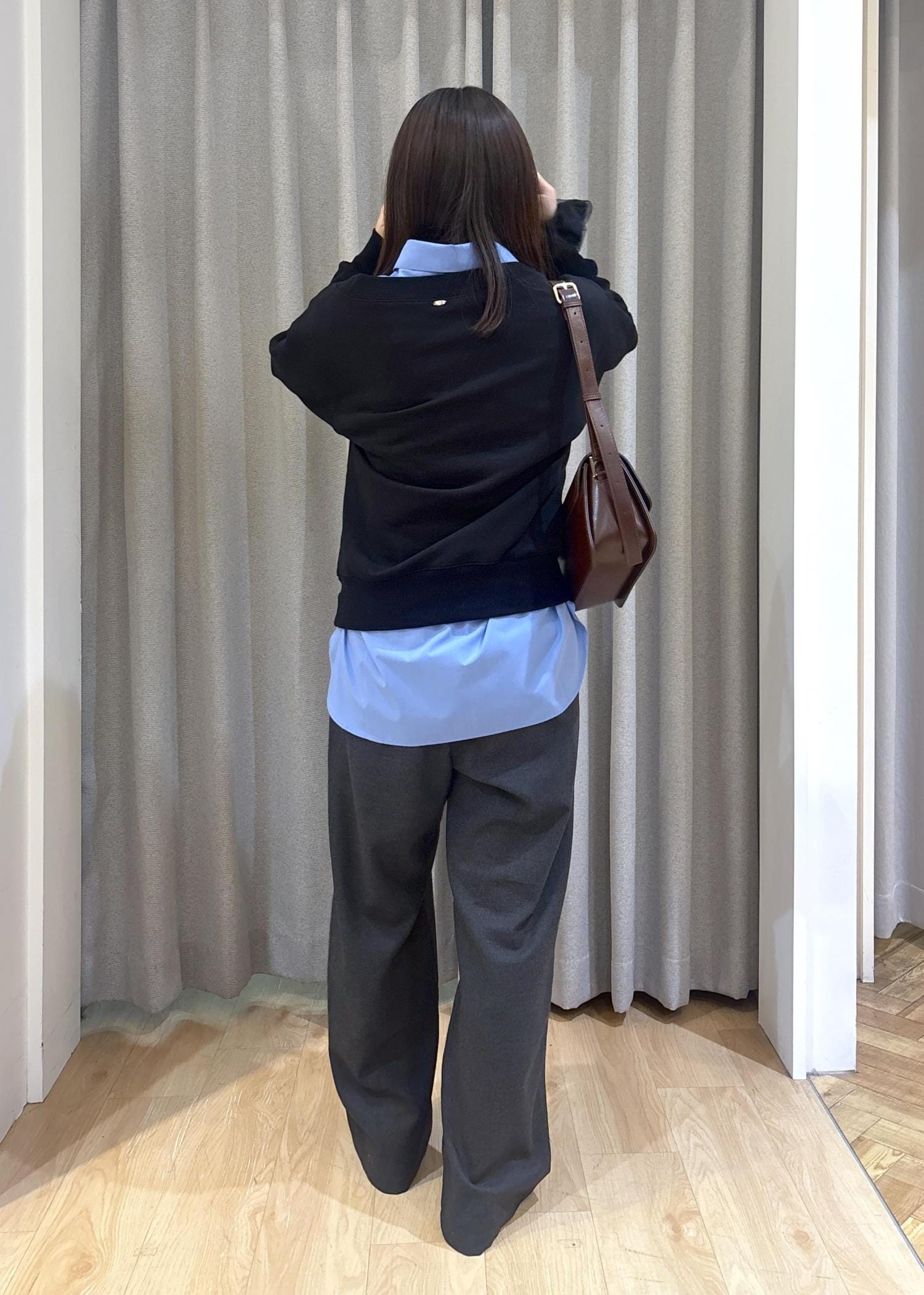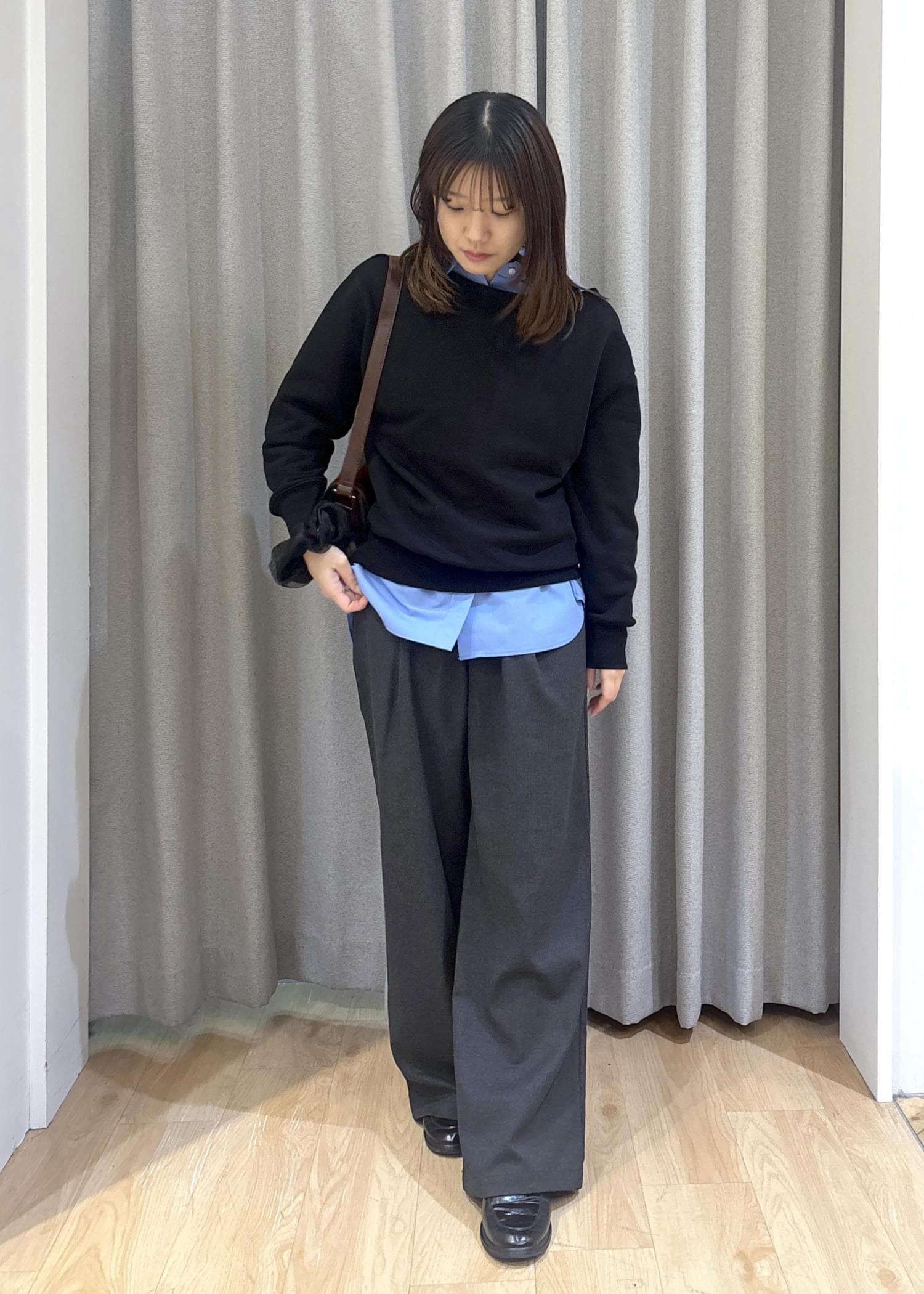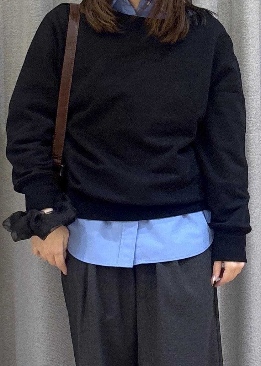 2WAYで使えるスウェットにシャツをレイヤードしてシンプルだけど今風のコーデにしてみました!