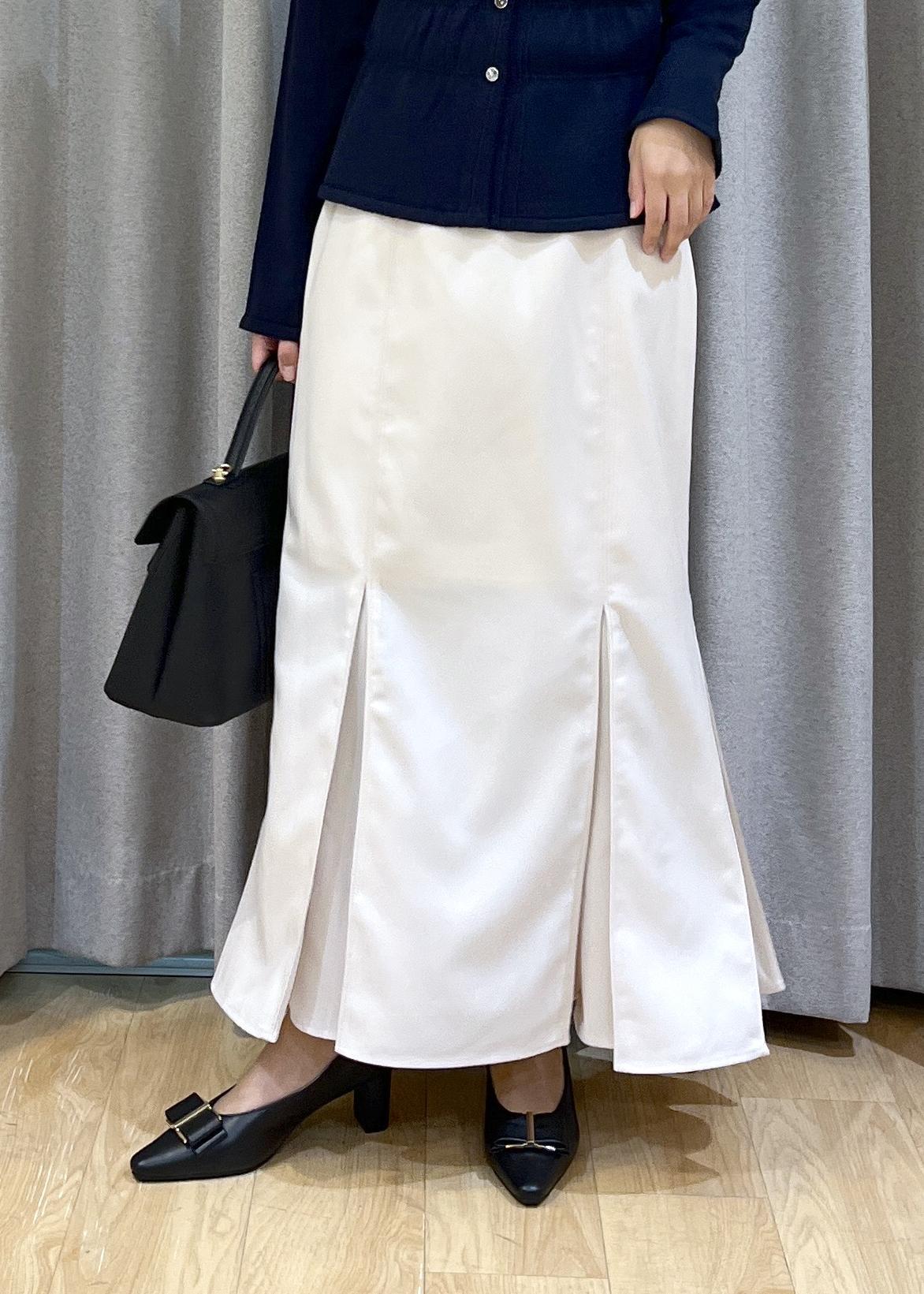 VISボックスプリーツマーメイドスカート/イージーケア・防シワベージュ / M¥6,589レビュー落ち感のある素材でロング丈でもすっきりとした印象。歩くたびにきれいなシルエットが出て上品に着用できます。ウエストまわりも窮屈感なくオフィスシーンにも安心。