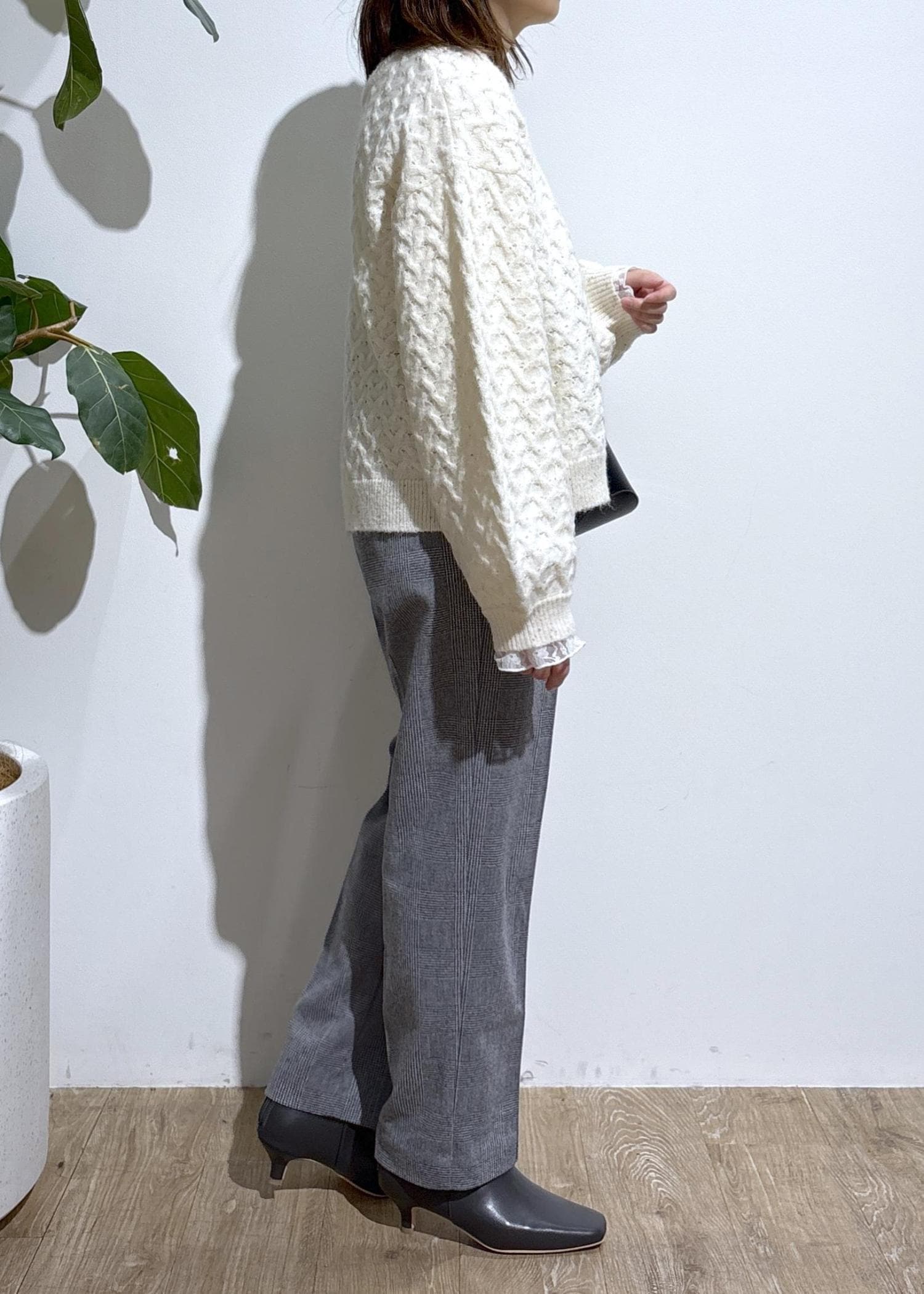 シンプルなので幅広いコーデに合わせやすく、艶感もあるのできれいめコーデに上品さをプラスしてくれます。
