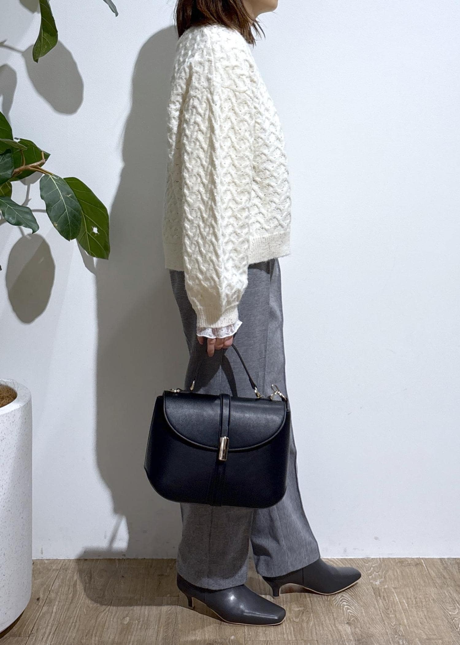 丸みがあるのでかっちりし過ぎず、普段使いのきれいめコーデにも活躍します。