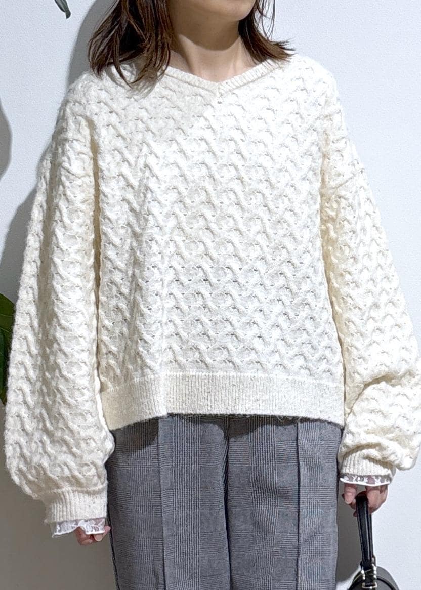 小花デザインのスパンコールがおしゃれなケーブルニット。