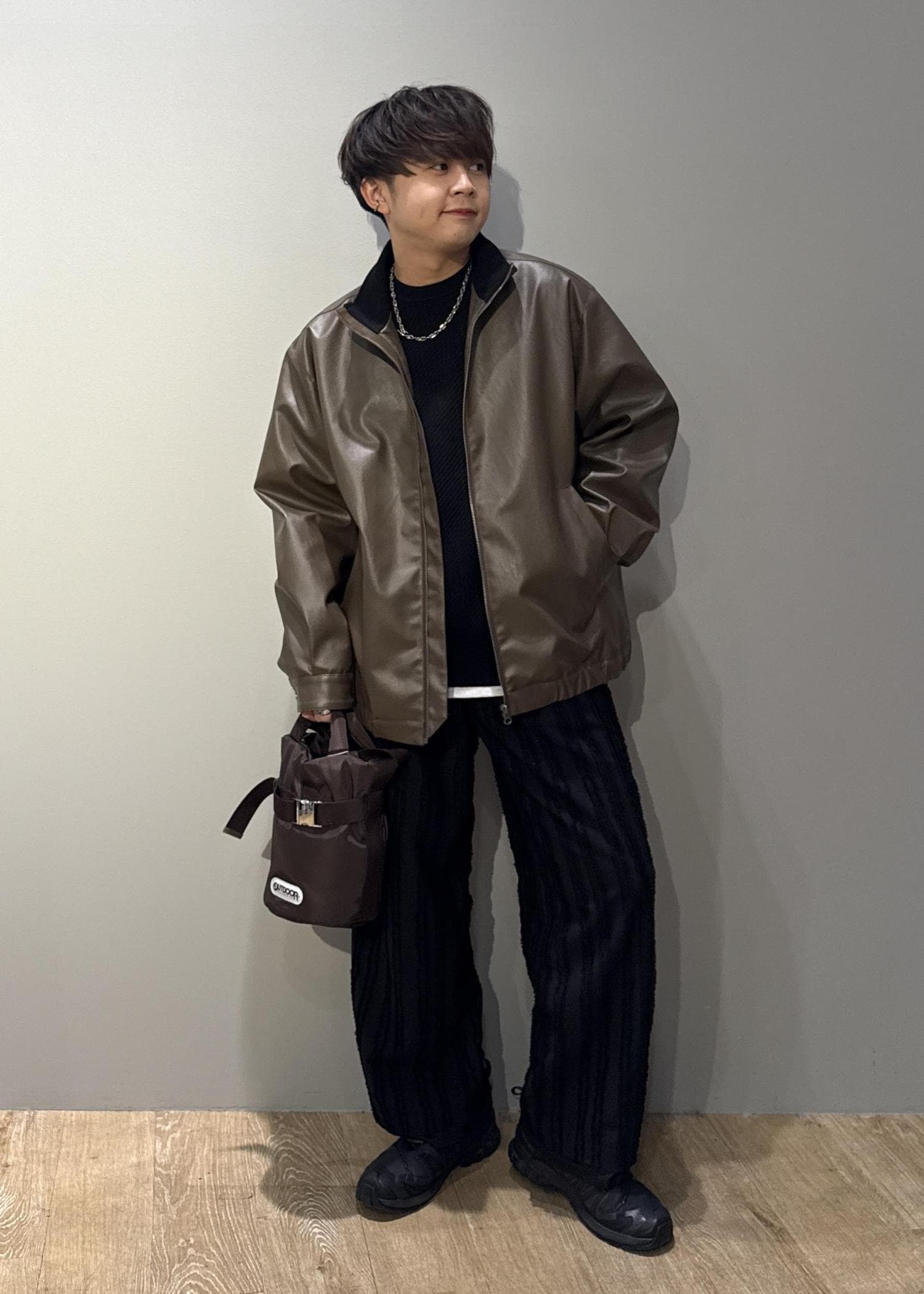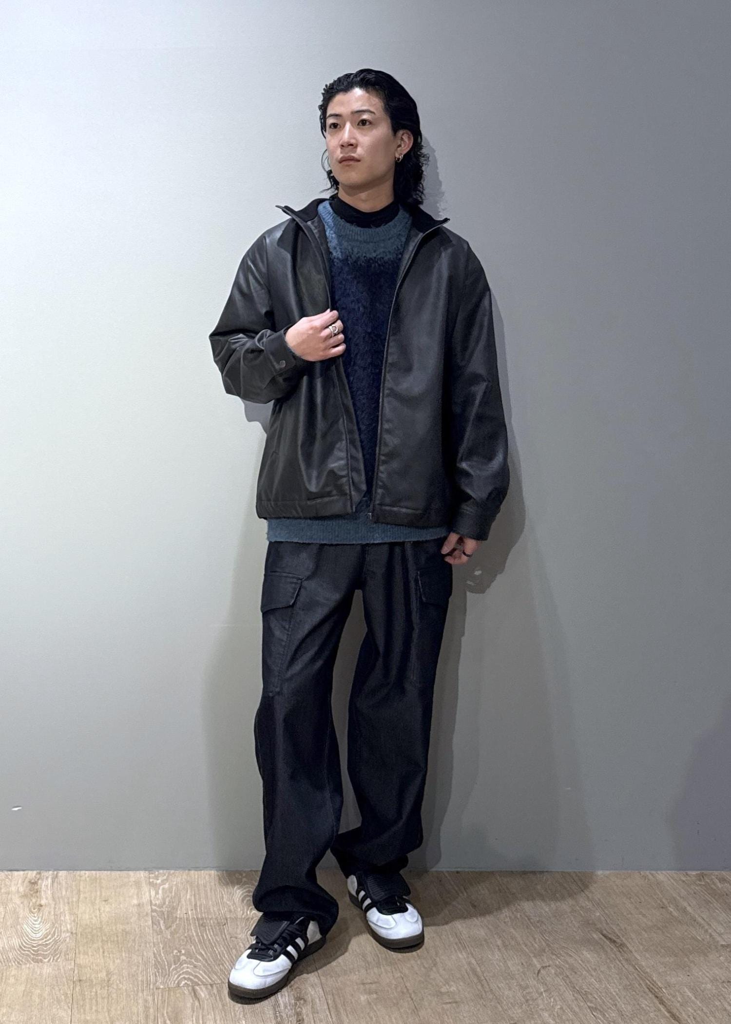 今回はレザーライクブルゾンを使ったコーデです。