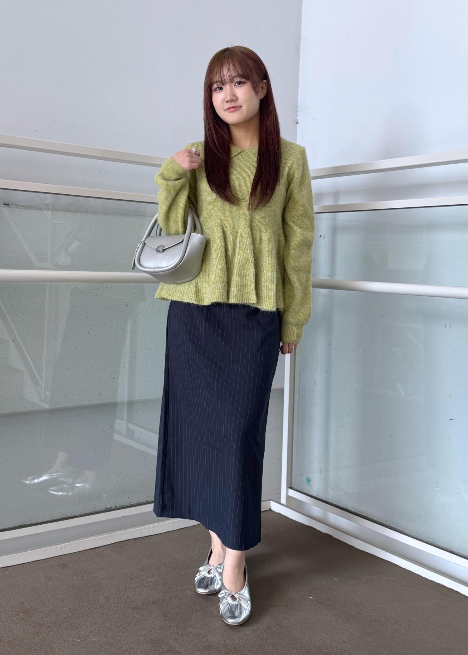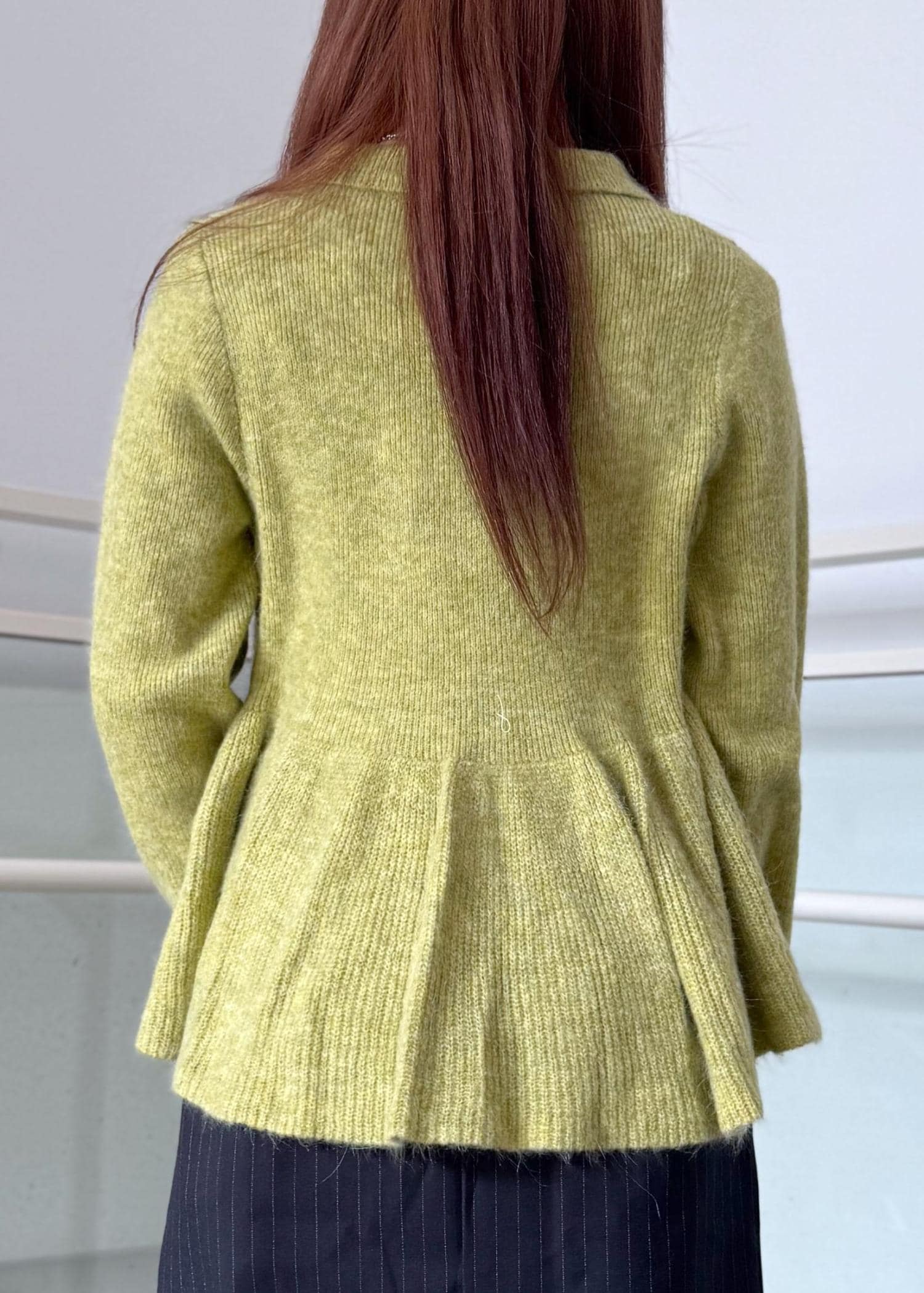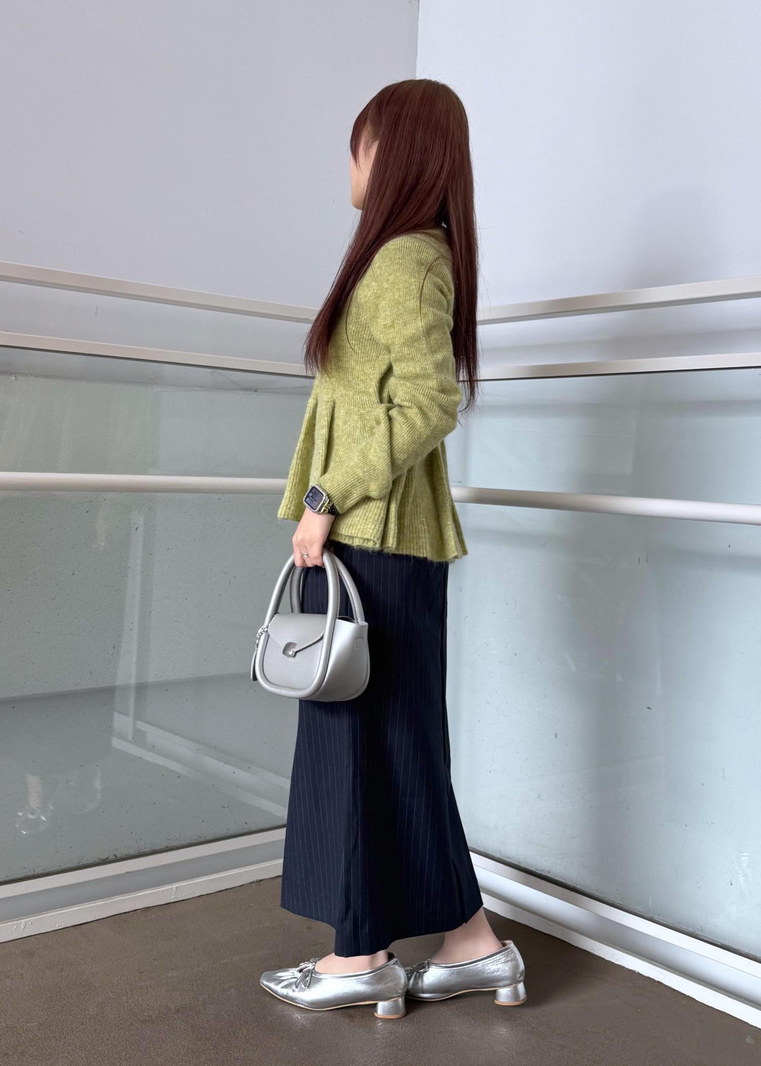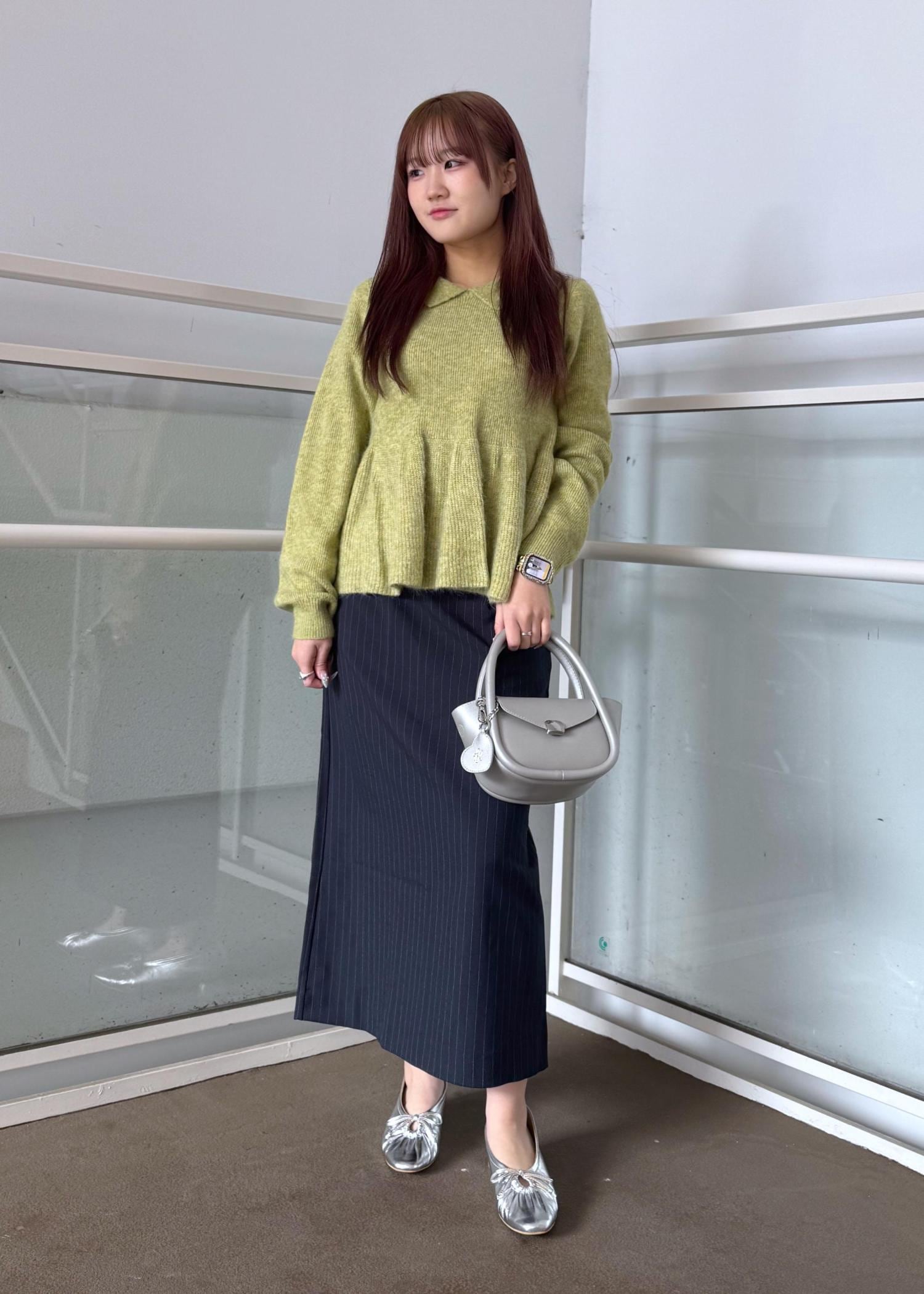 グリーンのペプラムニットが映える様なコーディネートにしました!