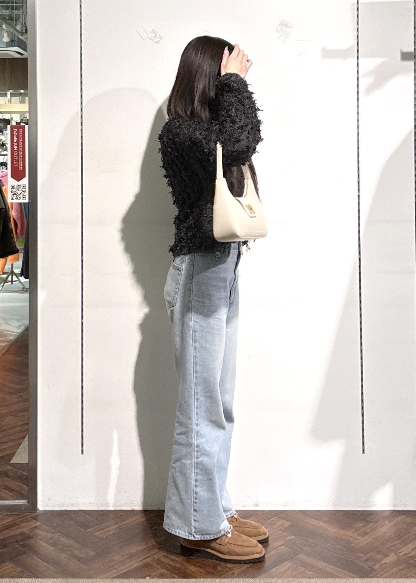 着丈は短めなのでパンツorスカートどちらでも合わせやすいです! -