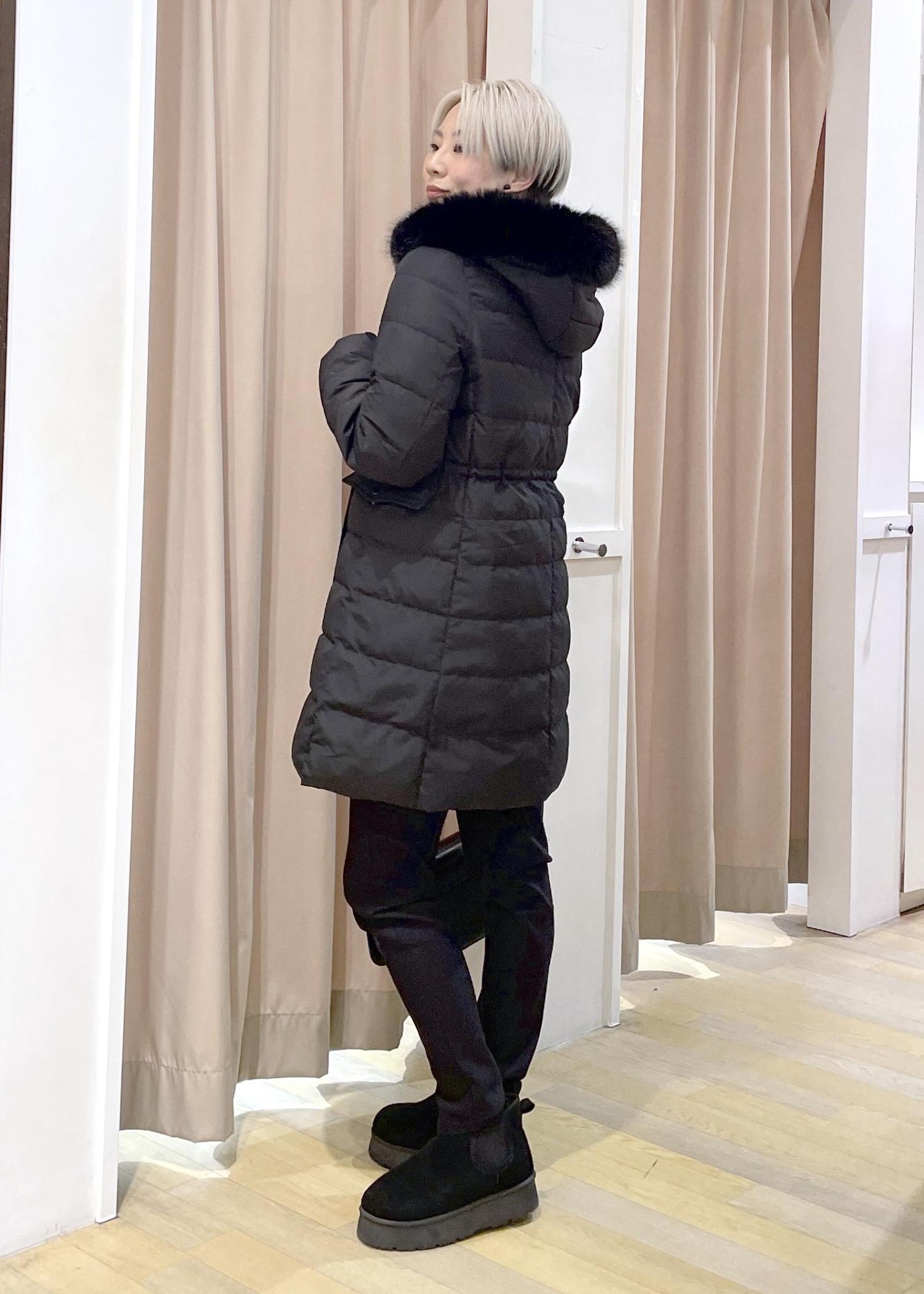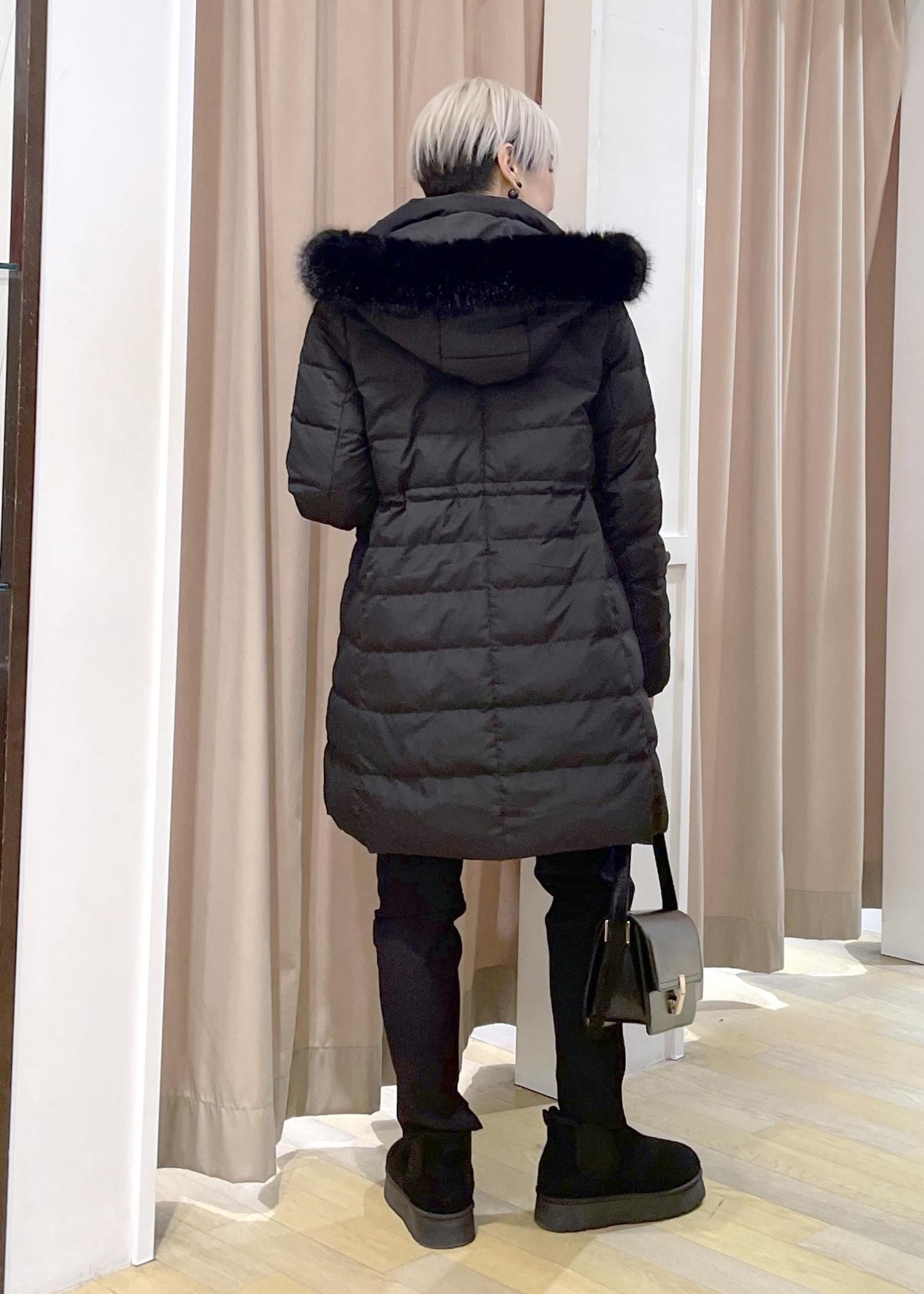 着膨れしにくいスッキリとしたシルエットのフェミニンなダウンコートです。