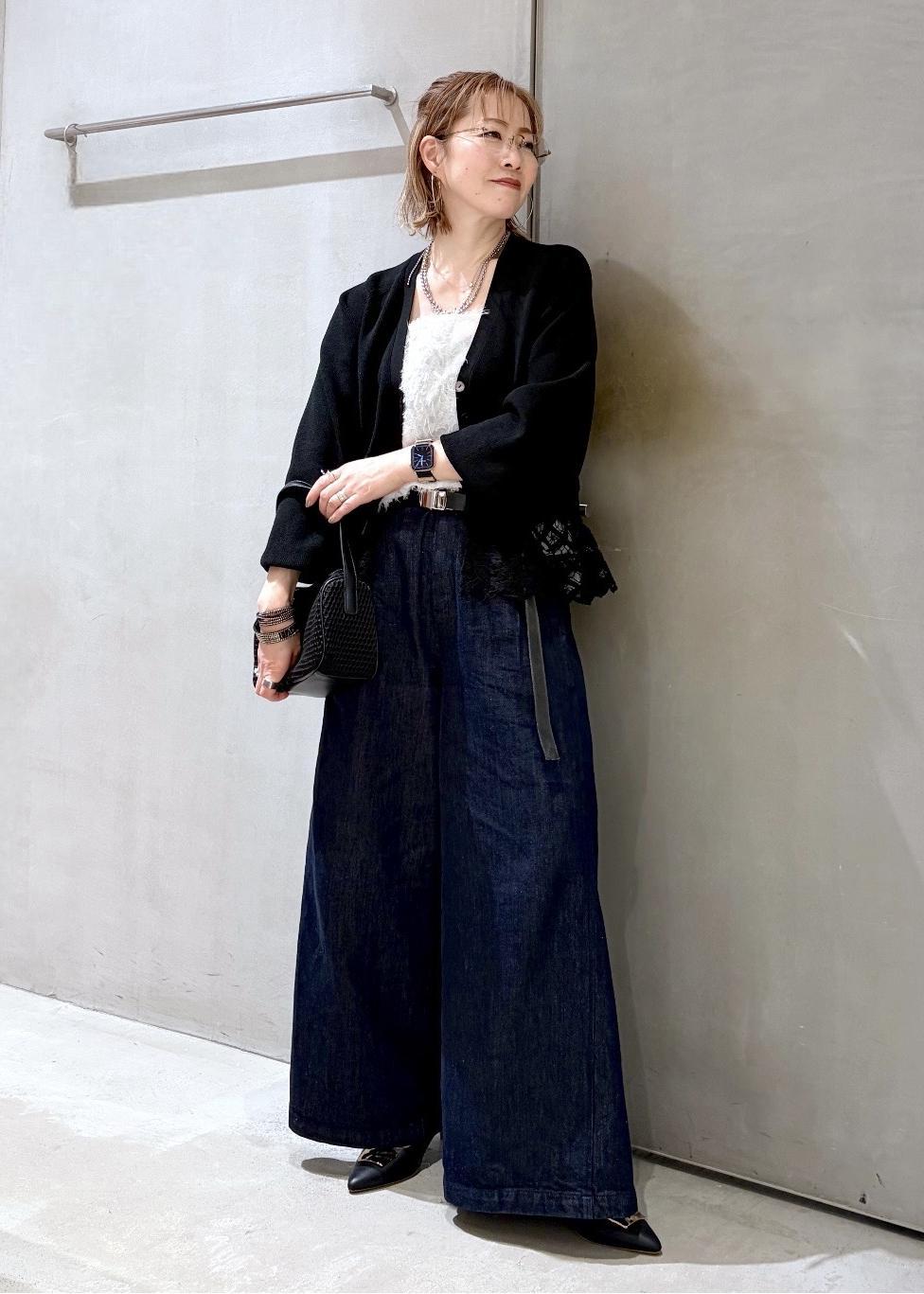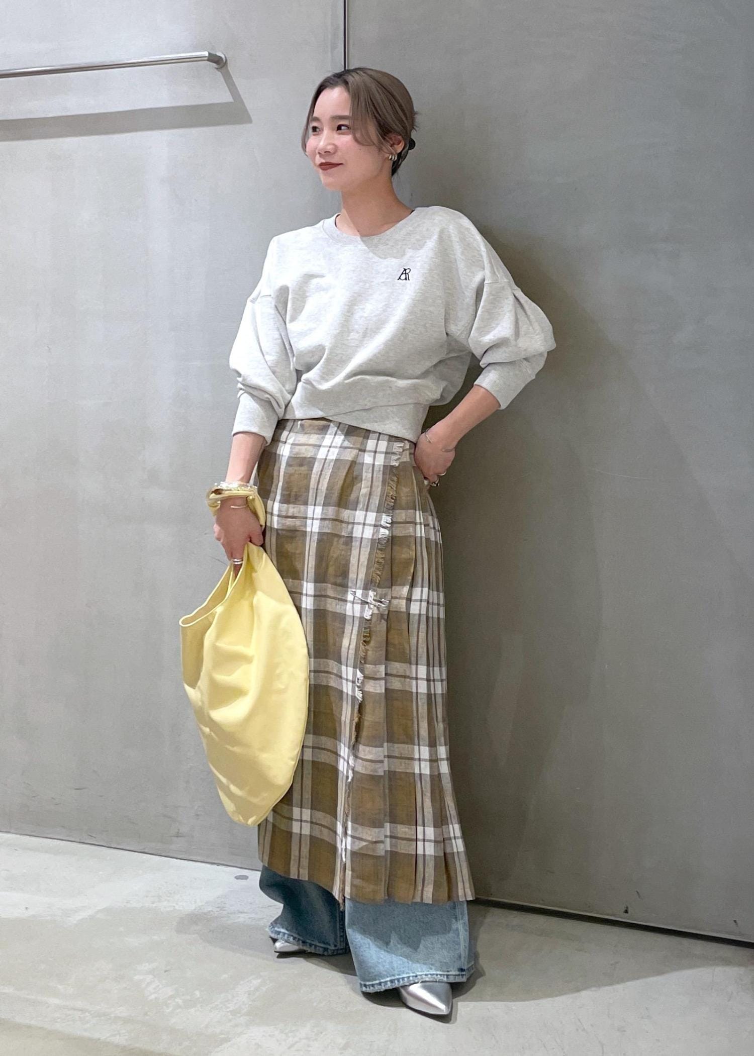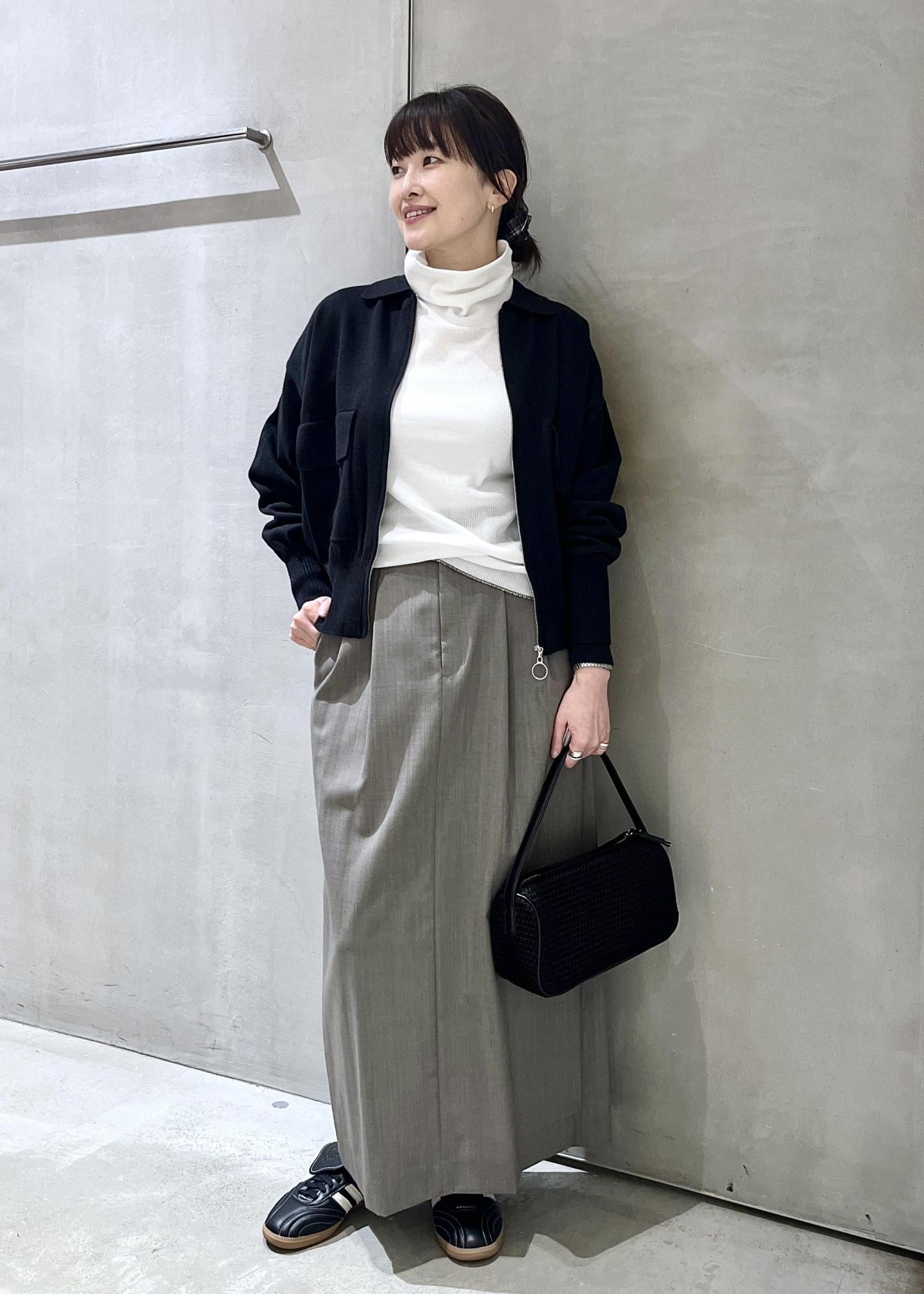 私の身長だと少し丈が短めに感じたので、パンツとのレイヤードがオススメです! -