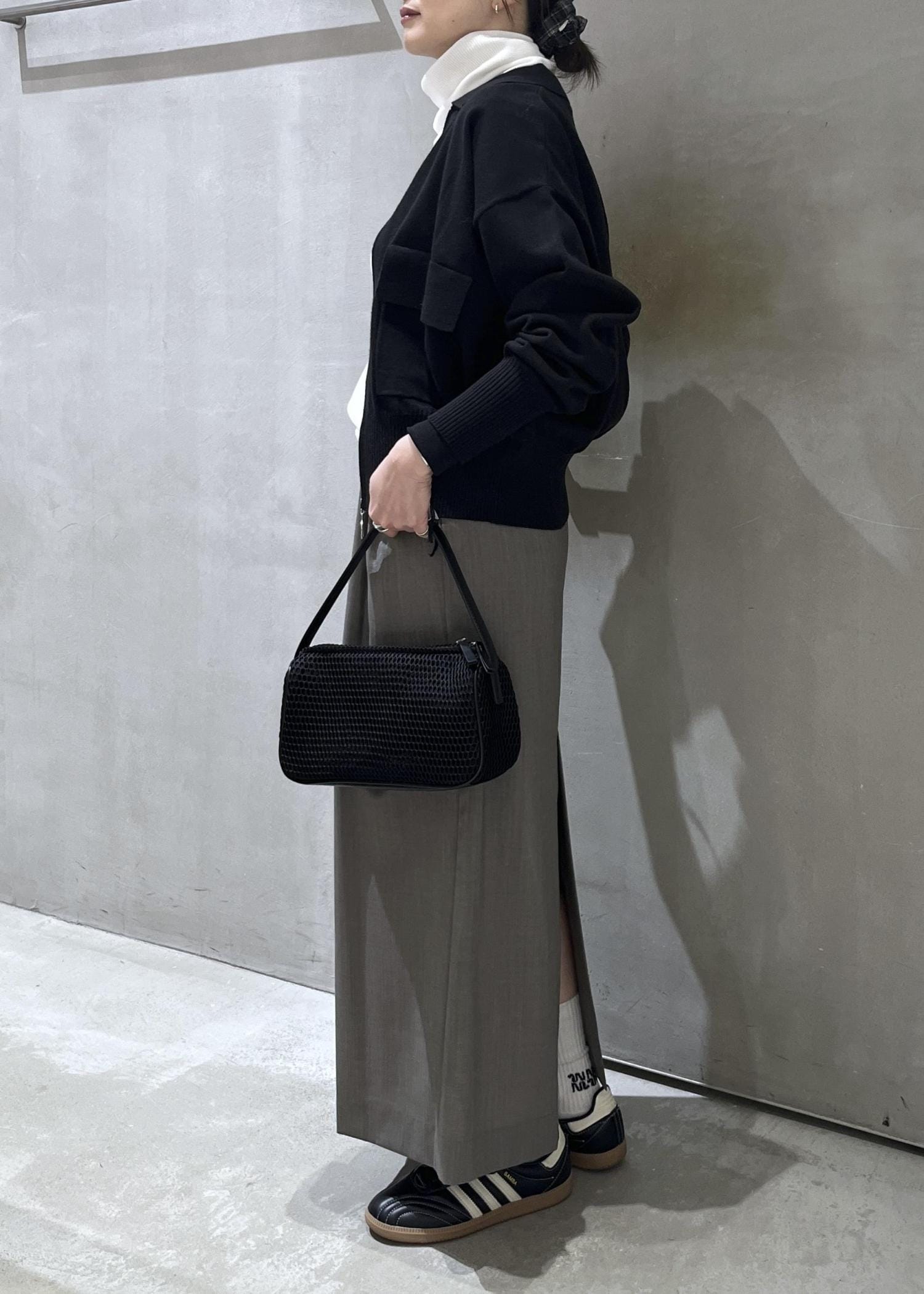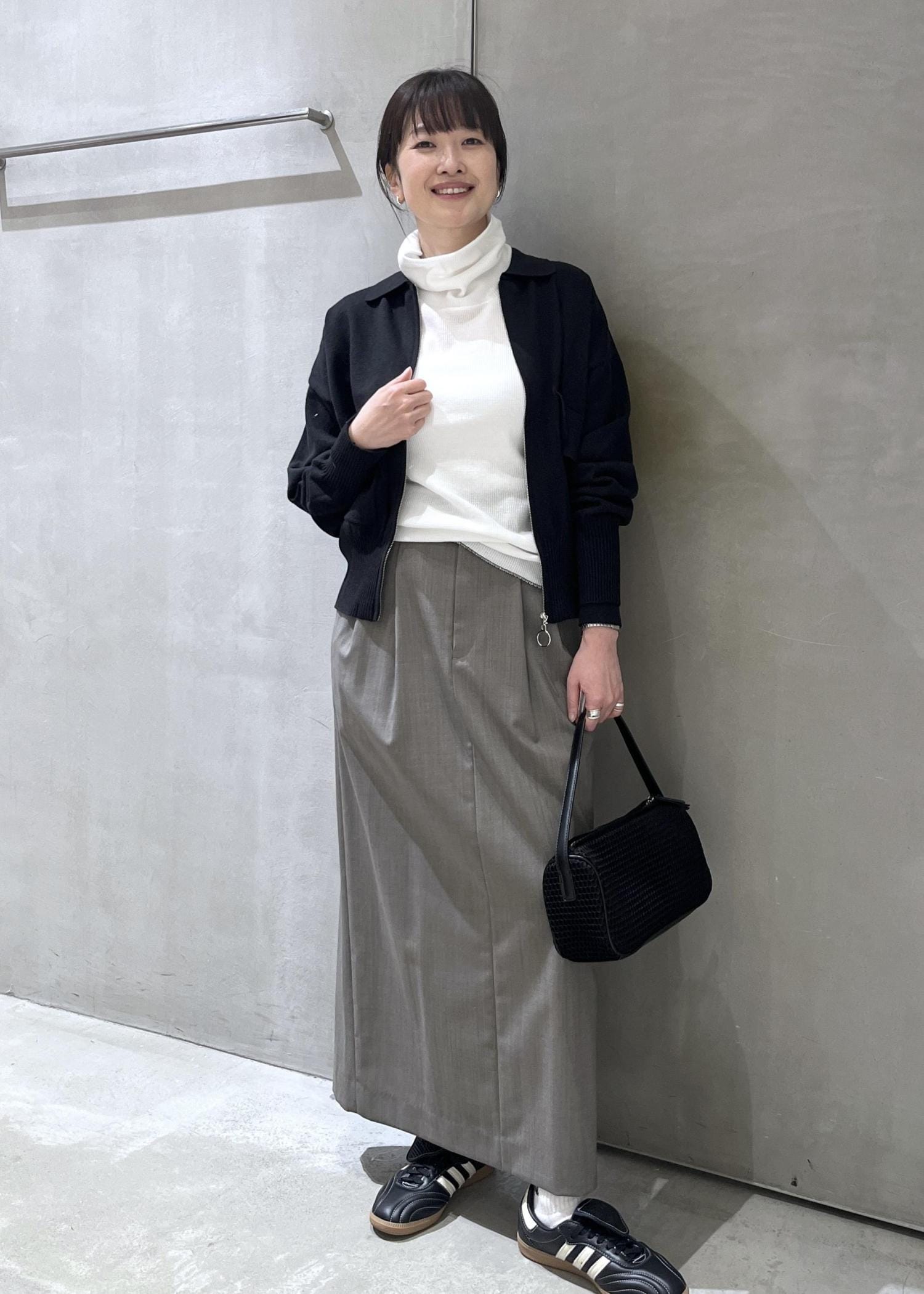 ワイドボトムやフレアスカートなどにも合わせやすいコンパクトなサイズ感。なのに身幅はゆったりしているので、ピタピタではないのが推しポイント。
