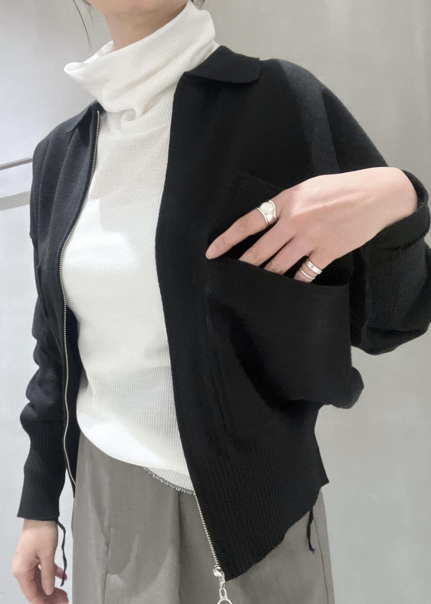 そんな要望にぴったりなZIPニットカーディガンのご紹介をさせていただきます。