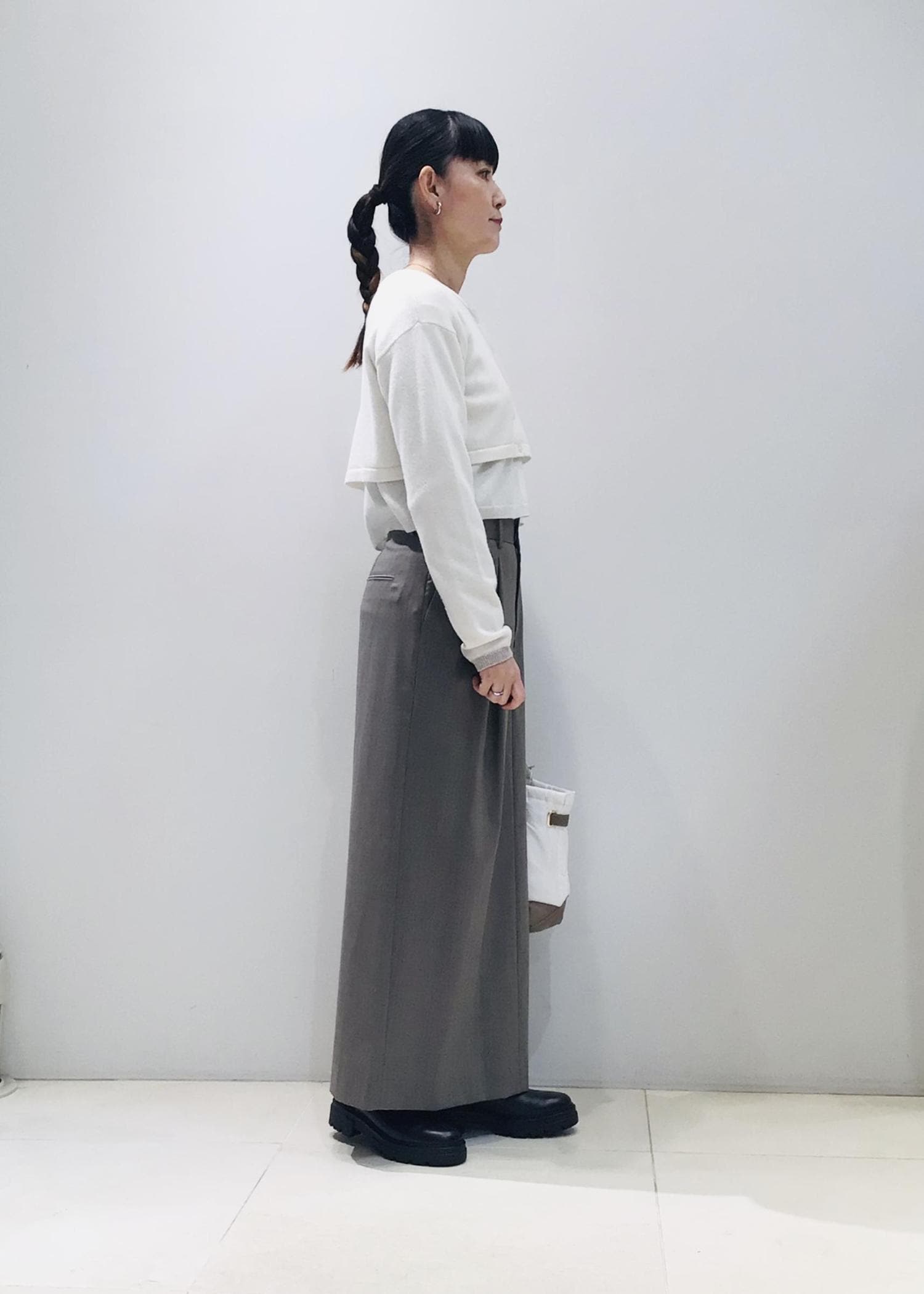素材感がとても上品なのでスラックス合わせでオフィスカジュアルはもちろん