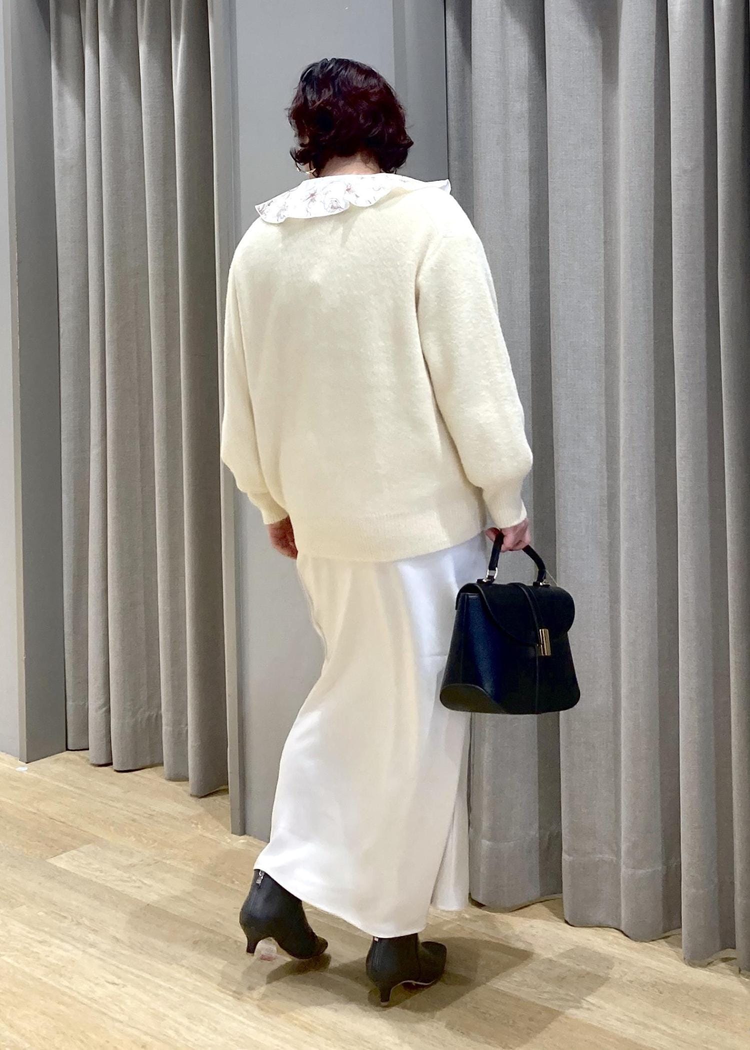 ゆるっとしたシルエットでも、縦ラインのスカートで全体はすっきり。