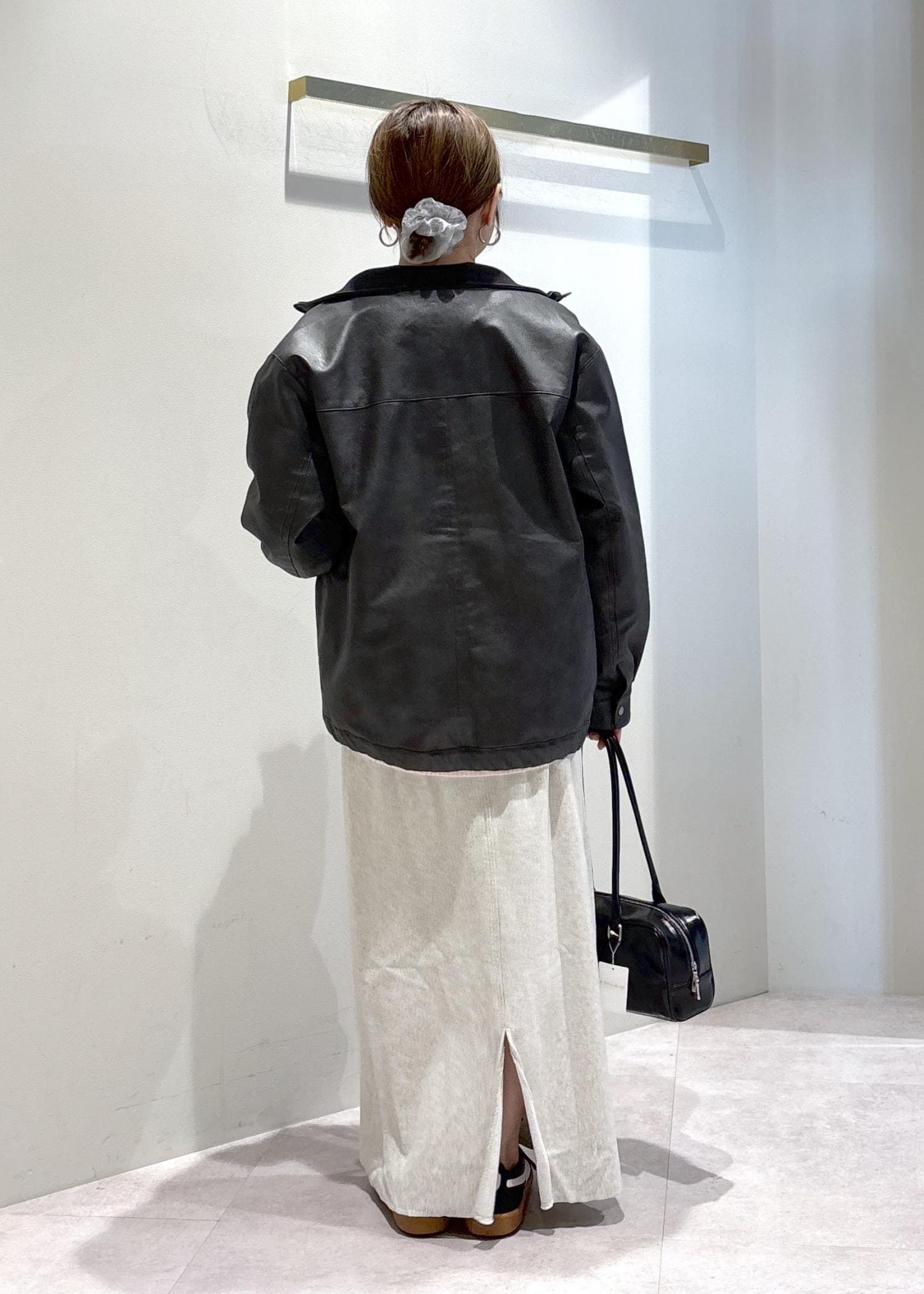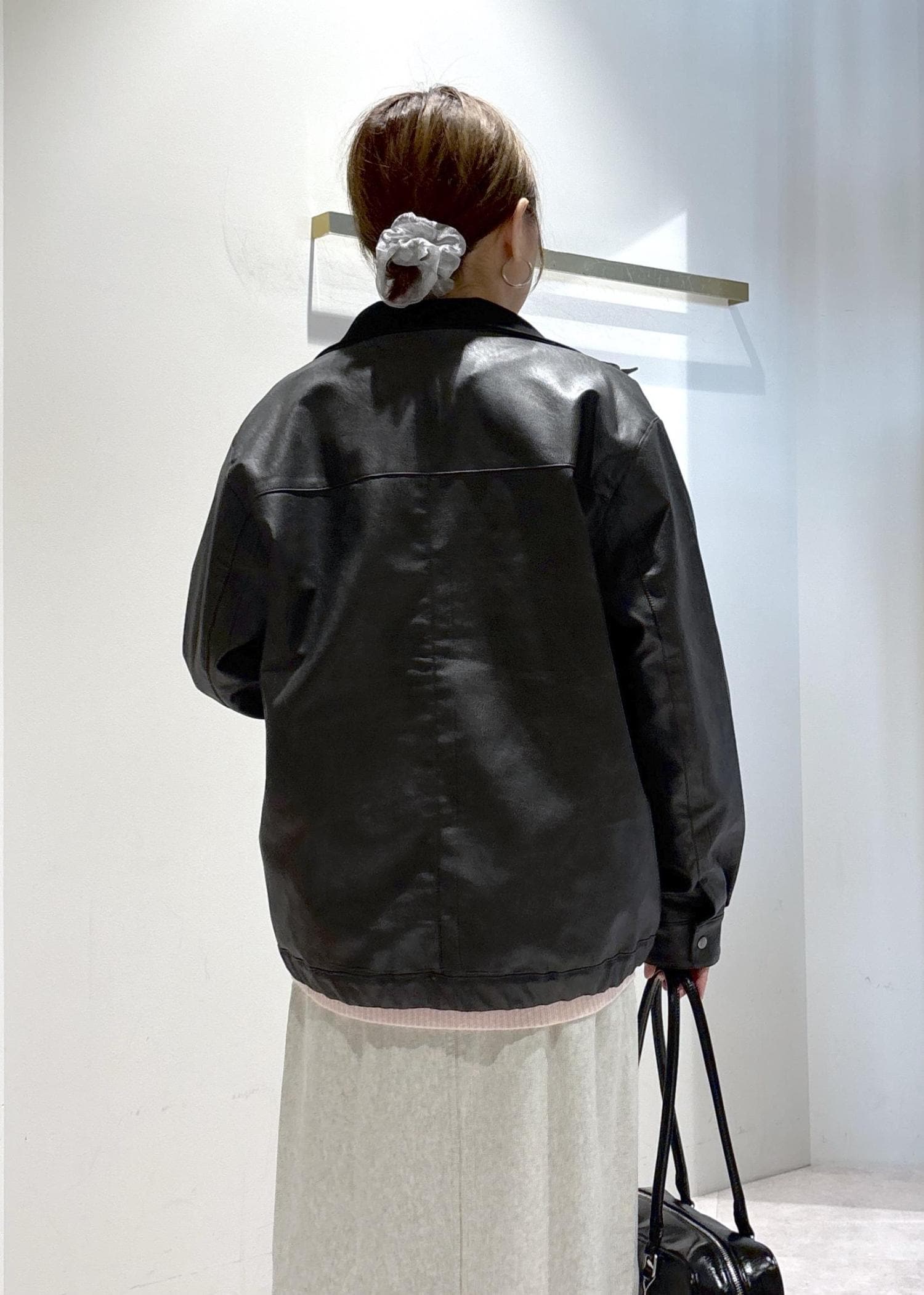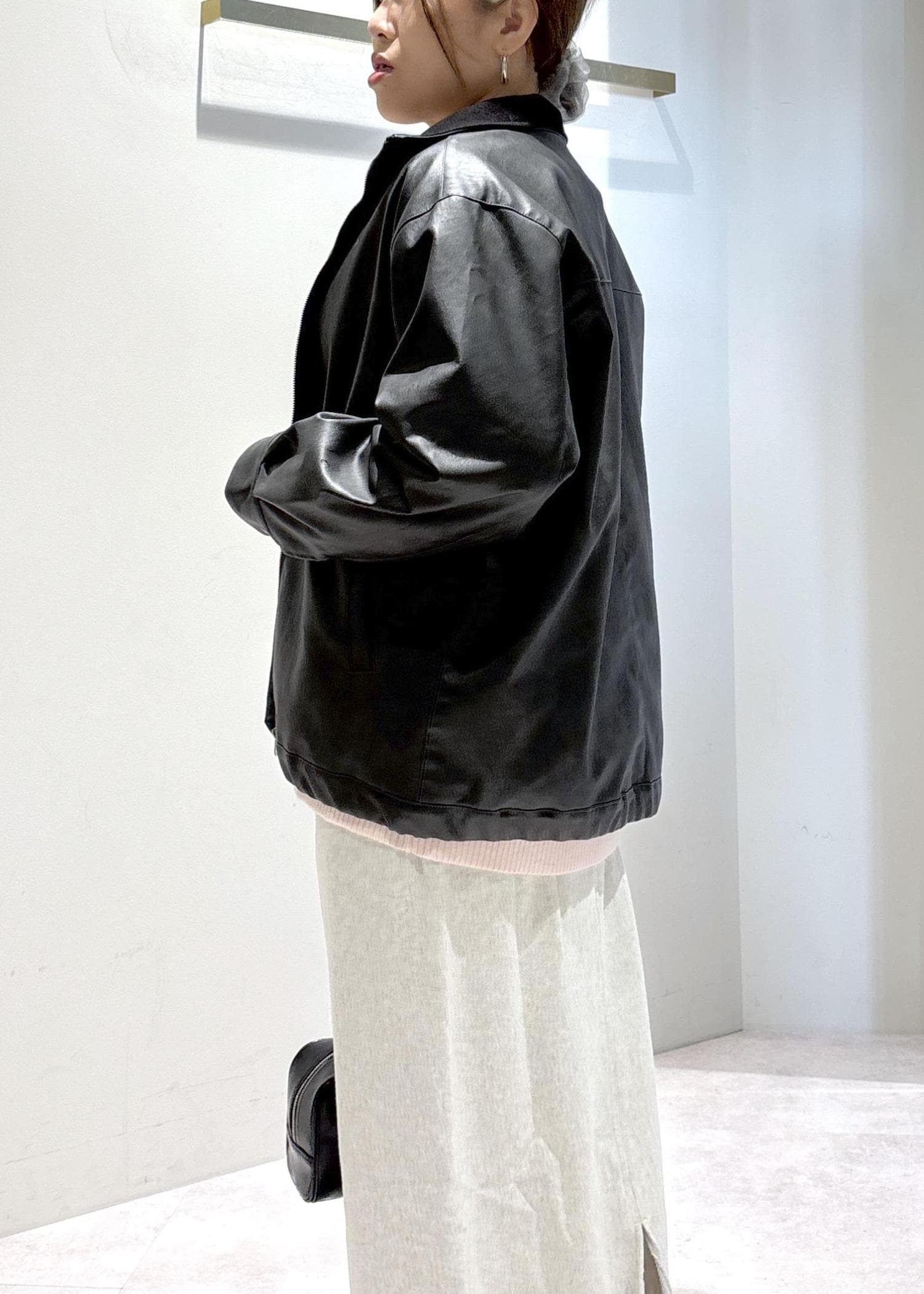 レザーライクブルゾンの大人女子コーデ