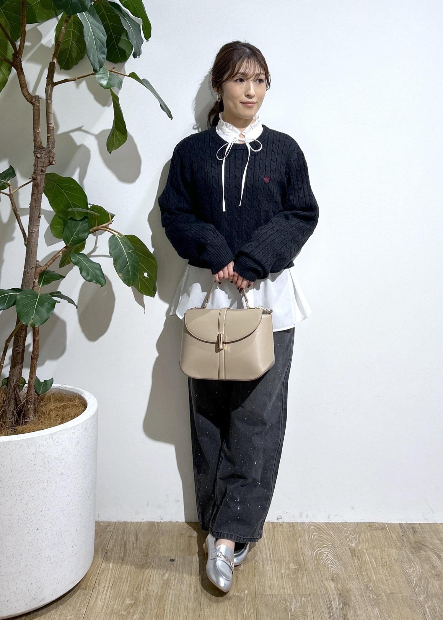 首元や袖のフリルが女性らしさをプラスしてくれ柔らかい印象に。