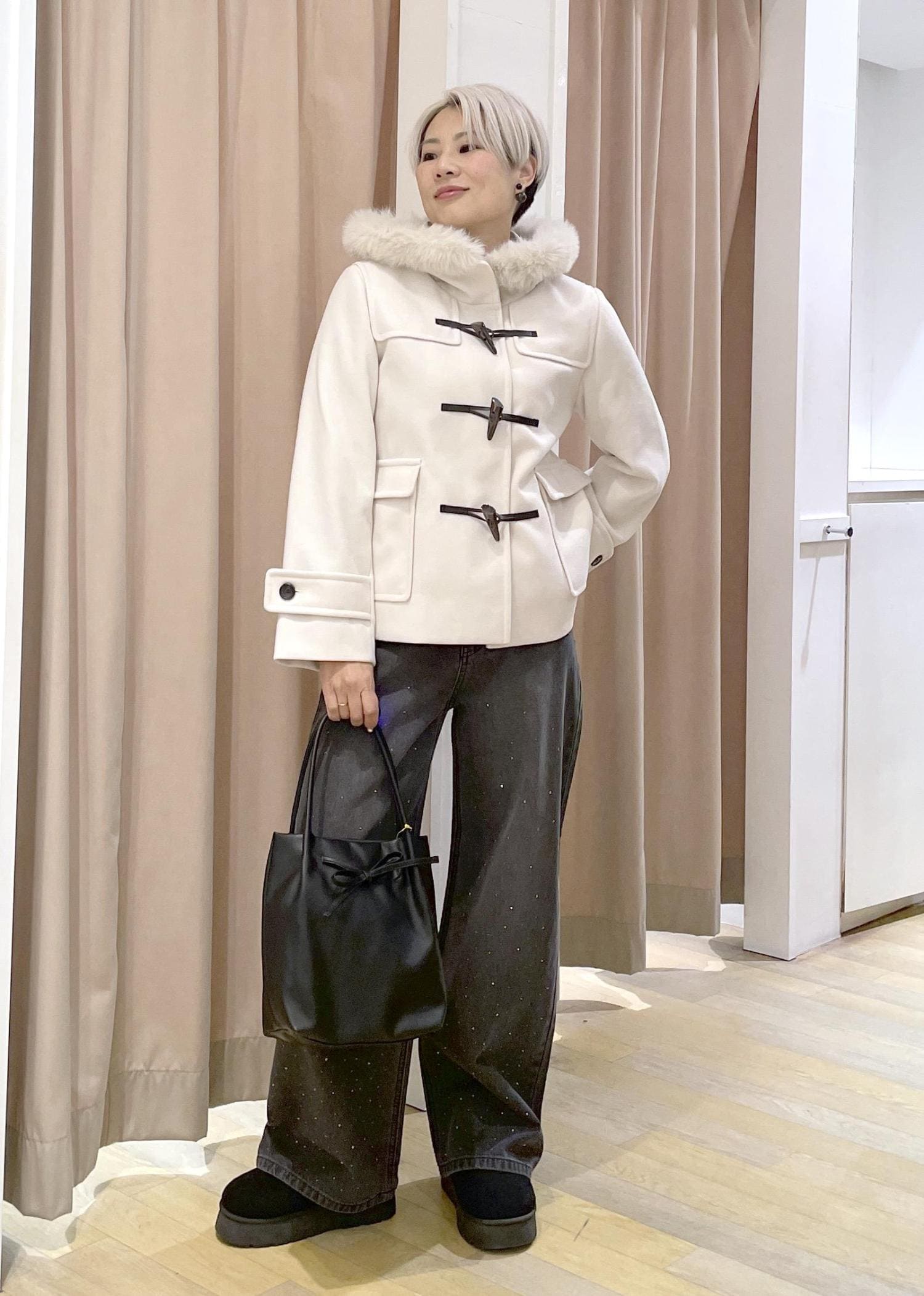 ROPÉ PICNICジャージーメルトンシリーズ ファー付きショートダッフルコート/リンクコーデキナリ / L¥8,580レビューLサイズ着用