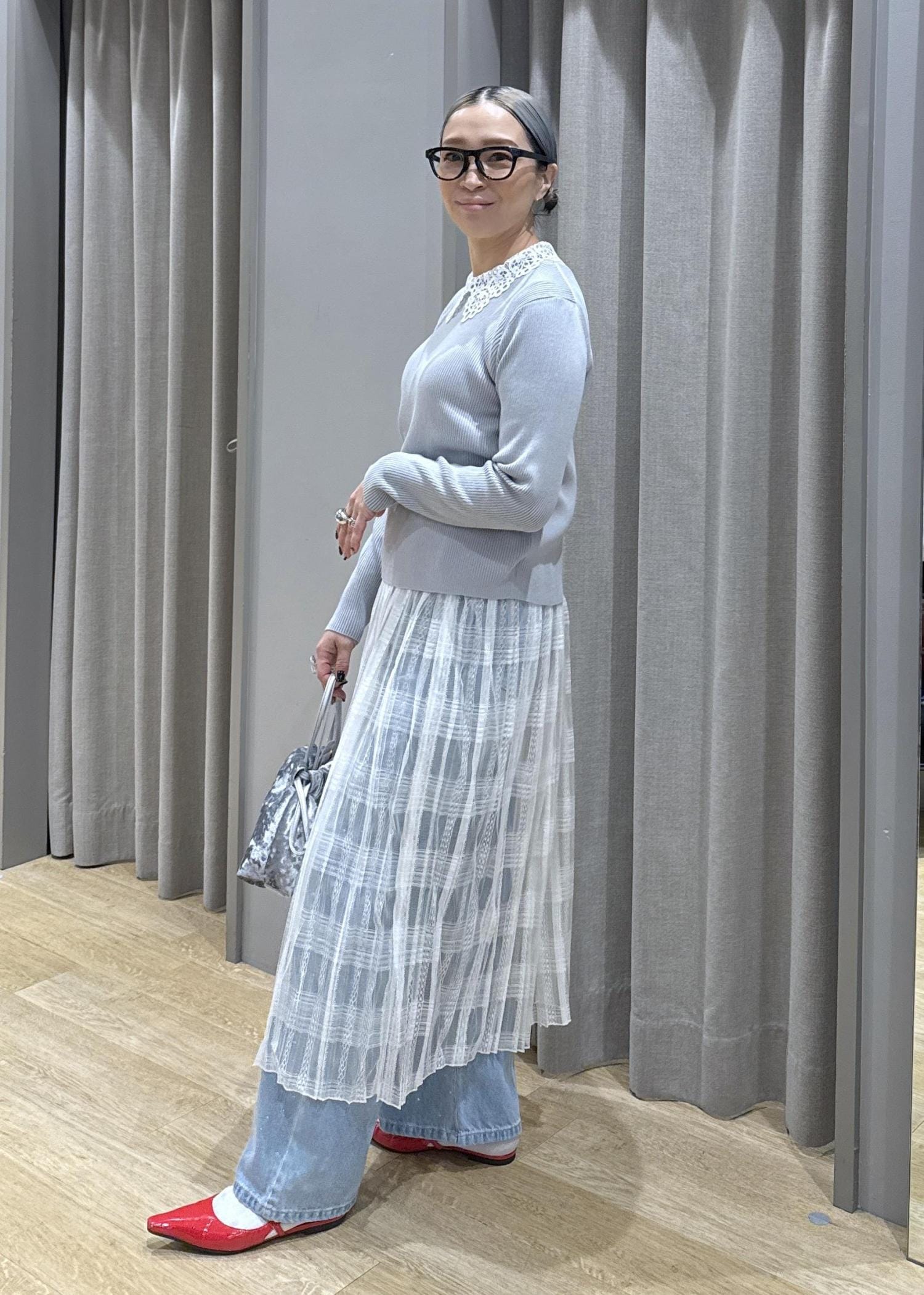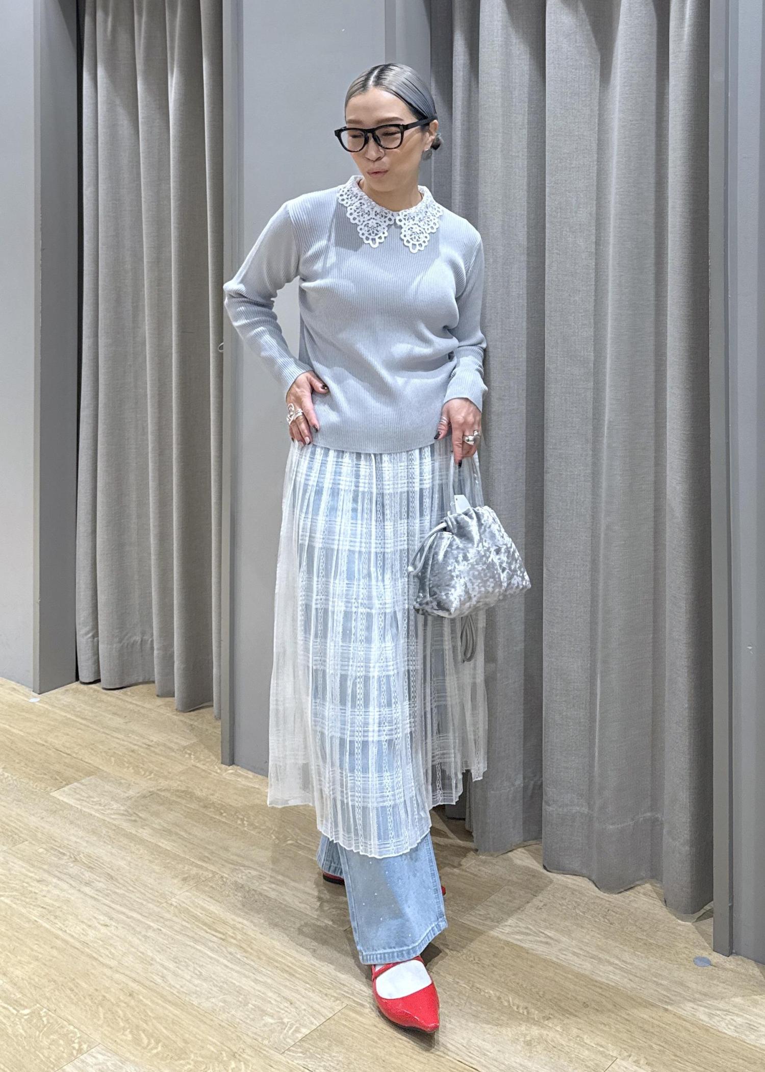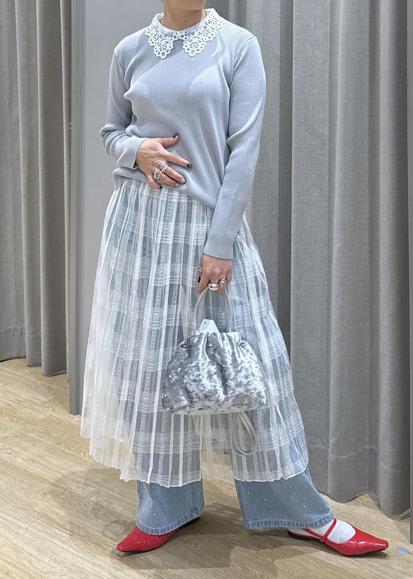 春らしいレースアイテムを使ったスタイリング。