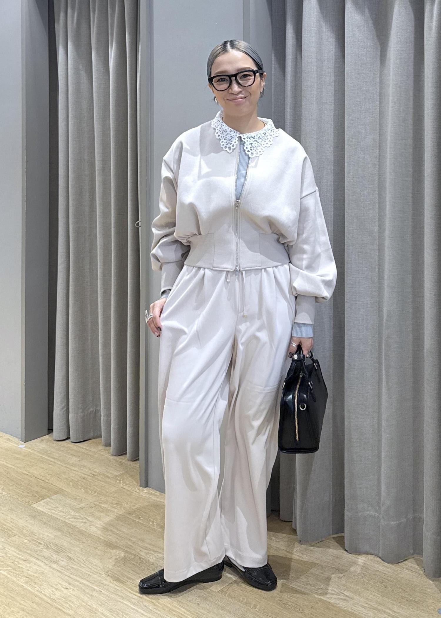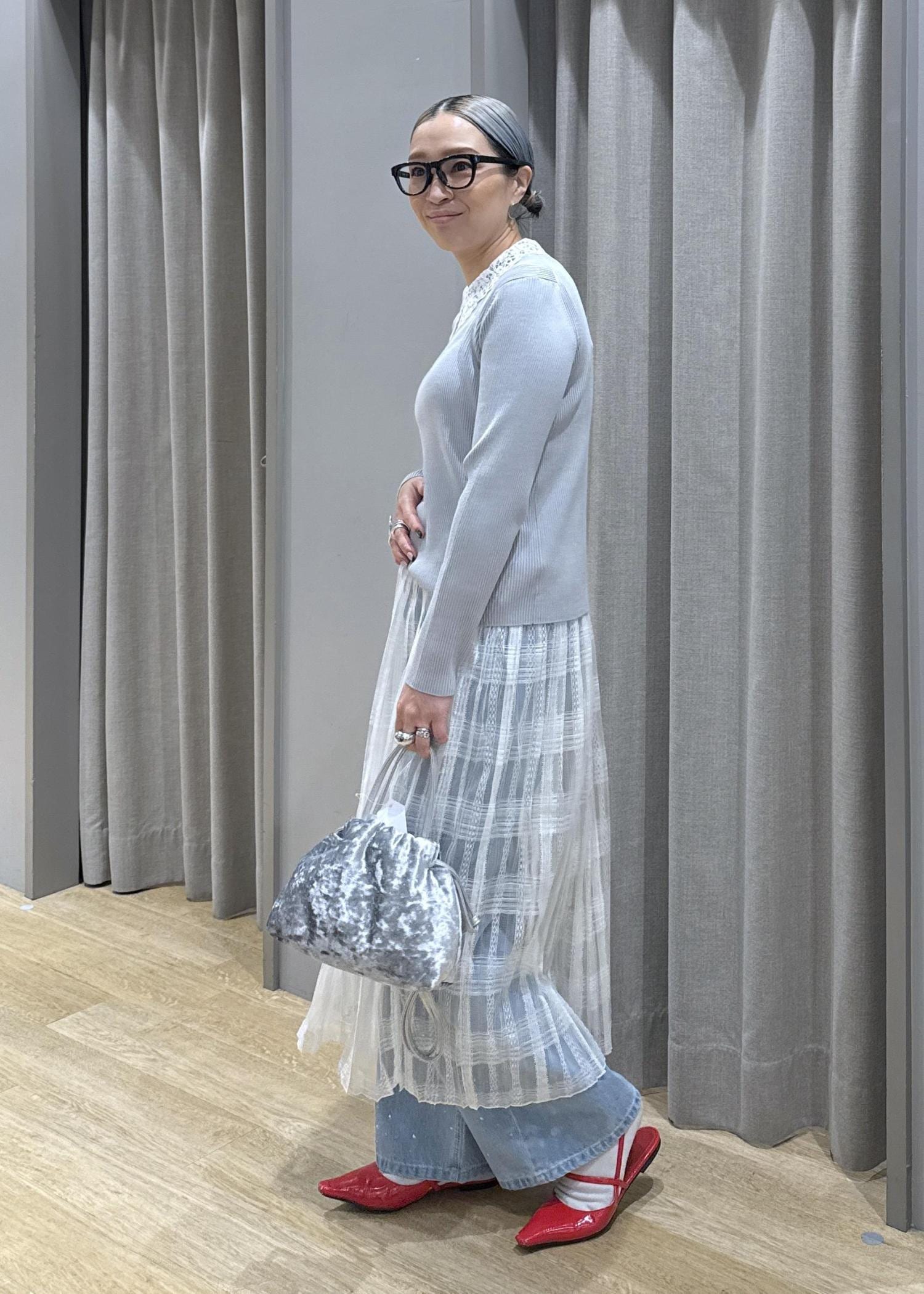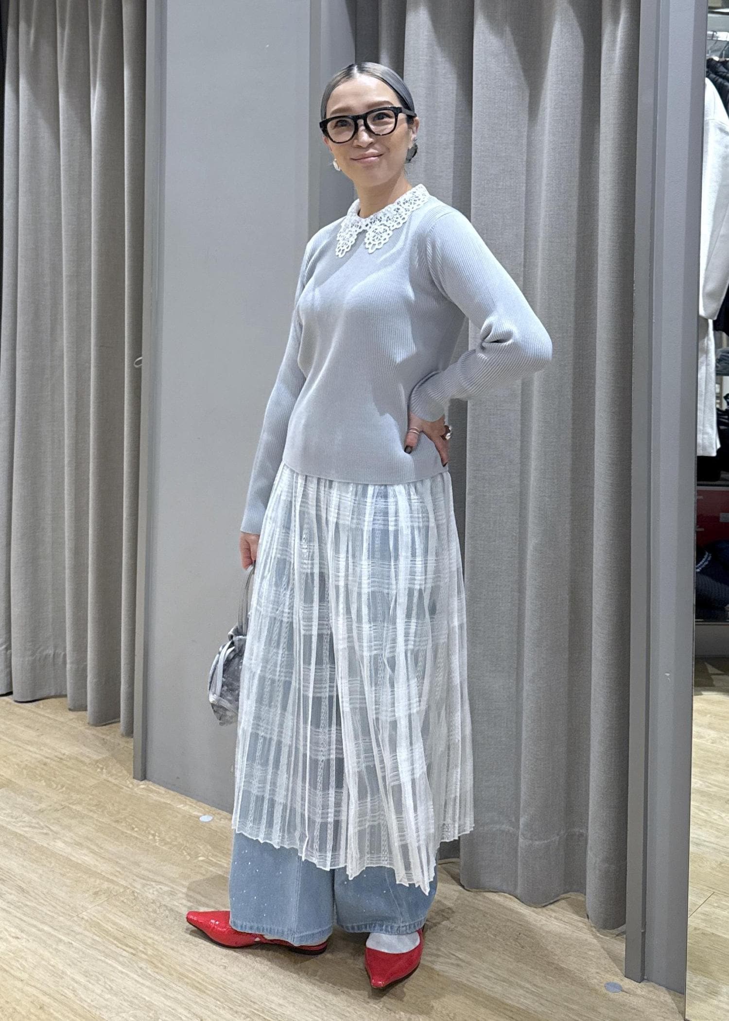 春らしいレースアイテムを使ったスタイリング。