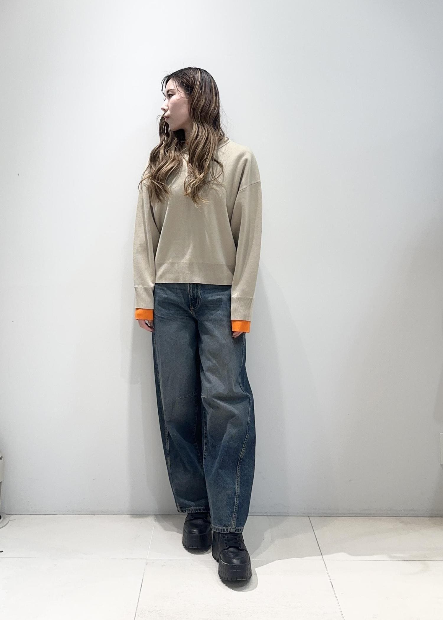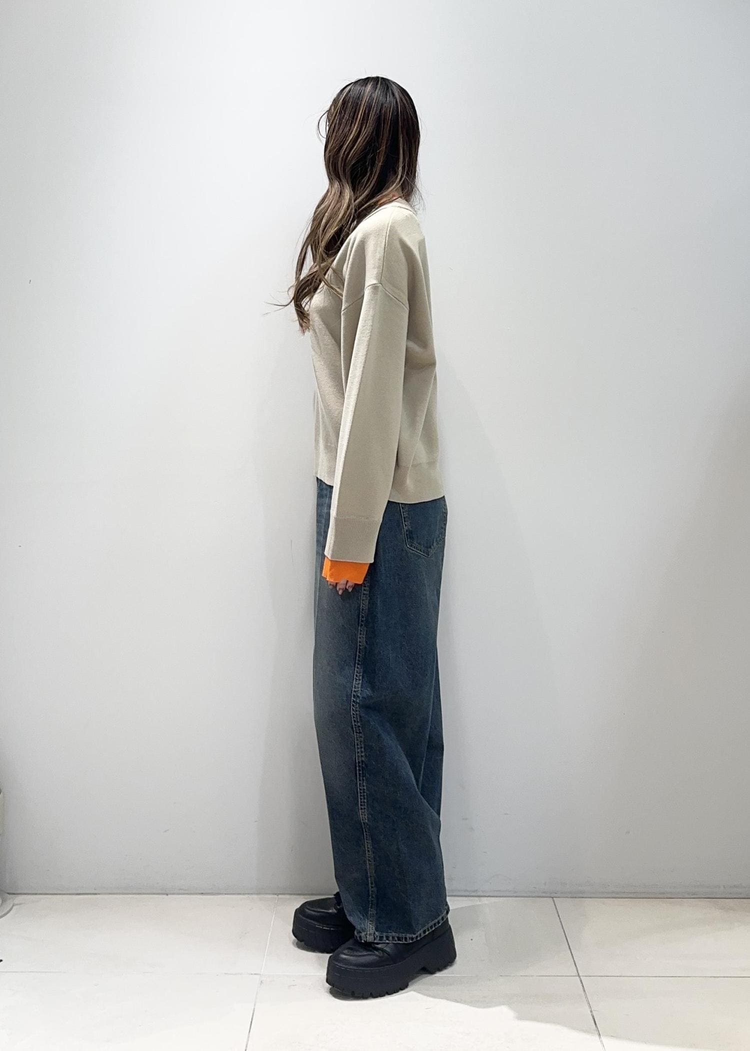 程よくゆとりのあるトップスとワイドデニムのバランスで、