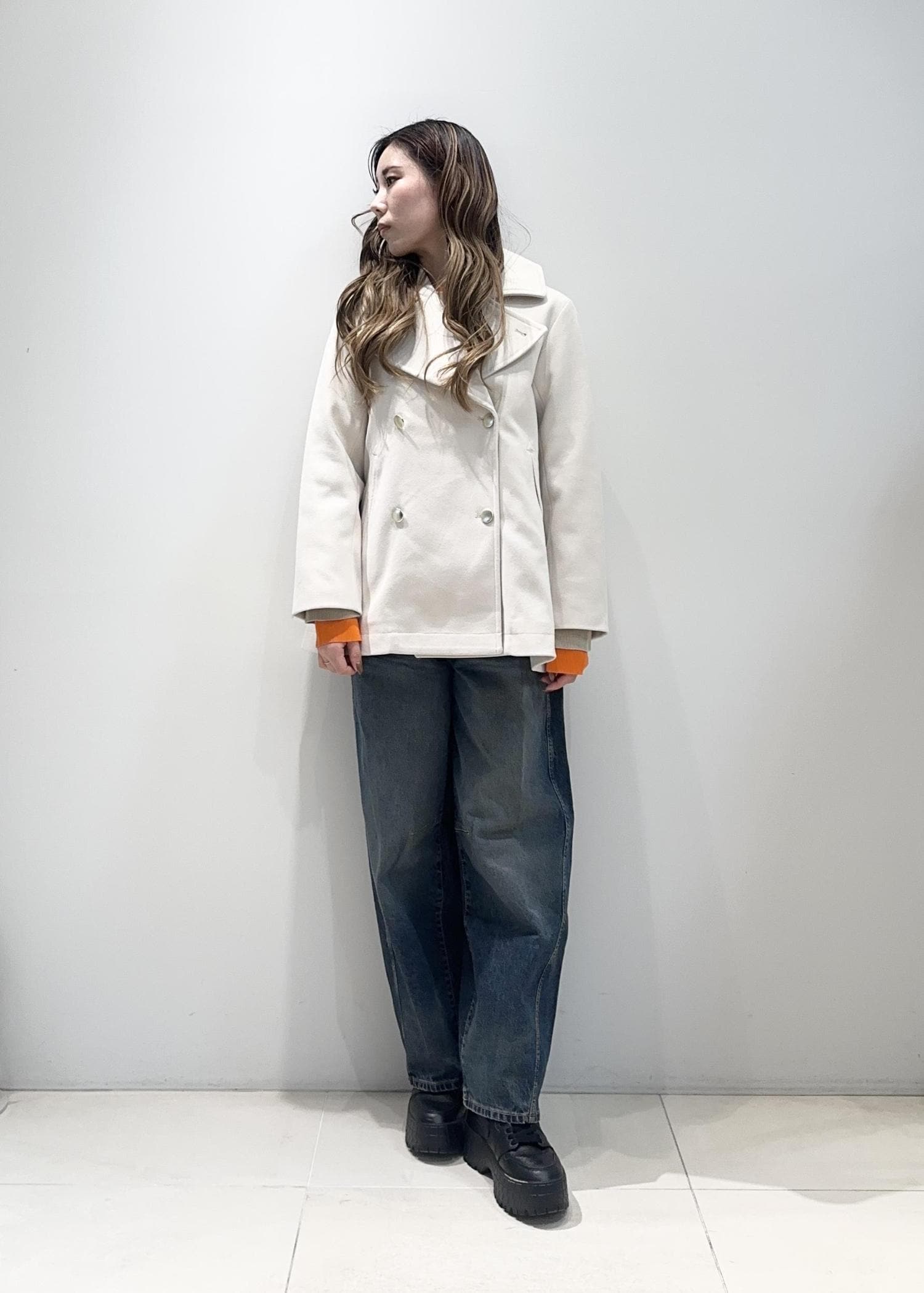 テーラードミドル丈コート