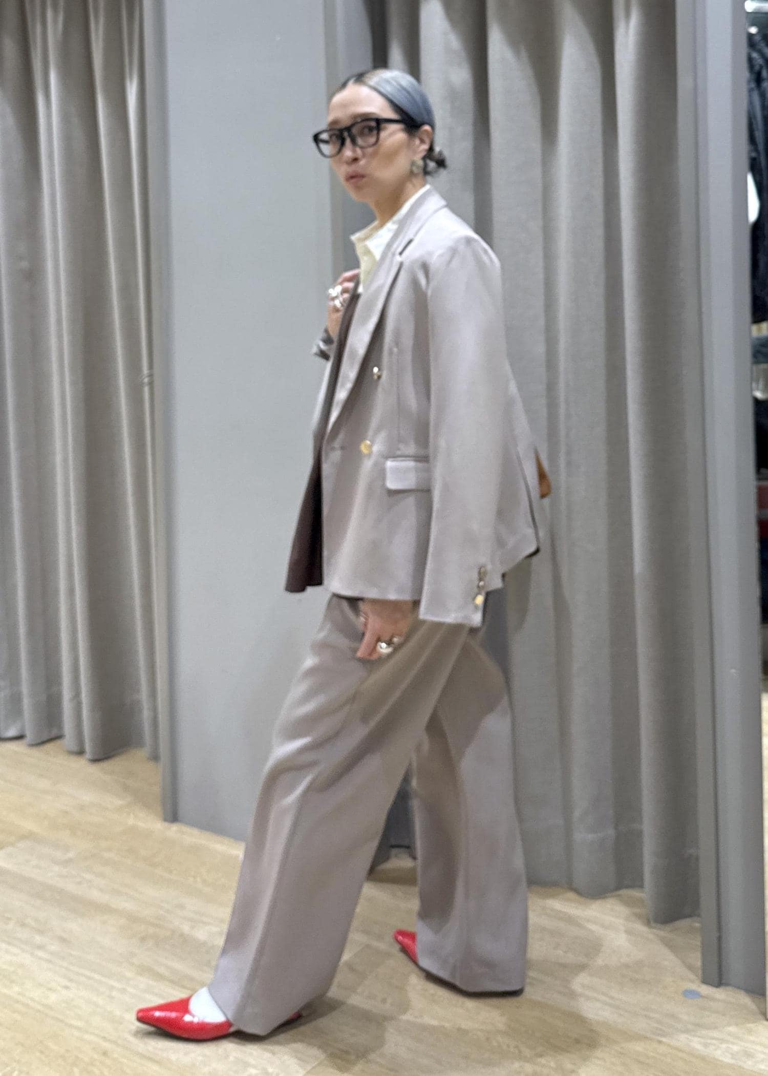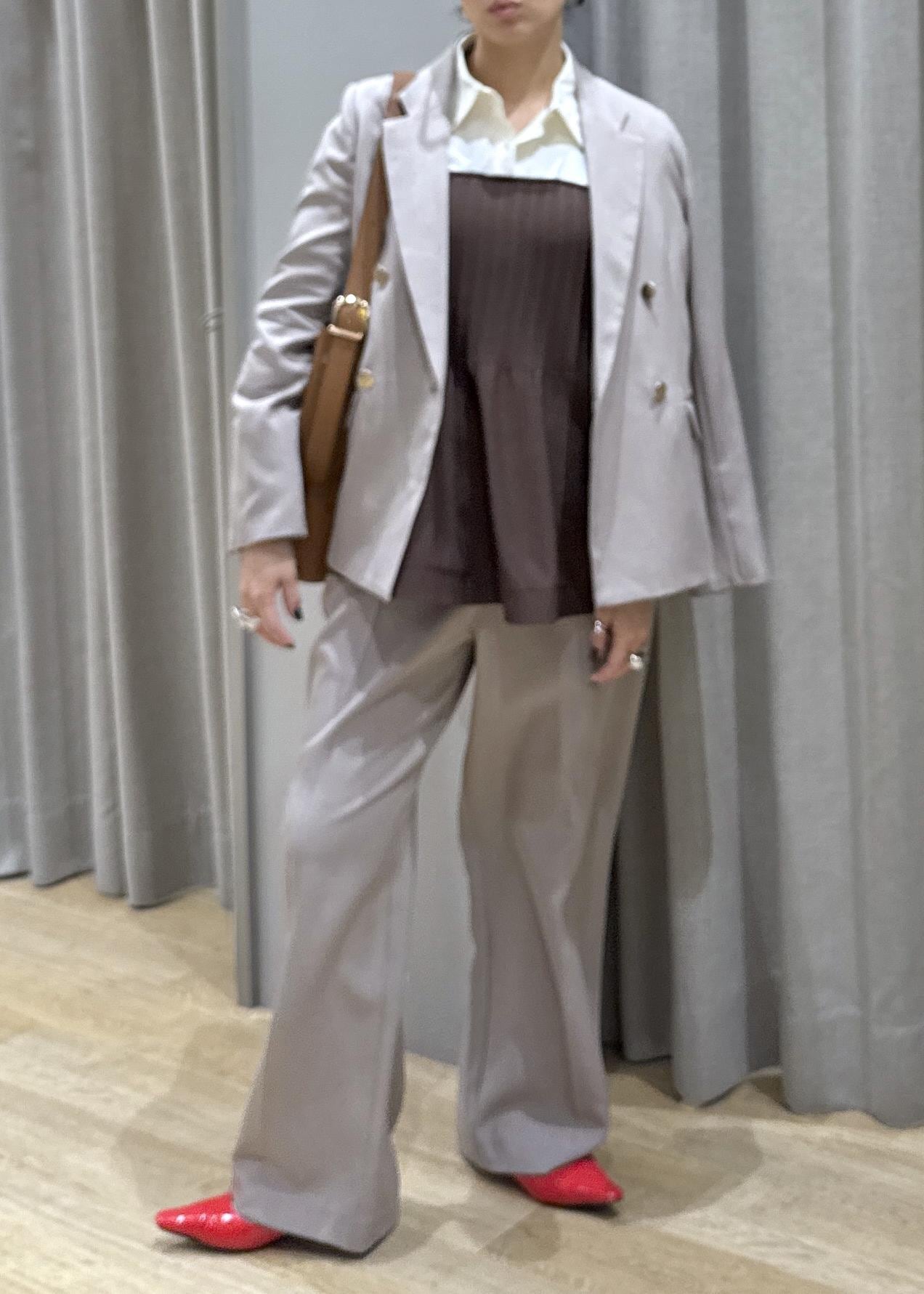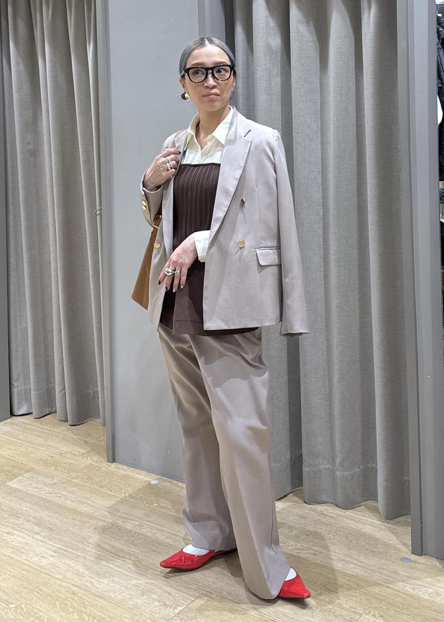 セットアップのベージュで、色な統一感を出すことで