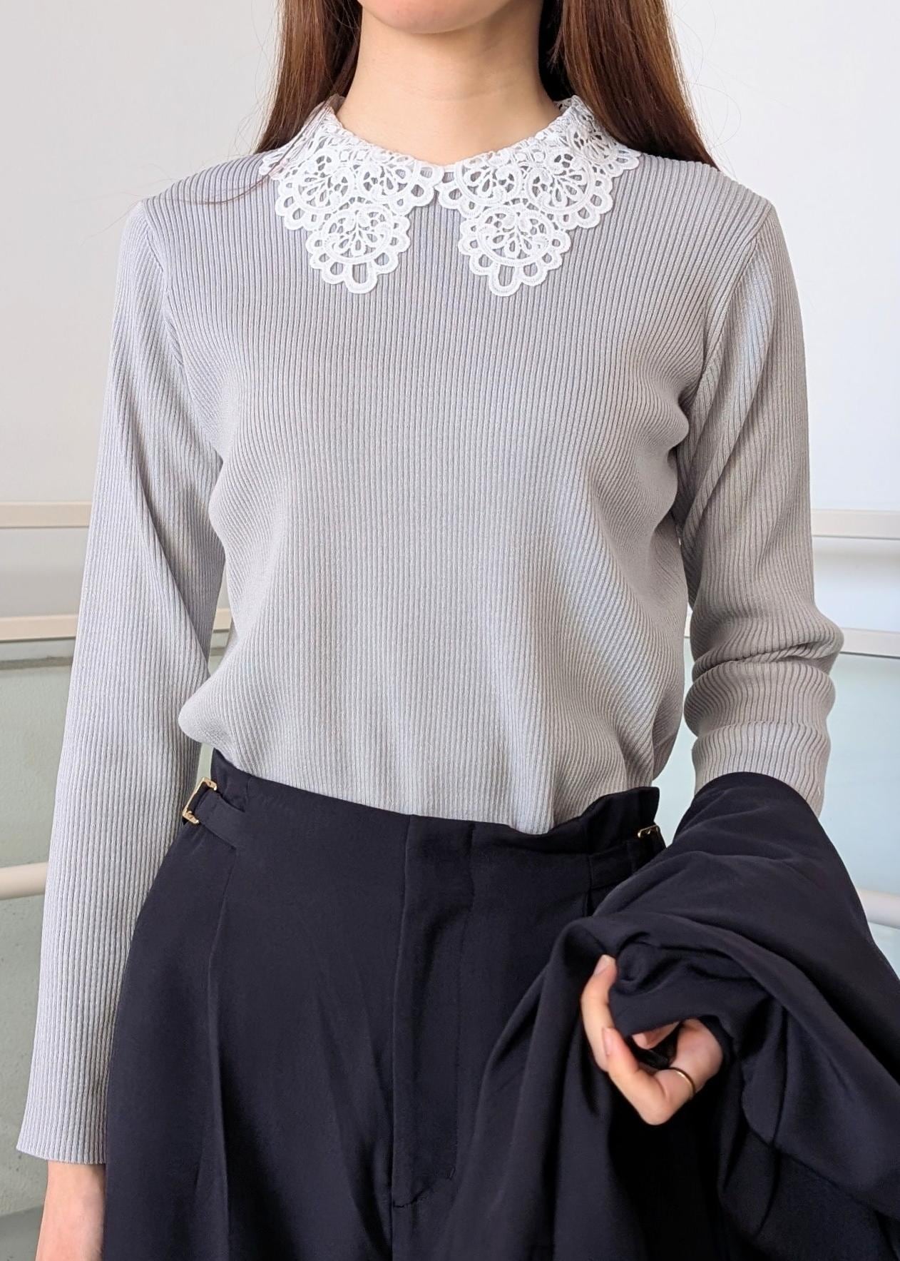 ROPÉ PICNICレースカラーニットライトグレー / M¥5,489レビュー程よくコンパクトなのでジャケットのインナーに使いやすいです。首元のレースが華やかなのでネックレスいらずです。