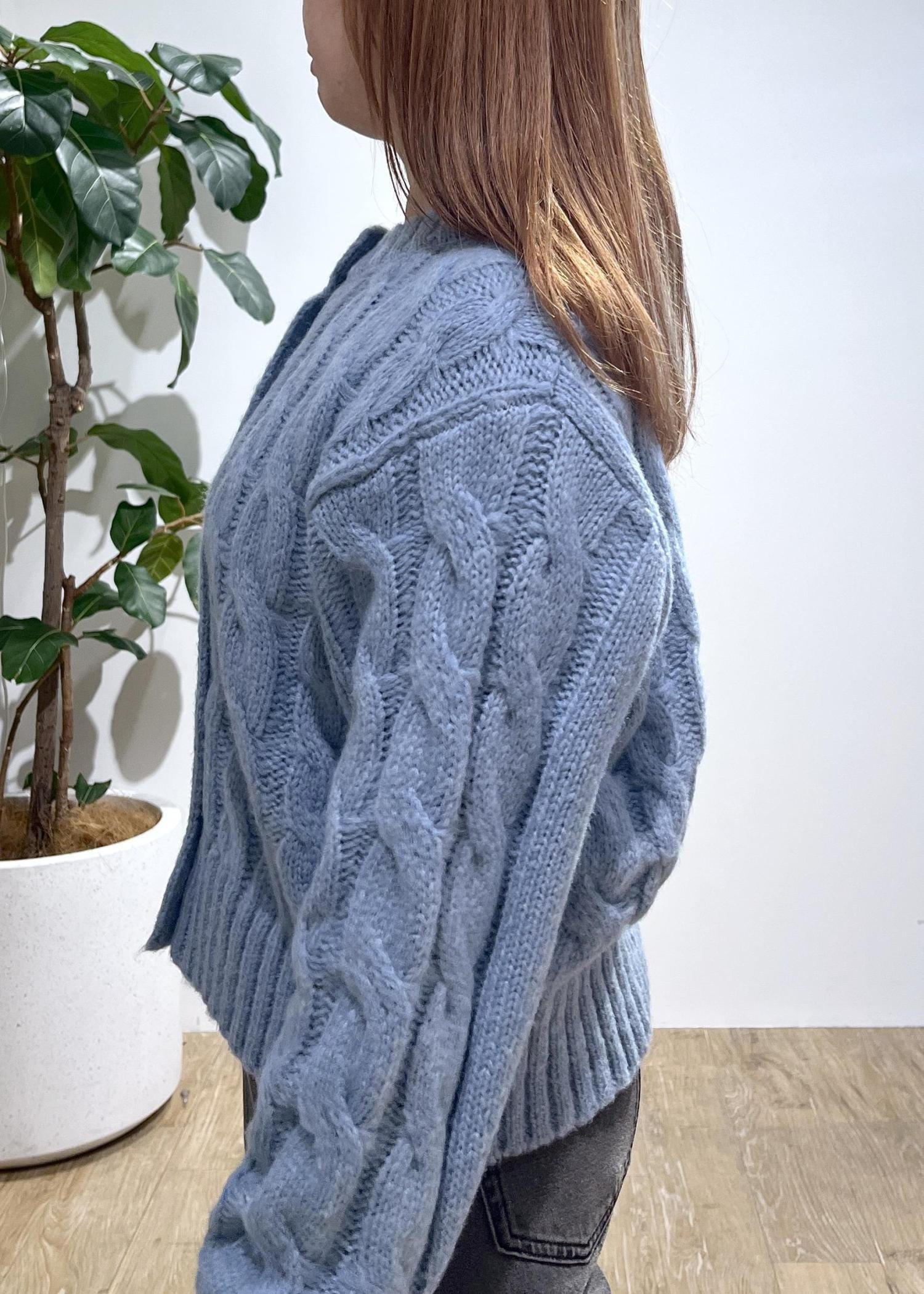 ROPÉ PICNICケーブルニットカーディガンブルー / F¥2,745レビューふわふわした肌触りのケーブルニット。ゆったりとしていて身体のラインを拾いにくいです。インナーにシャツをレイアードするスタイルもおすすめです。