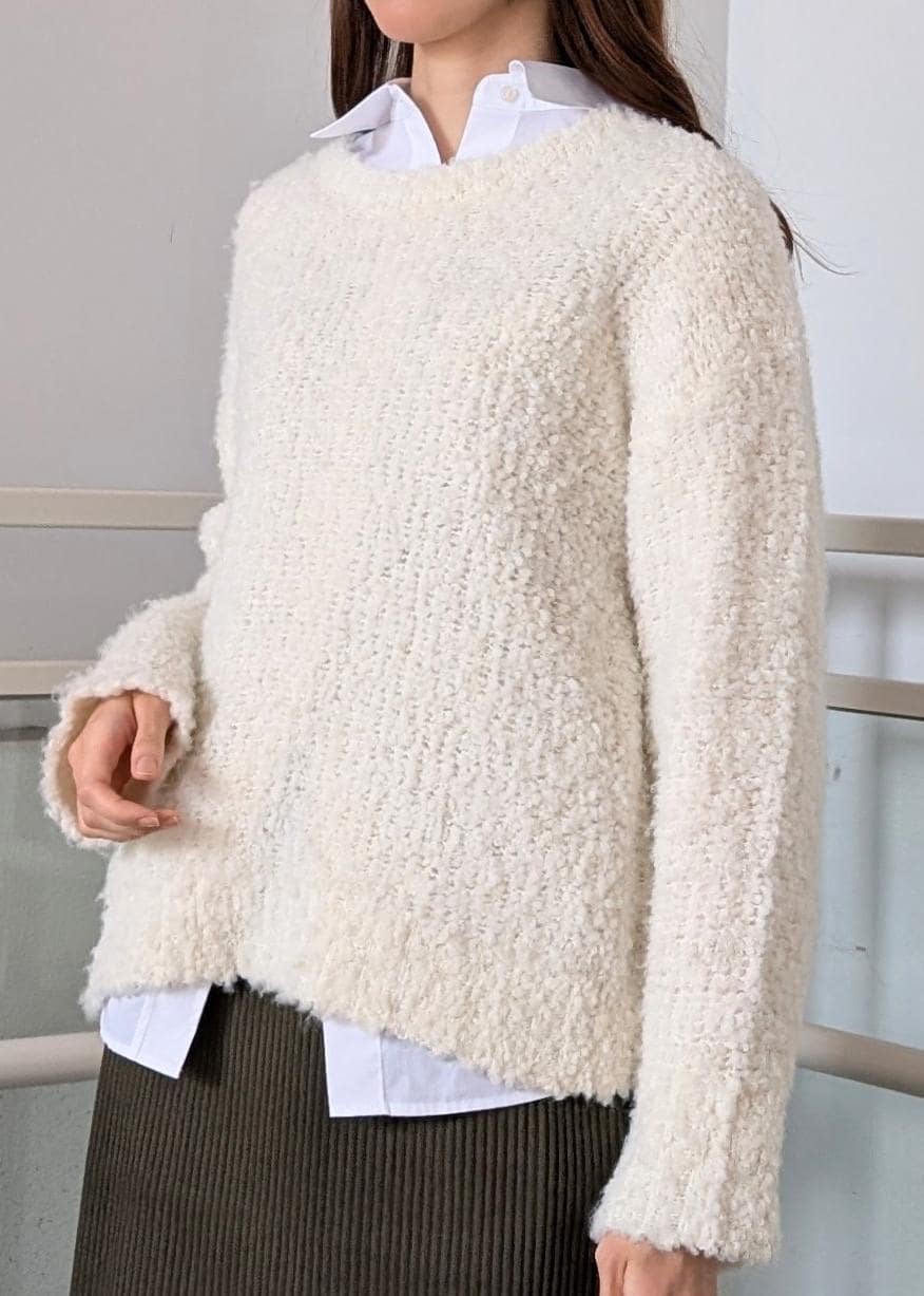 ROPÉ PICNICブークレカラーニットホワイト / F¥2,745レビューゆったりとしていて伸縮性のあるニットです。首周りの開きが気になる方はシャツやロンTなどとのレイヤードをおすすめします。