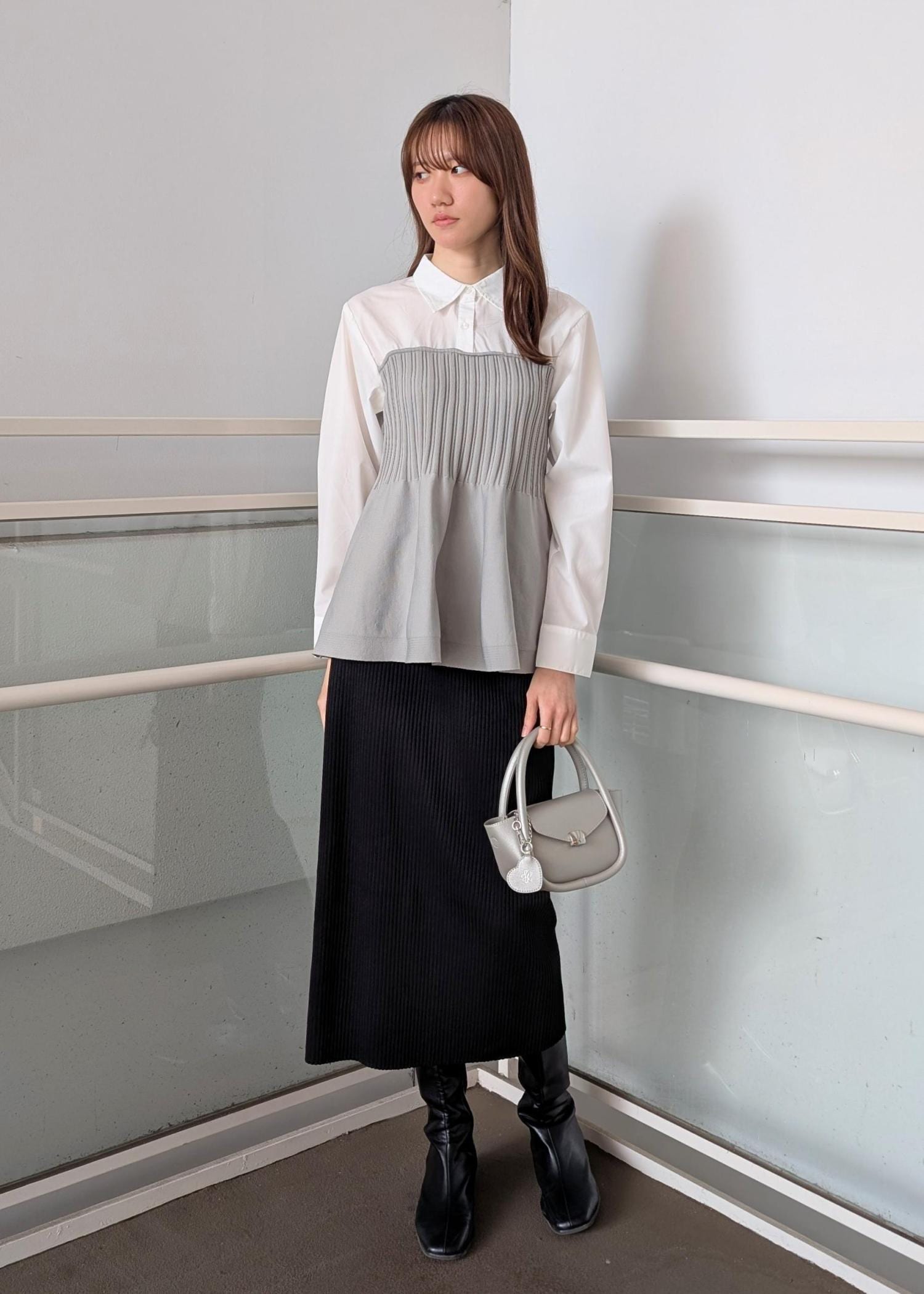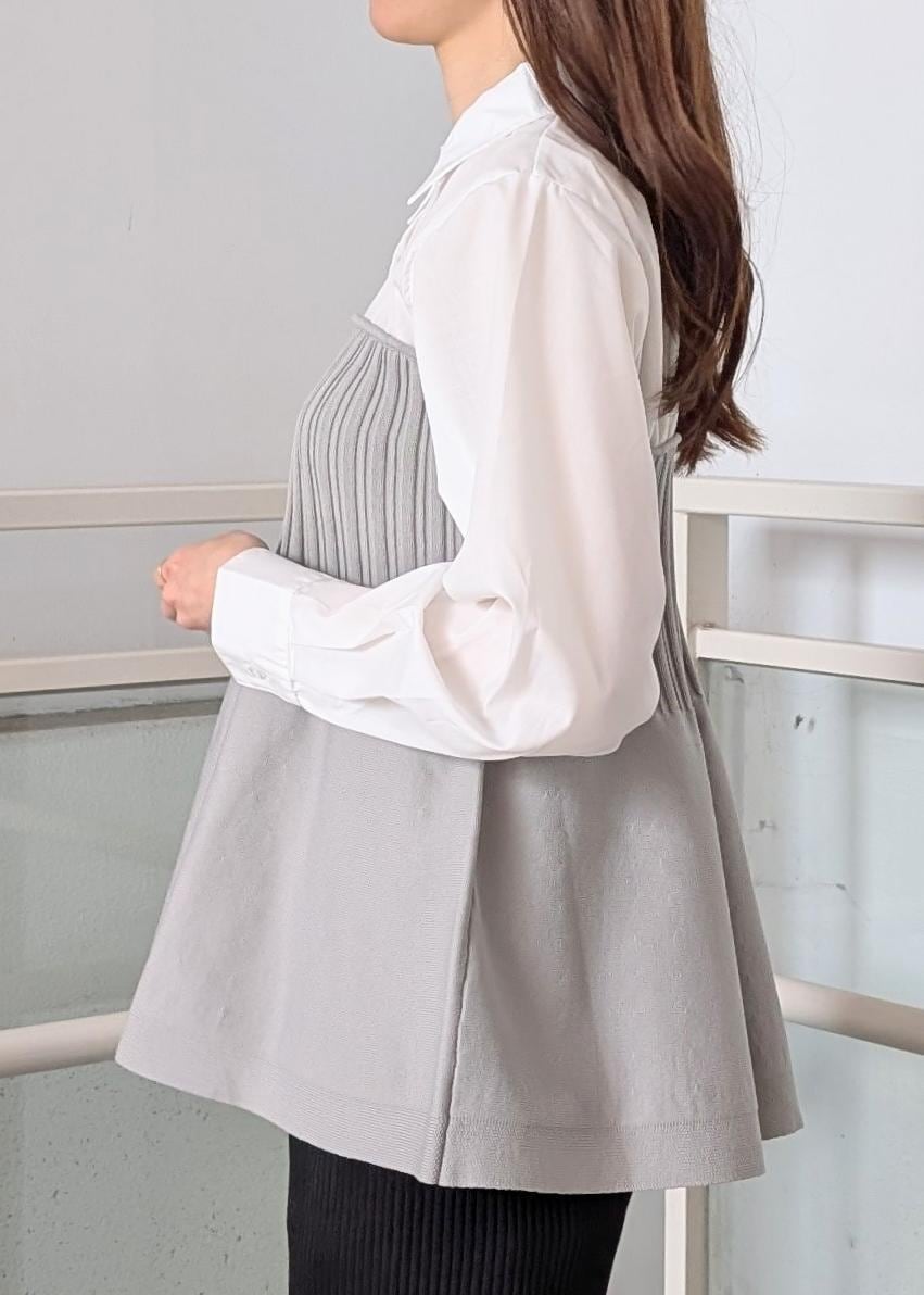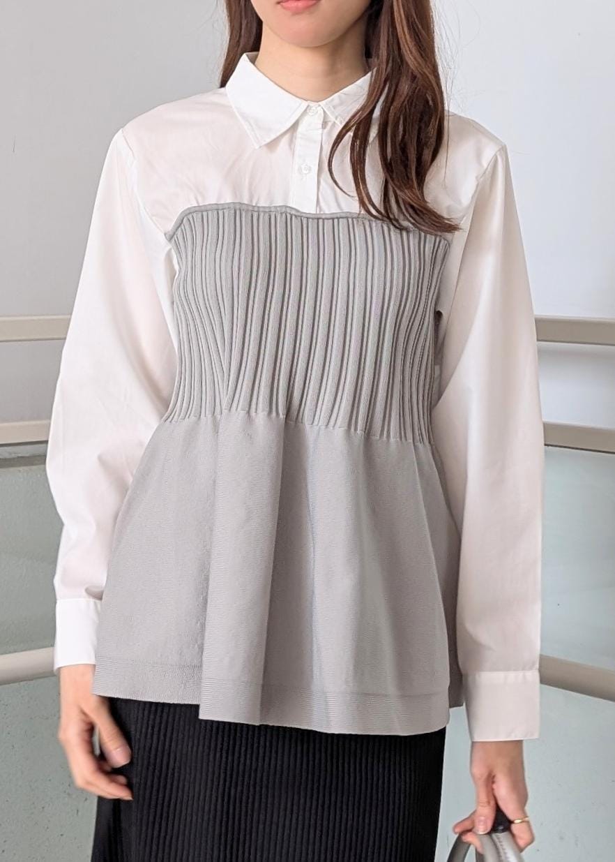 ROPÉ PICNICシャツドッキングペプラムニットライトグレー / F¥5,995レビューペプラム部分が長めでふんわりと広がっているので体型カバーできます。