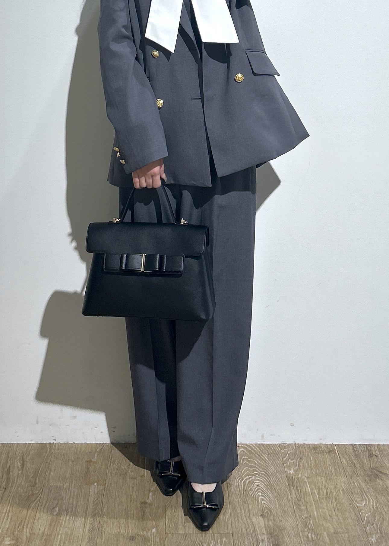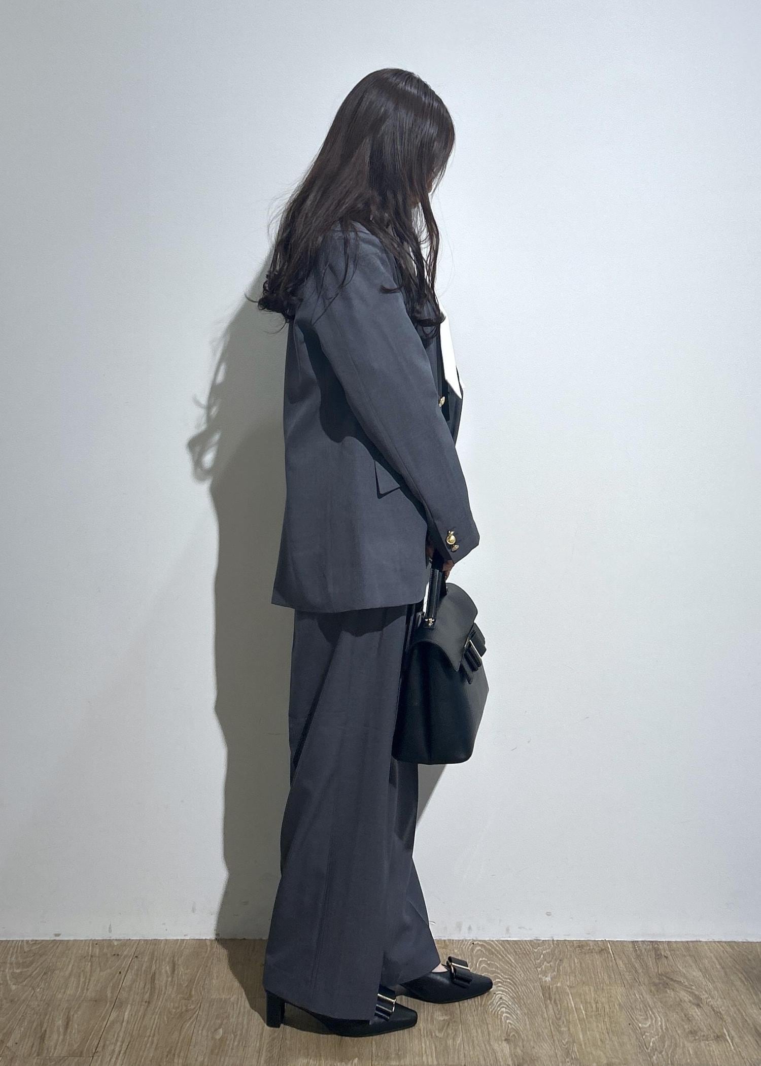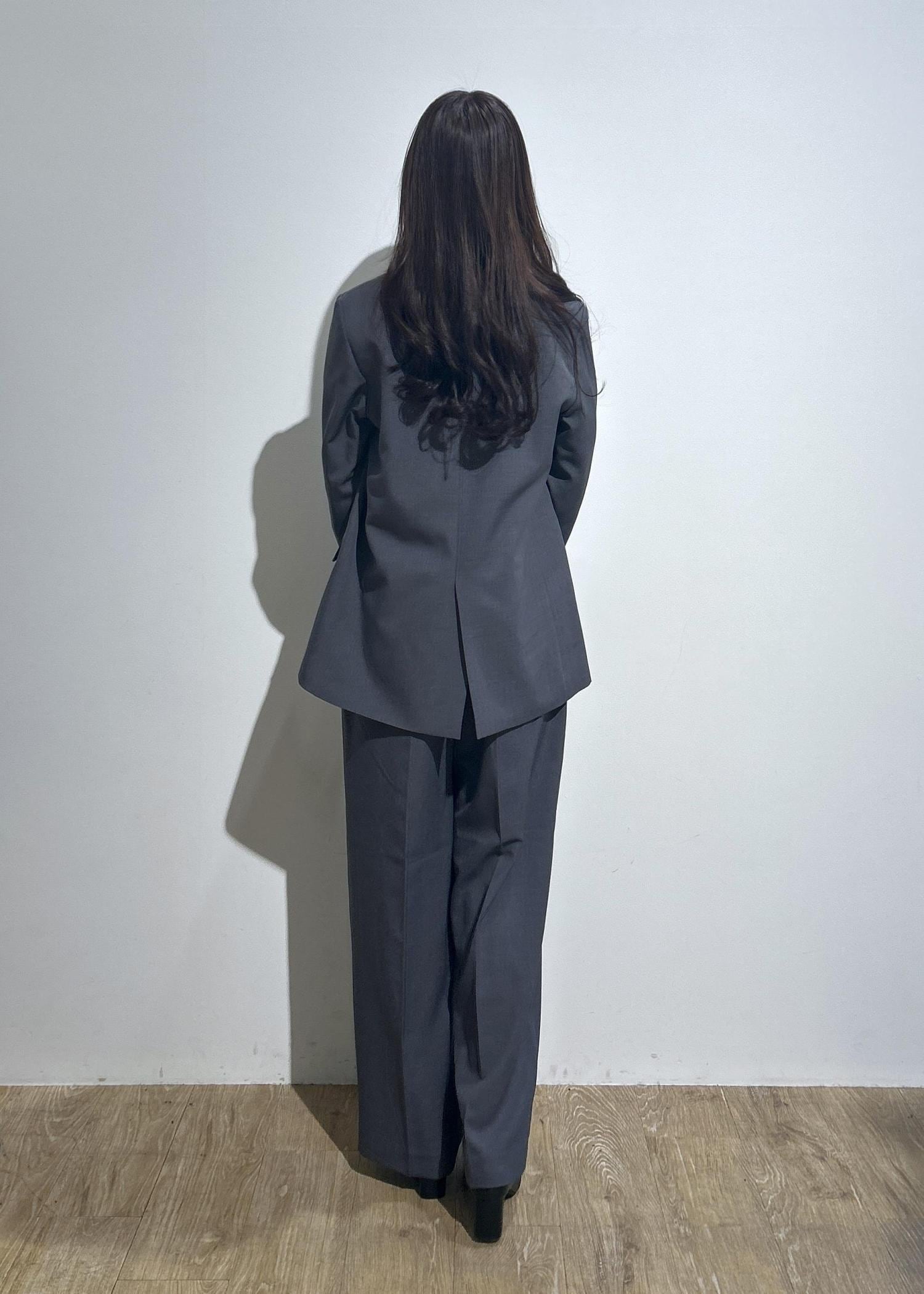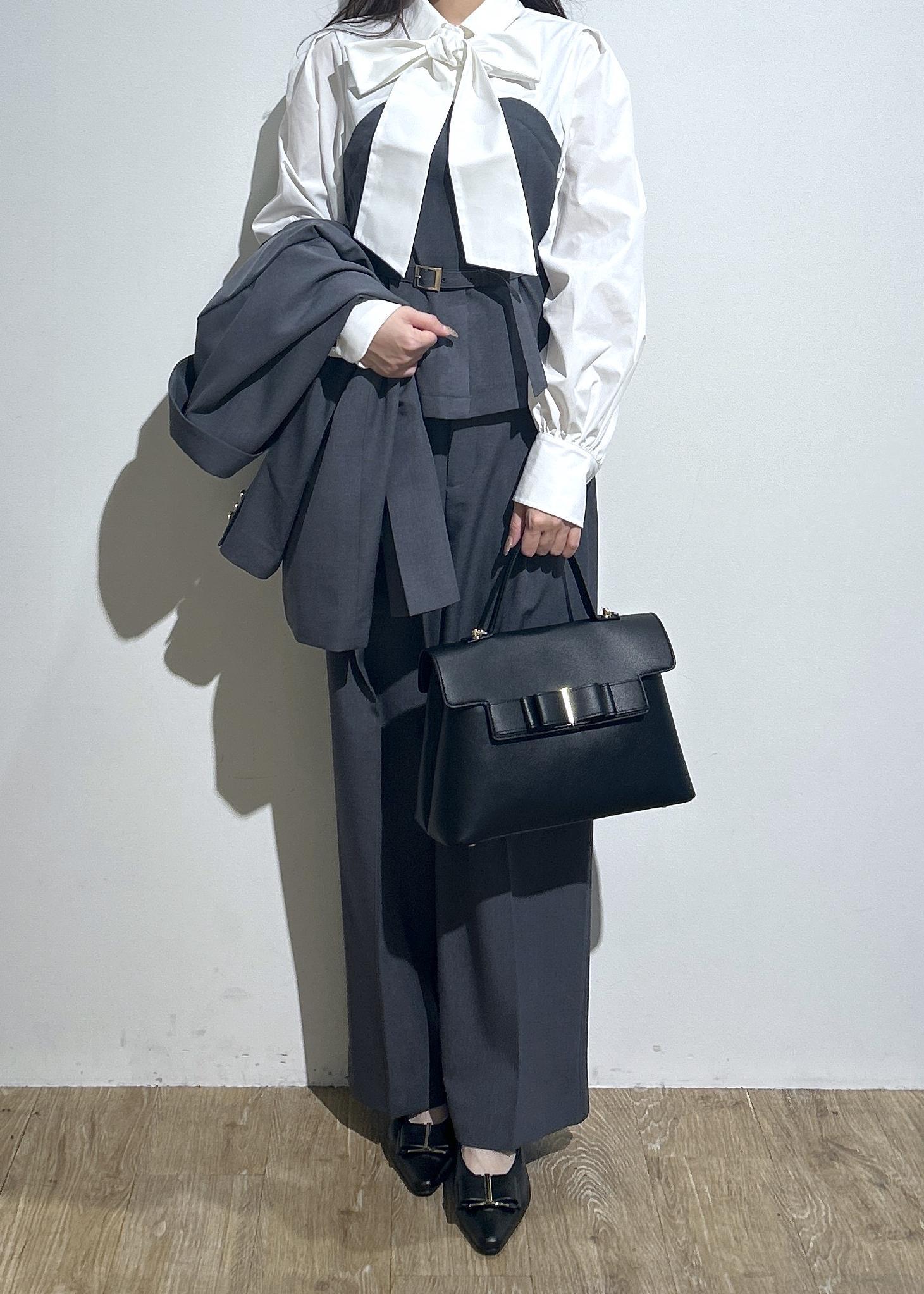 美easyの新作!ジャケットとビスチェシャツとパンツの3点セットアップコーデです!セレモニーシーンにもオフィスにも、単品使いだと普段着にも使える万能アイテムです◎