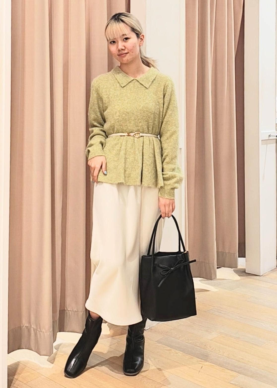 ペプラムのシルエットでスタイルアップして見えます!!ウエストマークとしてベルトをプラスしても可愛いです☺︎ -