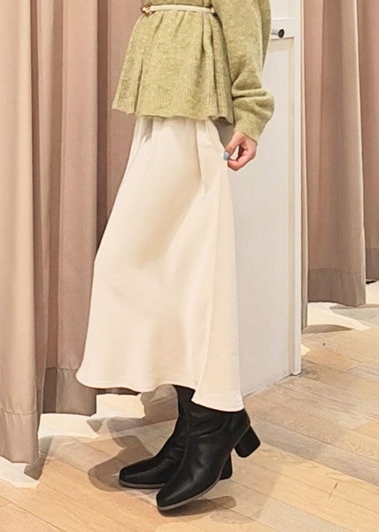 ROPÉ PICNIC細見えバイアスサテンスカート/イージーケアオフホワイト / F¥6,490レビューサテン特有の滑らかな光沢感とシルエットが綺麗なスカートです!!低身長で細身の私は胸上まで上げてベルトで止めると足首が10cm程出て丁度良かったです☺︎やや静電気で張り付きやすいので、静電気防止スプレーやペチコートを使用するのがオススメです♪