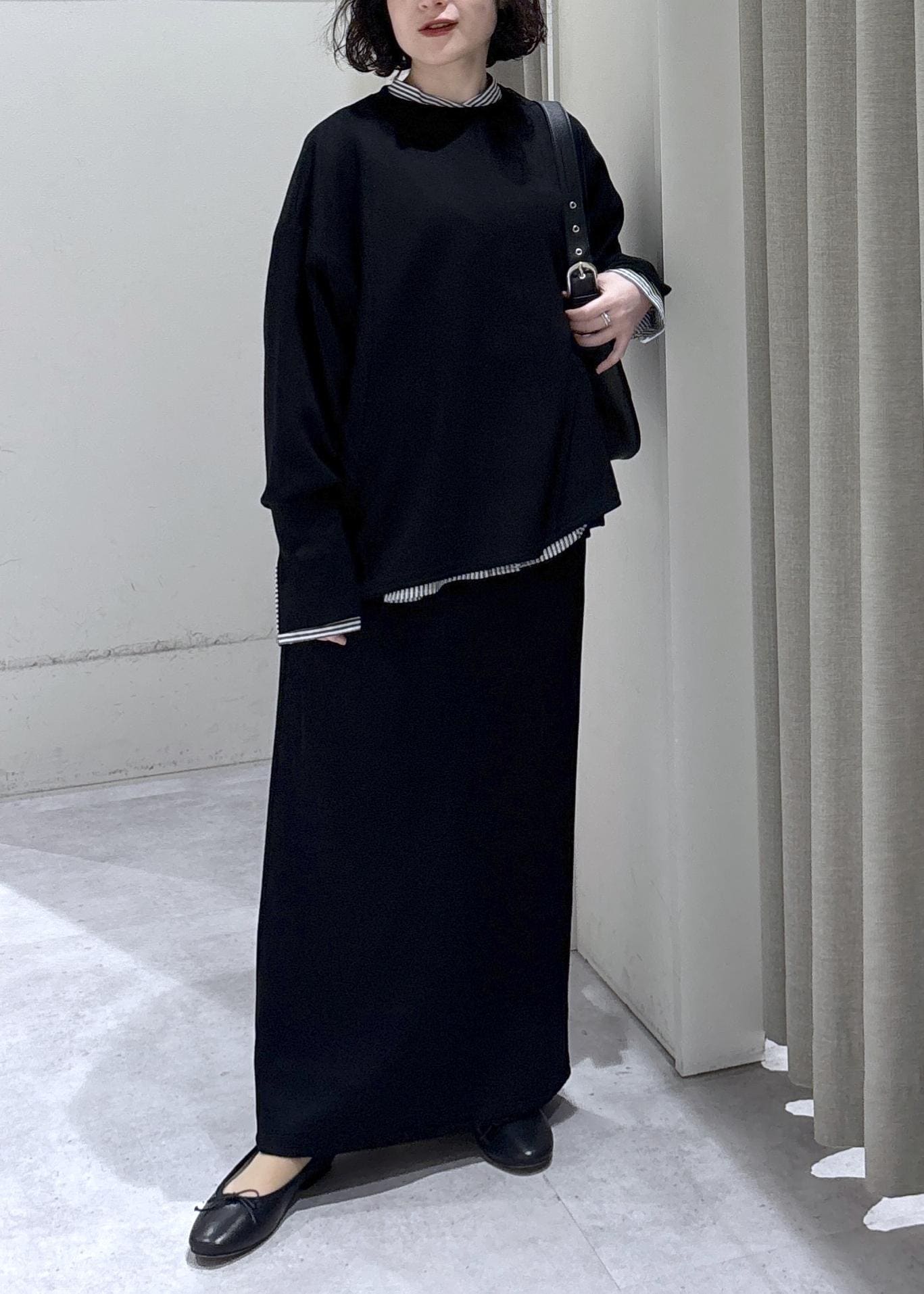 LE CERCLE par ropéフォルムワイドプルオーバー/セットアップ対応ブラック / F¥6,490レビュー生地はサラッとしていてストンと落ち、体のラインを拾わないストレスフリーな着心地!