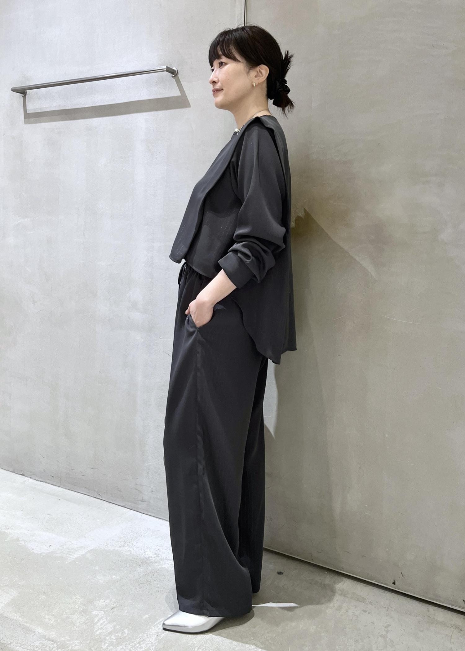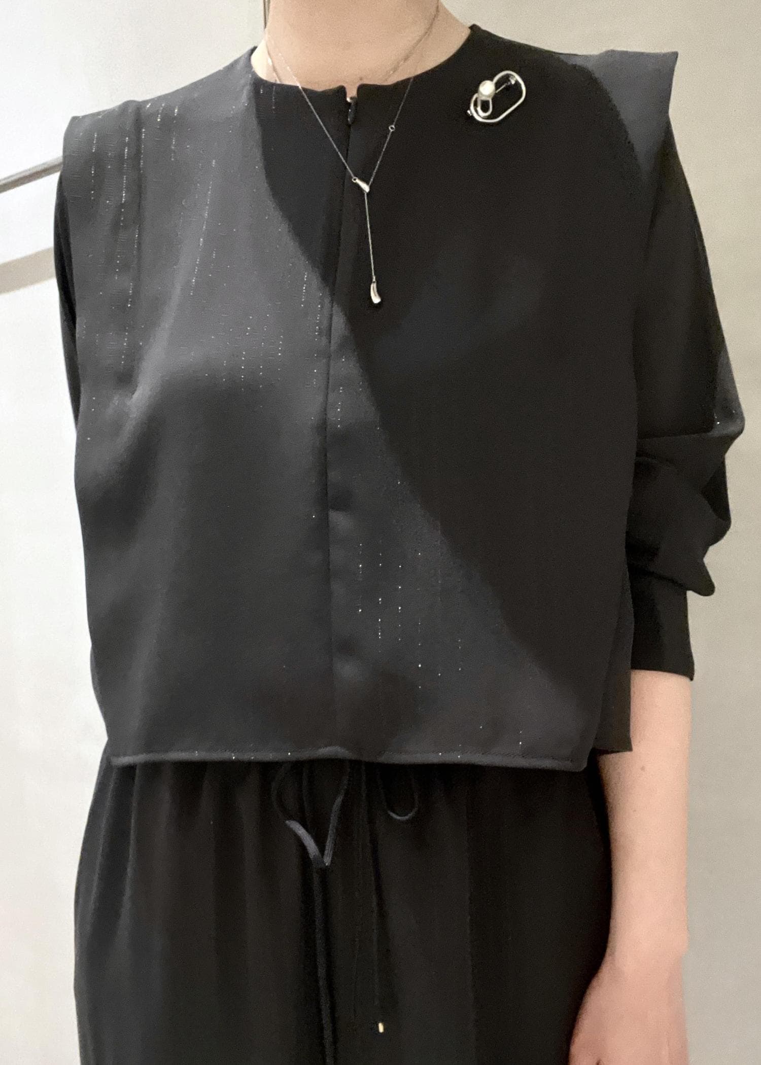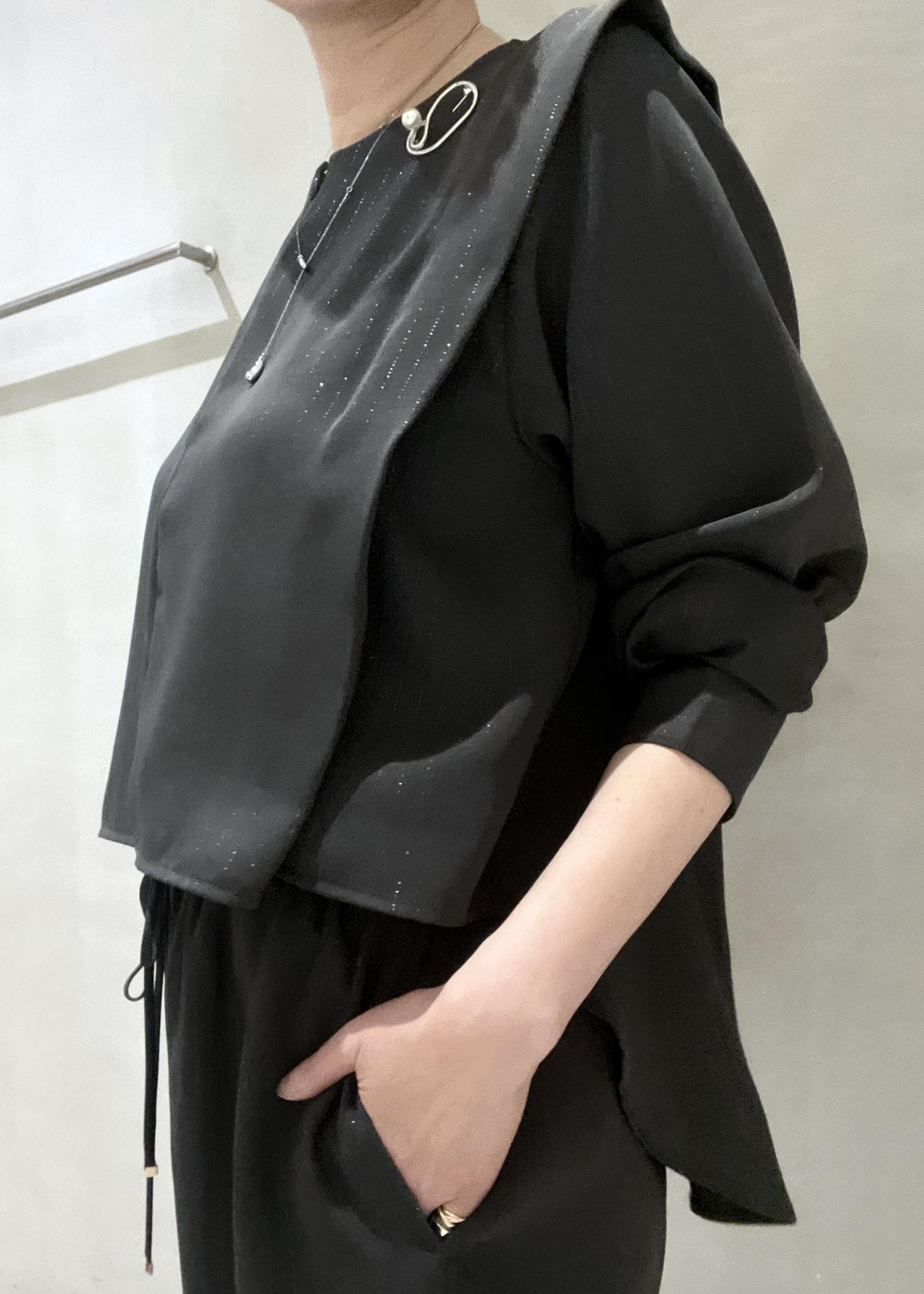 ラメ感が控えめなので、単品で普段にもお仕事着としても着用いただけますが、これからの時期、合わせ方次第ではセレモニーにも使えます。