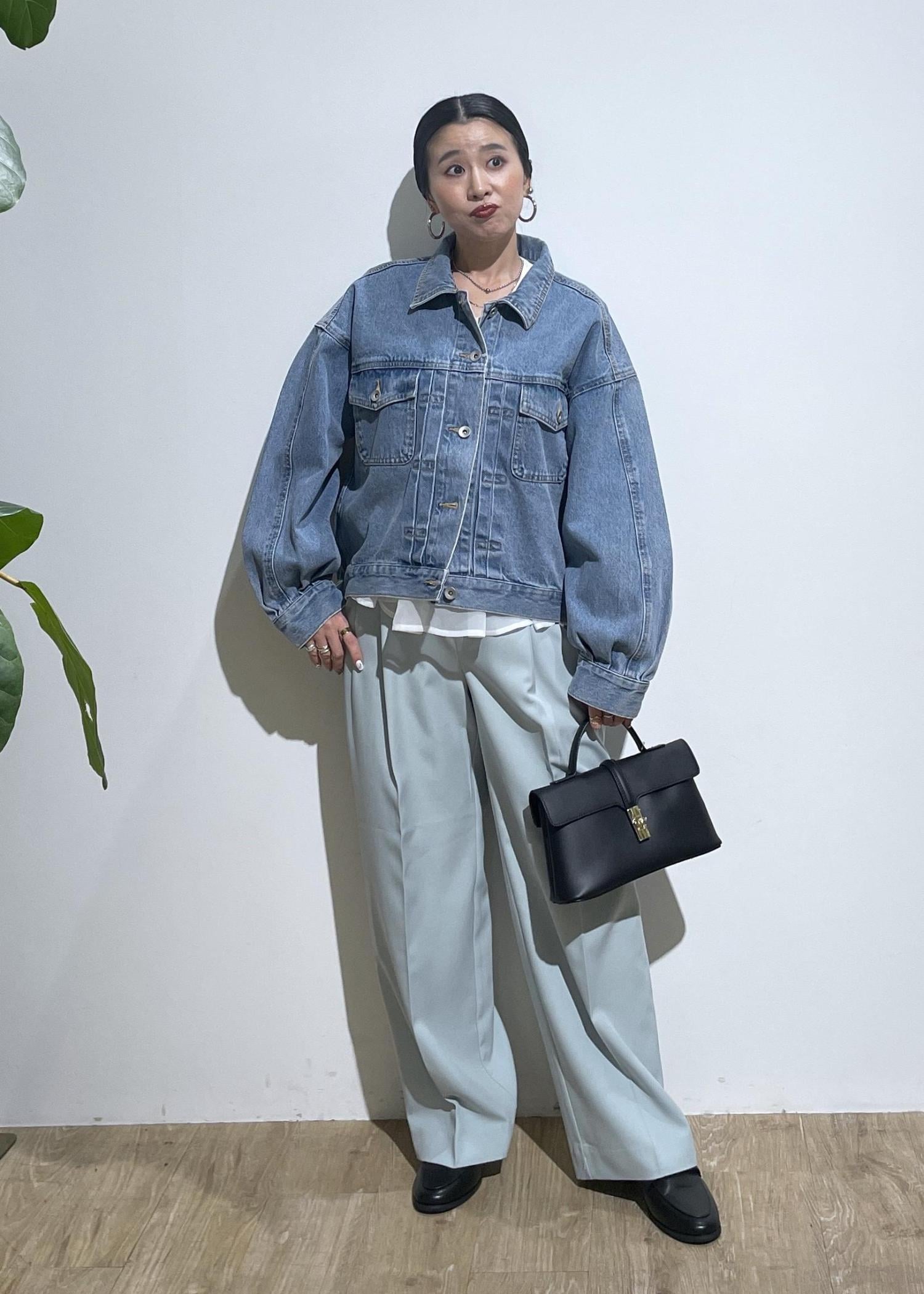 小物でしっかりとしめる事で春カラーがよりしっかりだしています。使いやすい丈感のデニムジャケットは、春の着回しにピッタリなので一枚持っておくと便利でおすすめです。