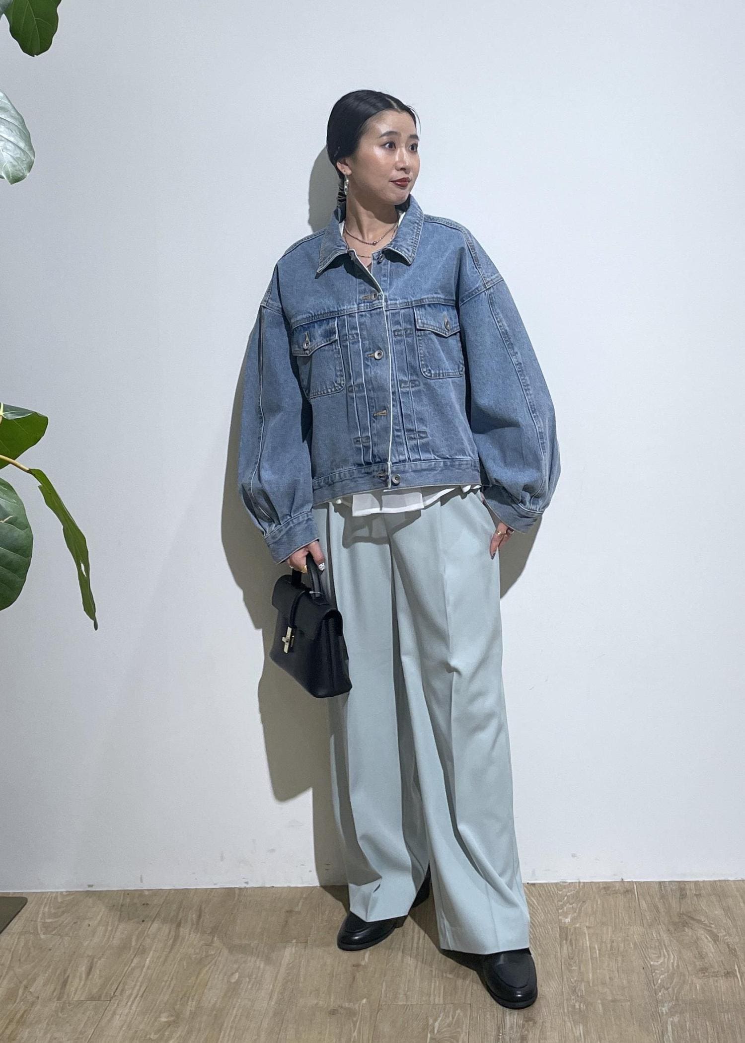 似ているデニムでセットアップ風に着るのもかわいいですね。