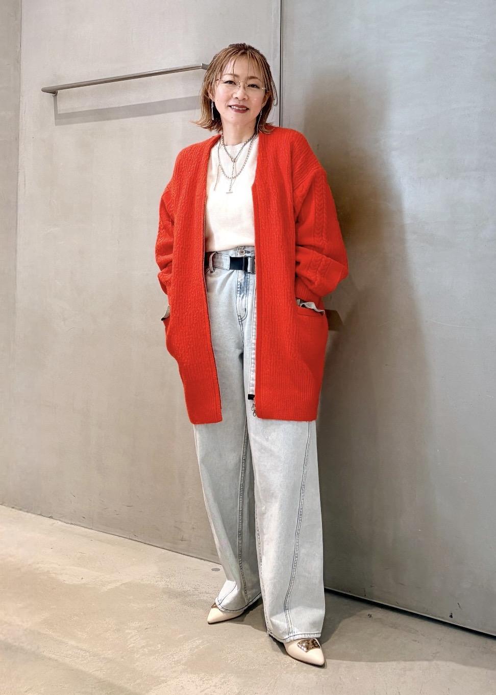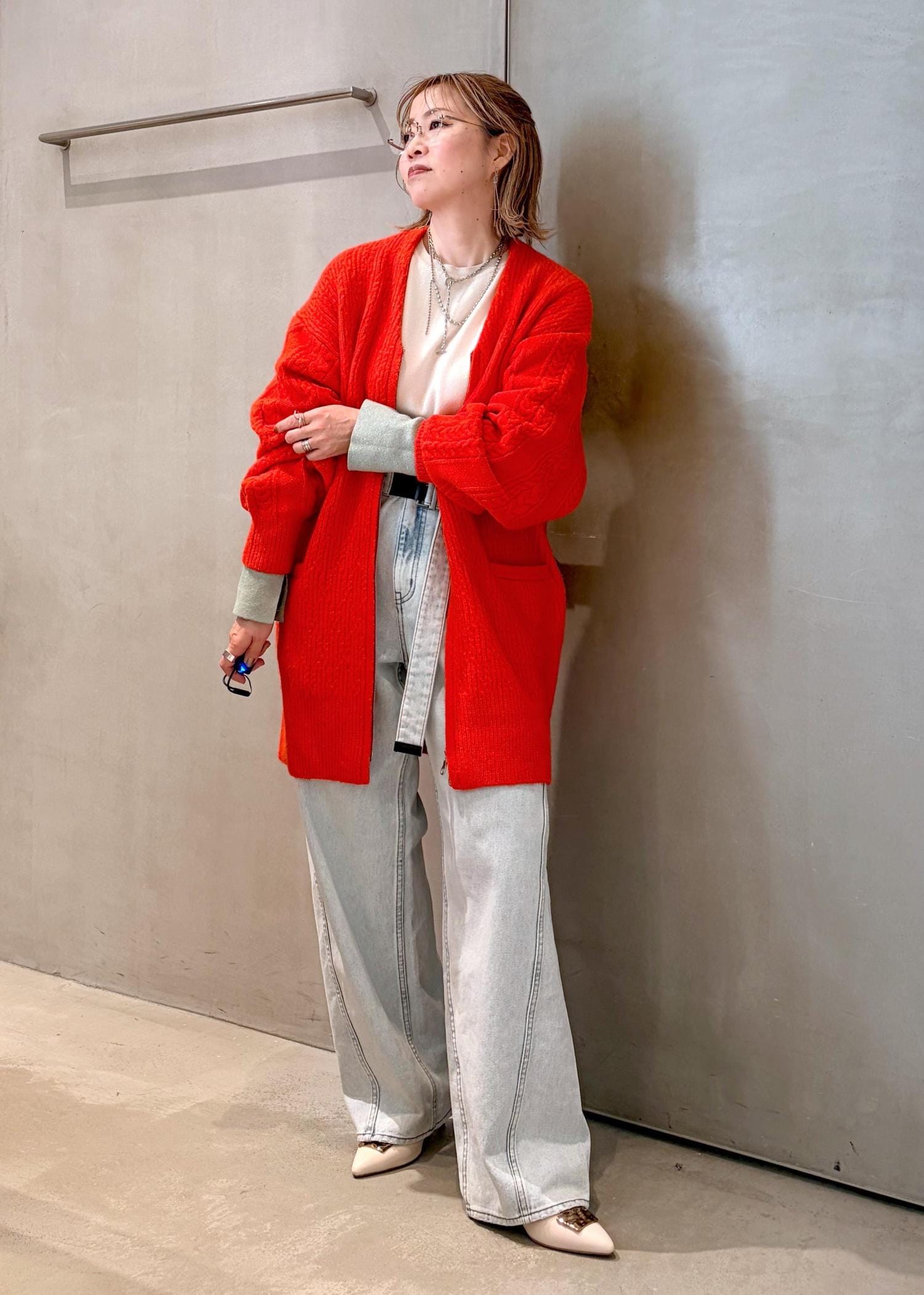今回は春カラーのデニムに鮮やかなロングカーディガンを合わせて、オトナ女子におすすめのデニムコーデです。