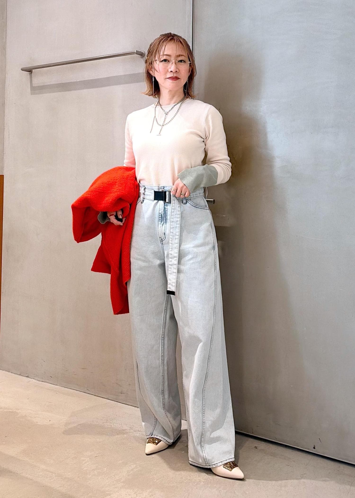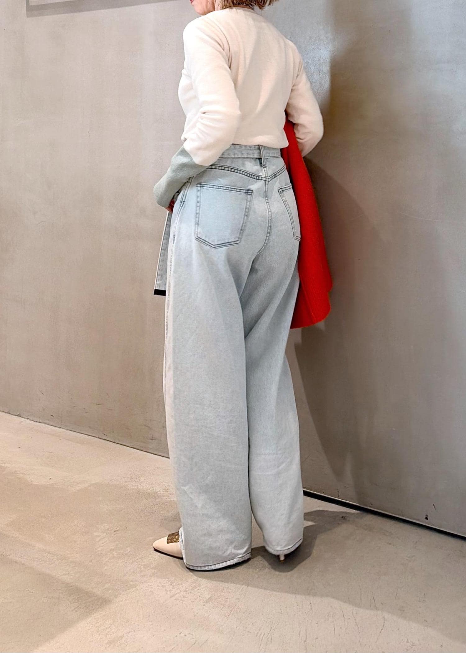 デニムはちょっとカジュアル過ぎて苦手なモノが多いのですが、この落ち感とラインは、そんな私でも履きたい!って思える一着でした。