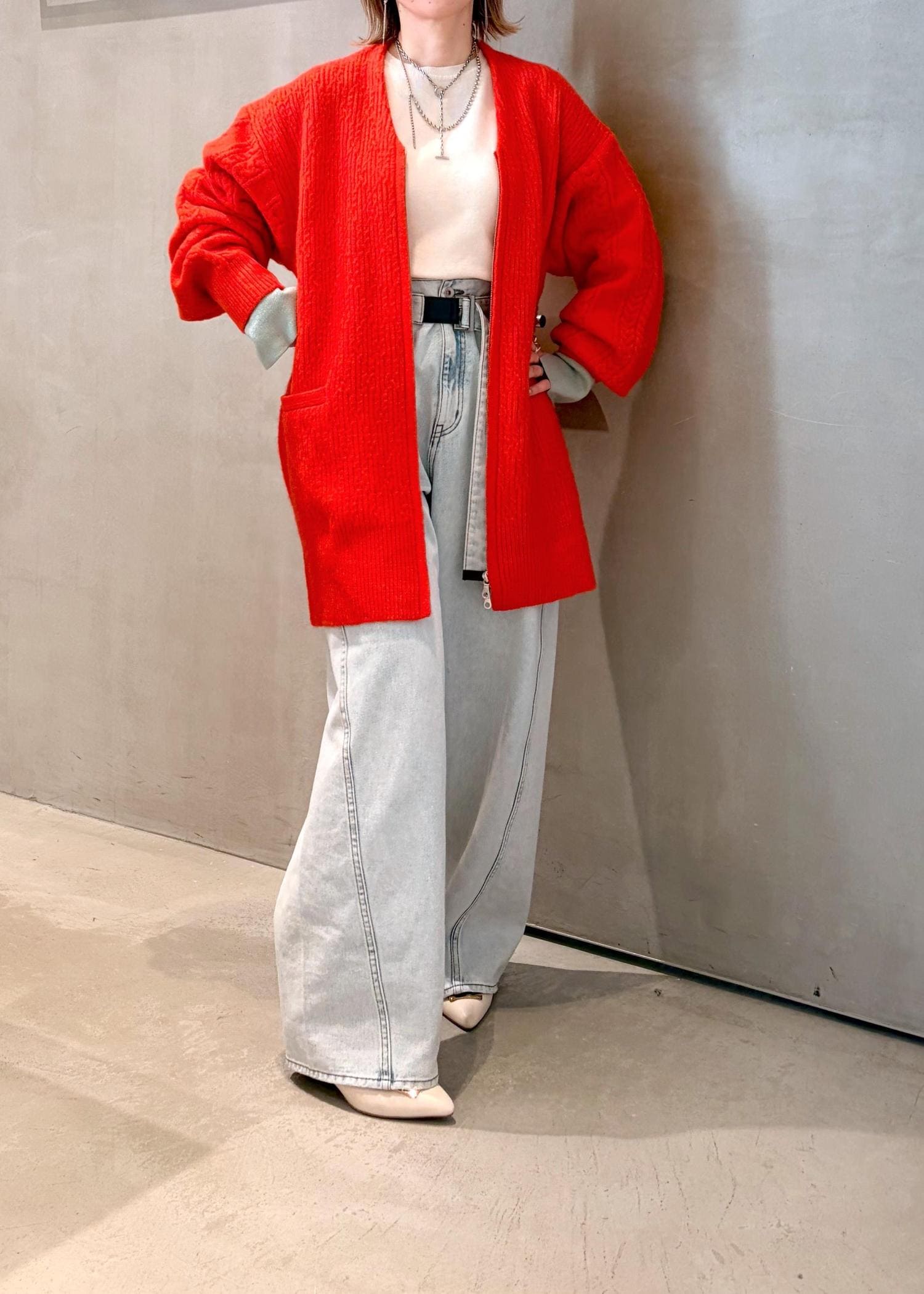 ADAM ET ROPÉ FEMME【WEB限定】ミックスパターンジップミドルカーディガンレッド系 / F¥7,425レビューもっちり厚みのある素材で、軽アウターとしてもオススメです。