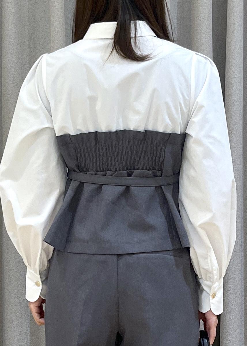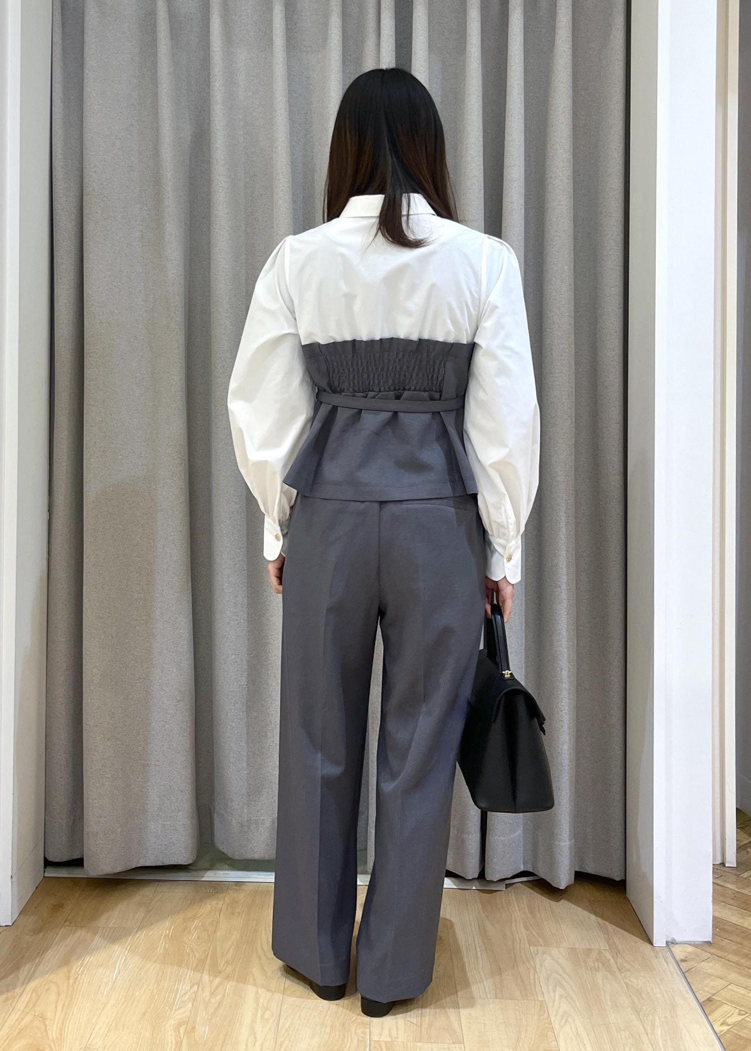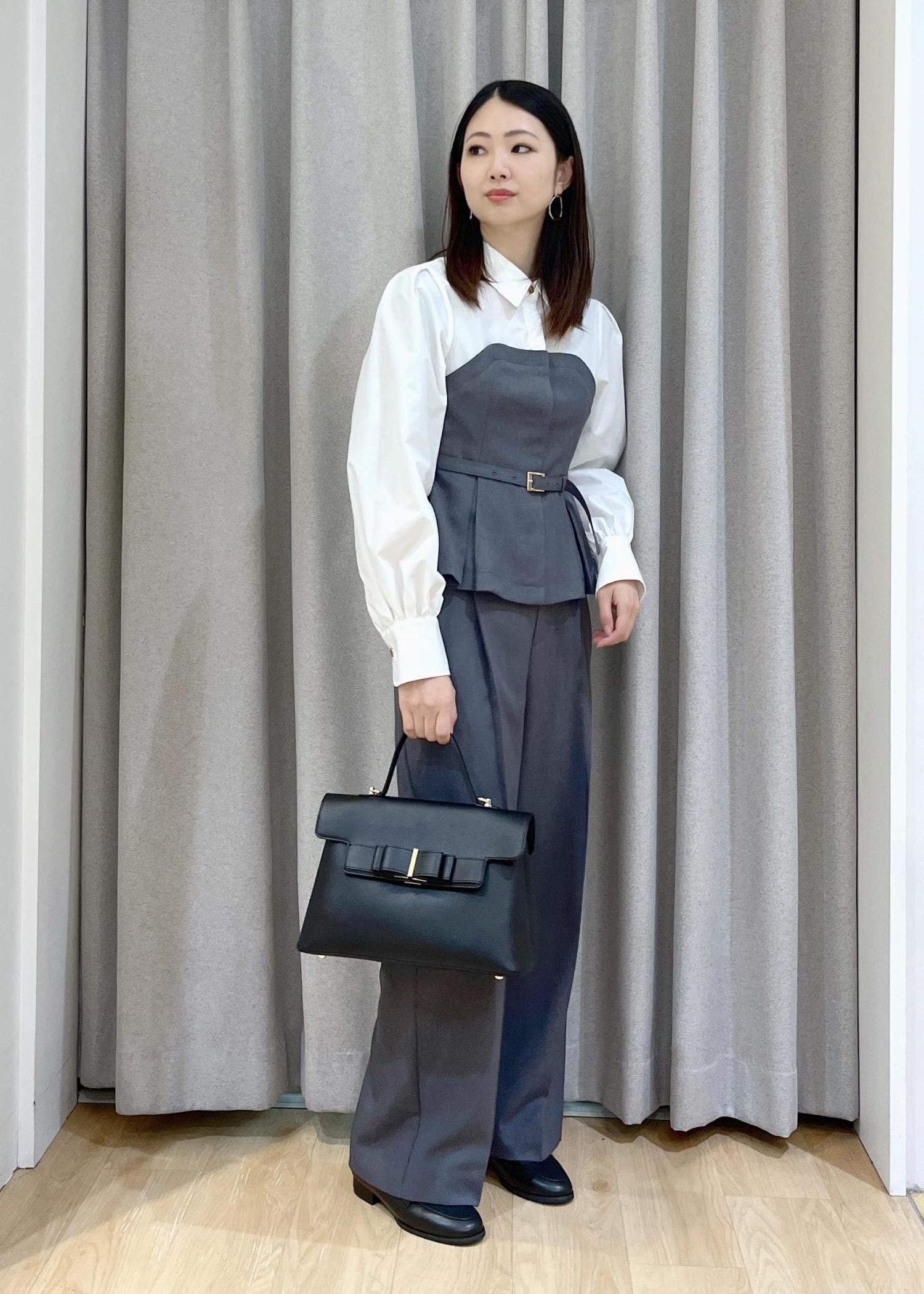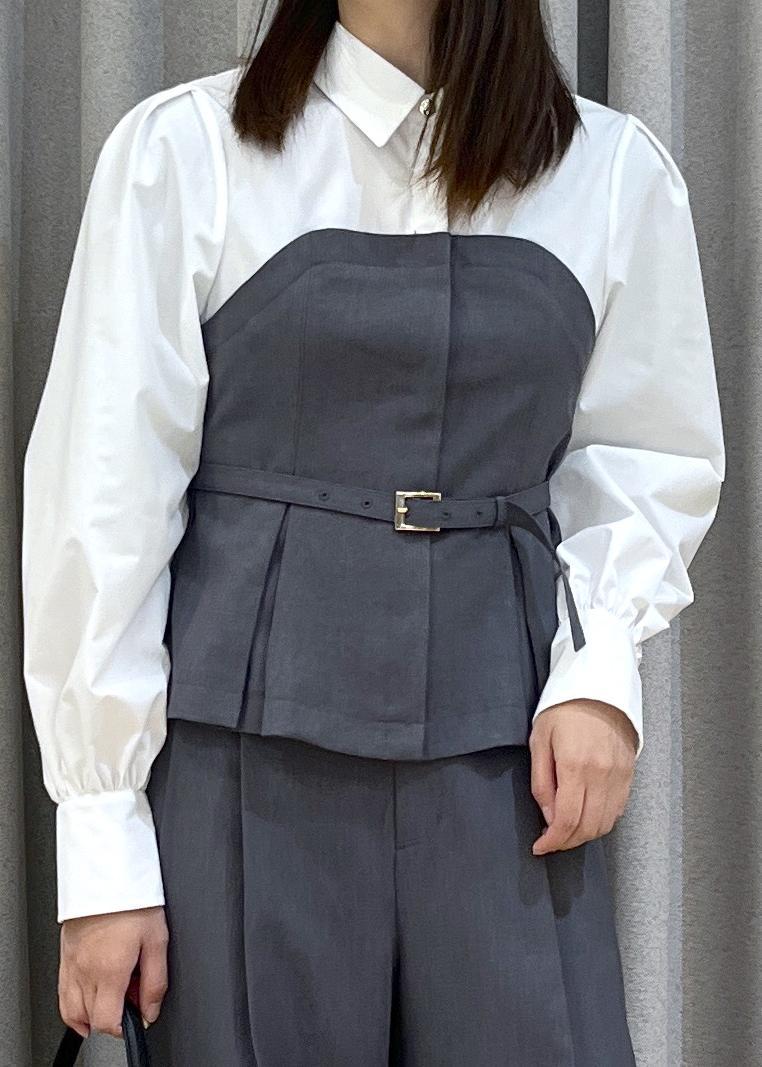 VIS【美easy】コンフォートボウタイドッキングシャツ/イージーケア・2WAYグレー / F¥6,589レビューきちんと感のあるシャツ素材に、ビスチェデザインが程よくアクセントになり、セレモニーシーンにも映える一着です。ウエスト位置が高く見えるため、スタイルアップ効果も◎