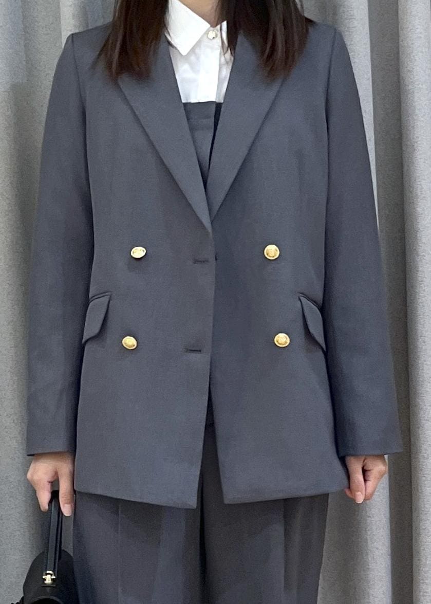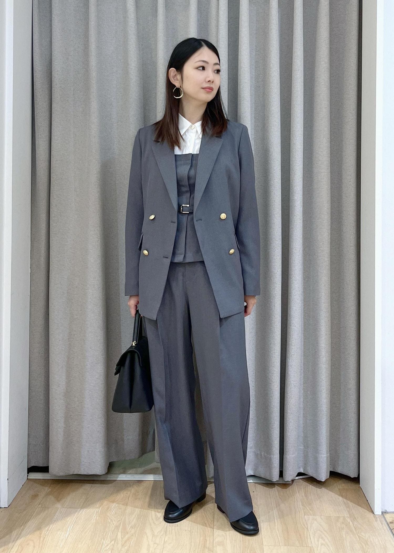 落ち着いたカラーと美シルエットが魅力のセットアップ。