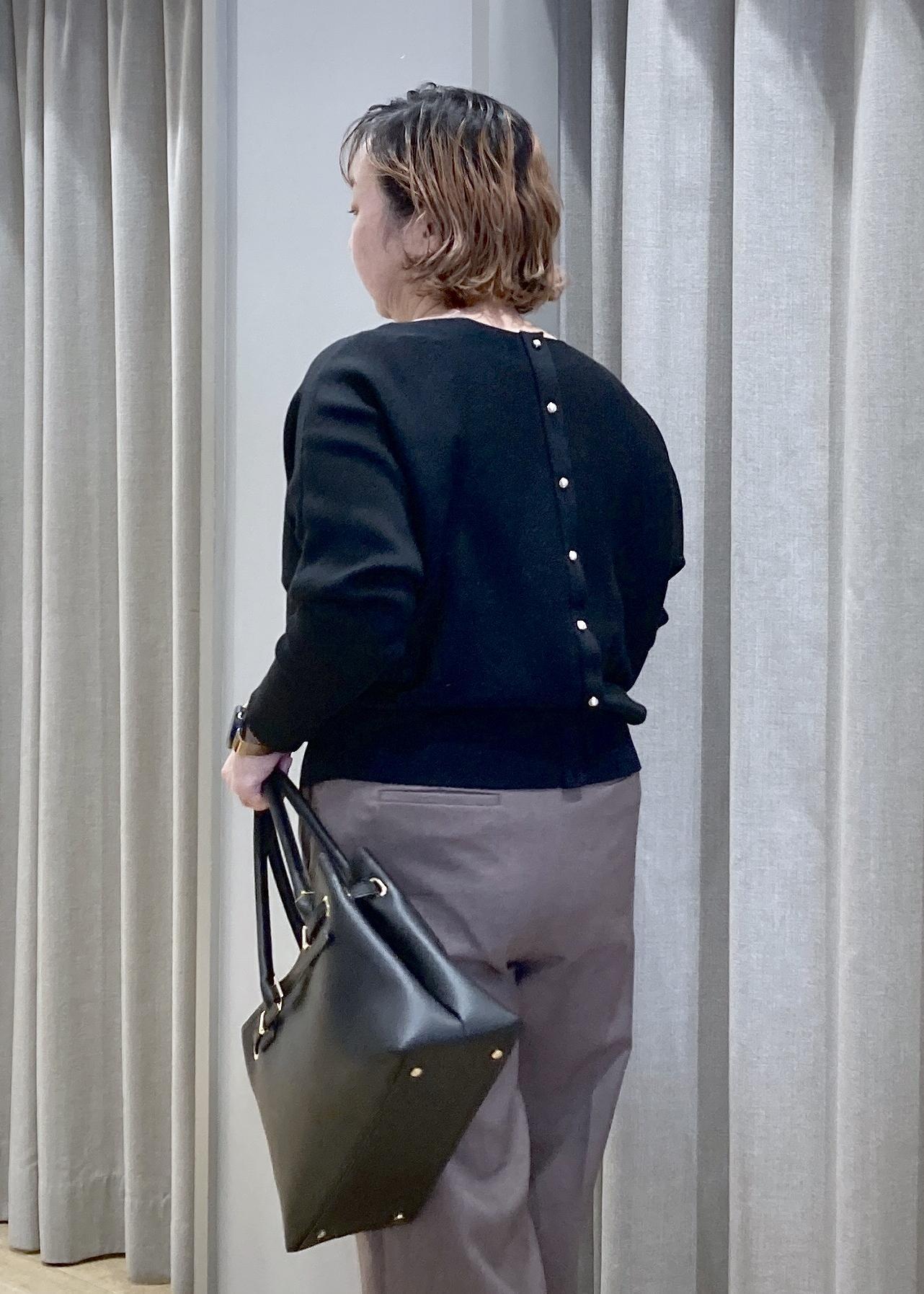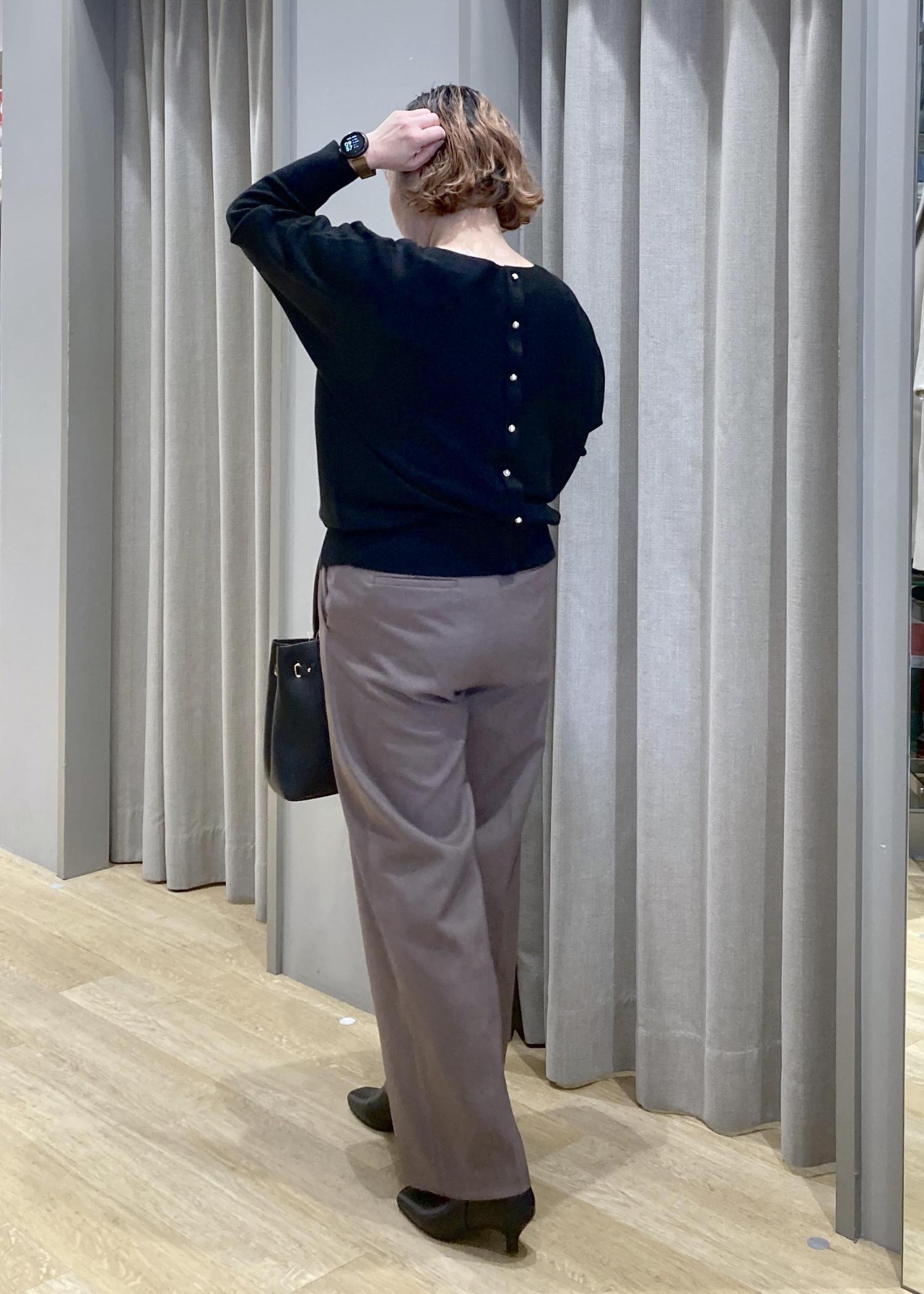 パールを後ろで着る着方が、後ろ姿美人になれるので春にはオススメです。