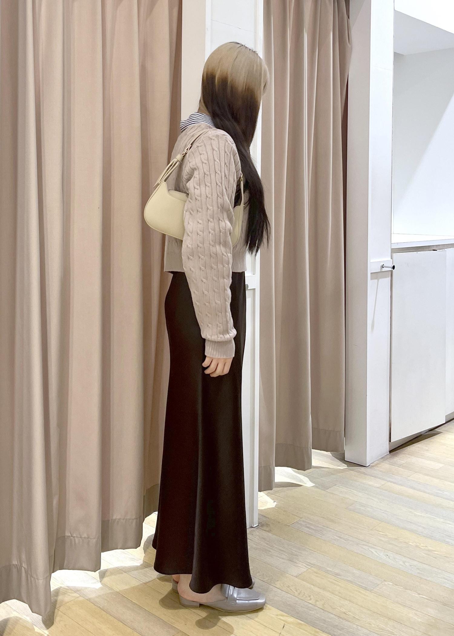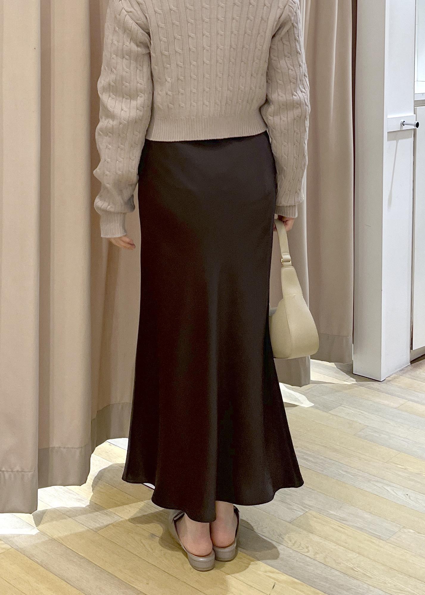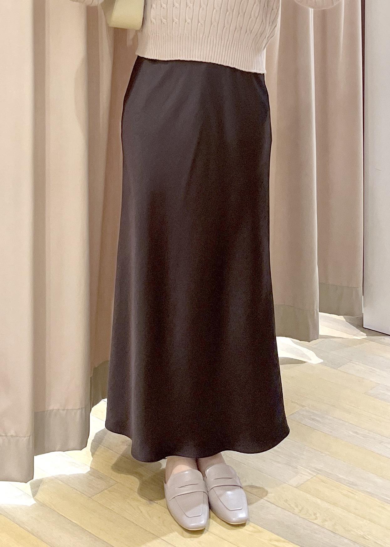 ROPÉ PICNIC細見えバイアスサテンスカート/イージーケアダークブラウン / F¥6,490レビュー程よい艶感のあるスカートで、コーデを上品に見せてくれるアイテムです!