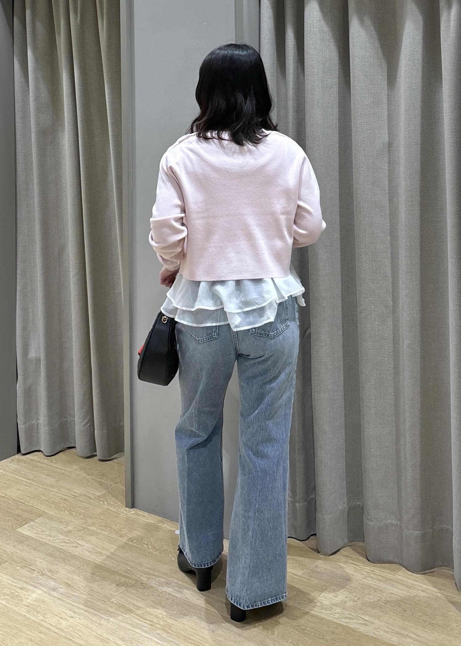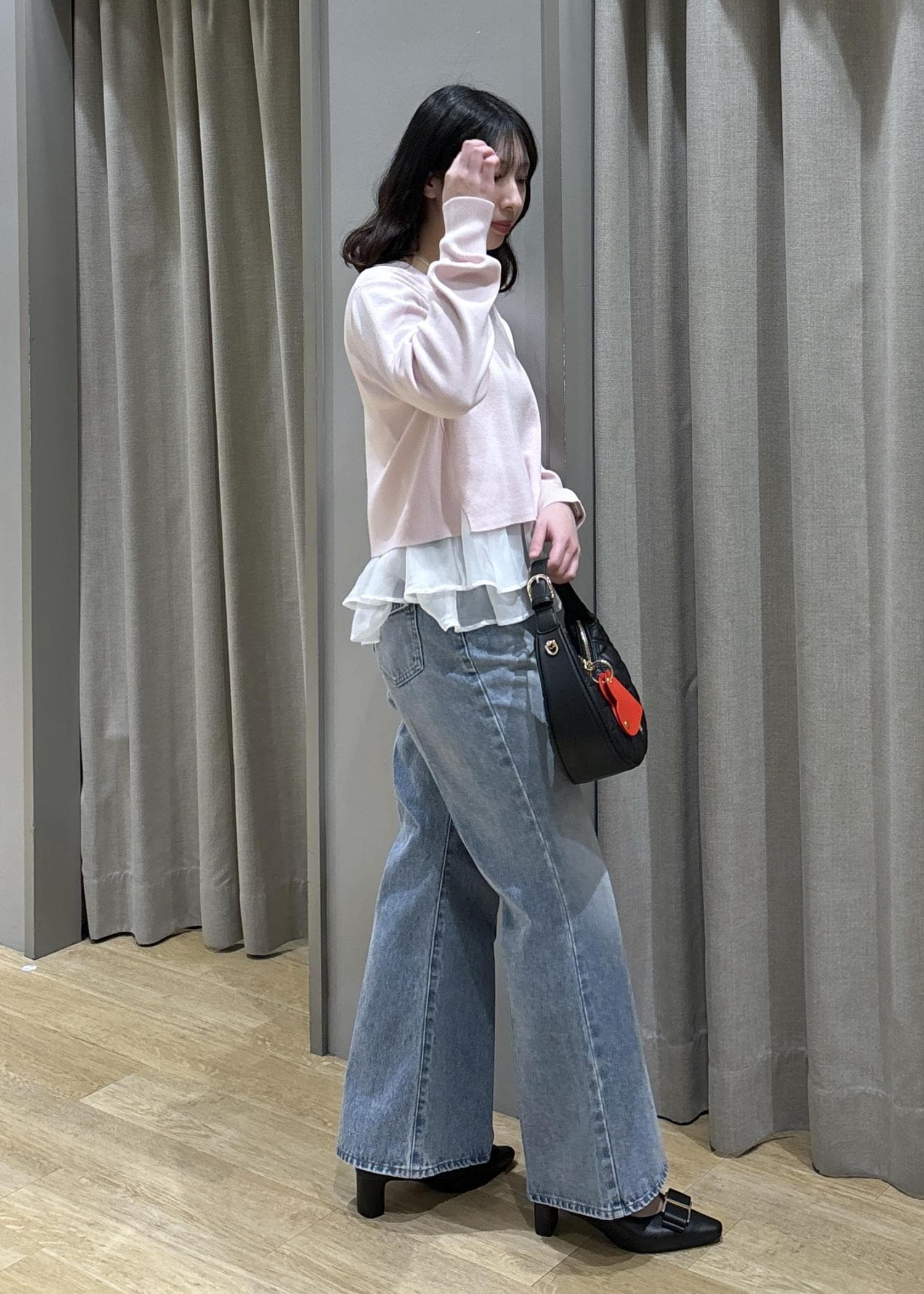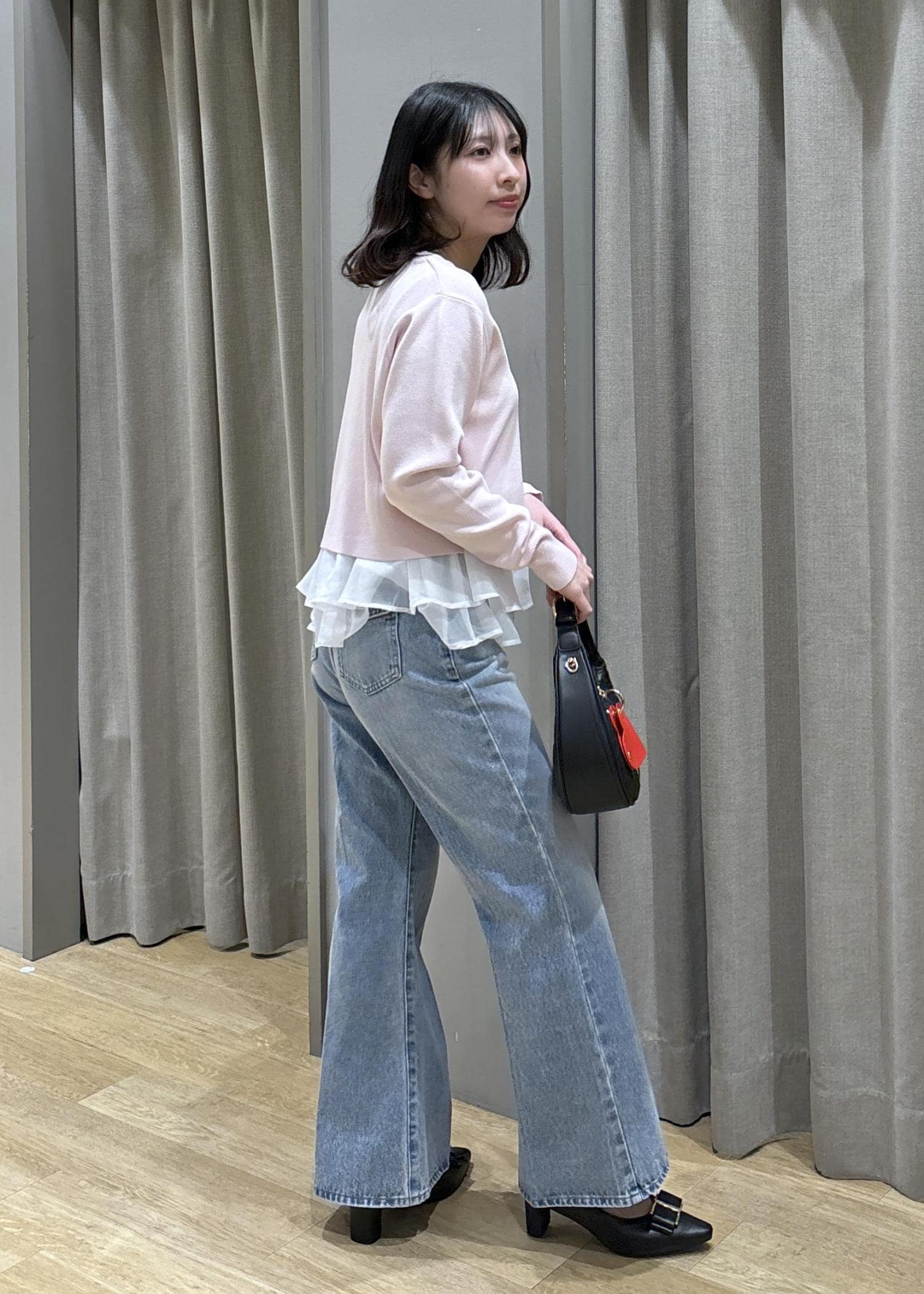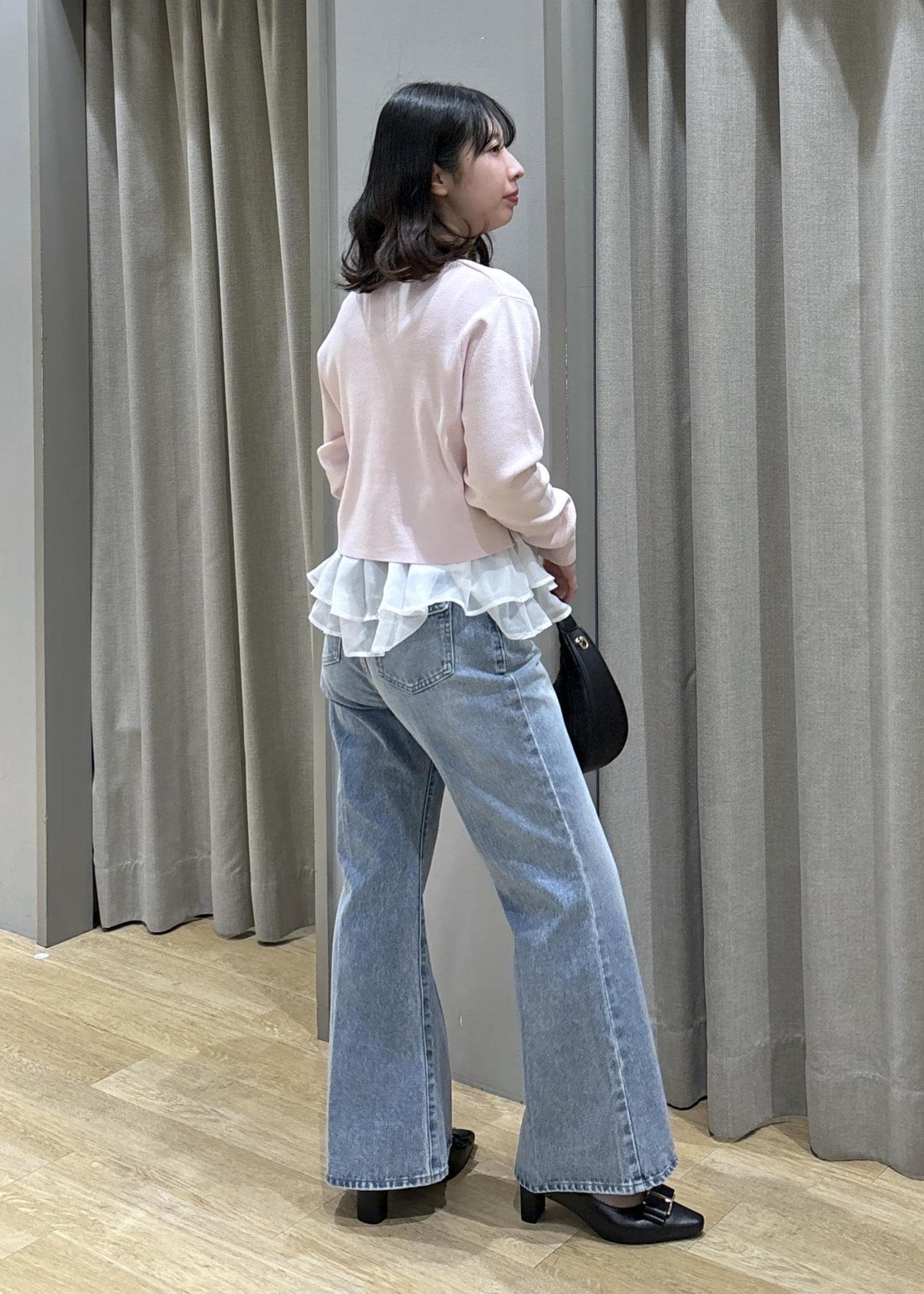 ペプラムオーガンジーニット×フレアデニム