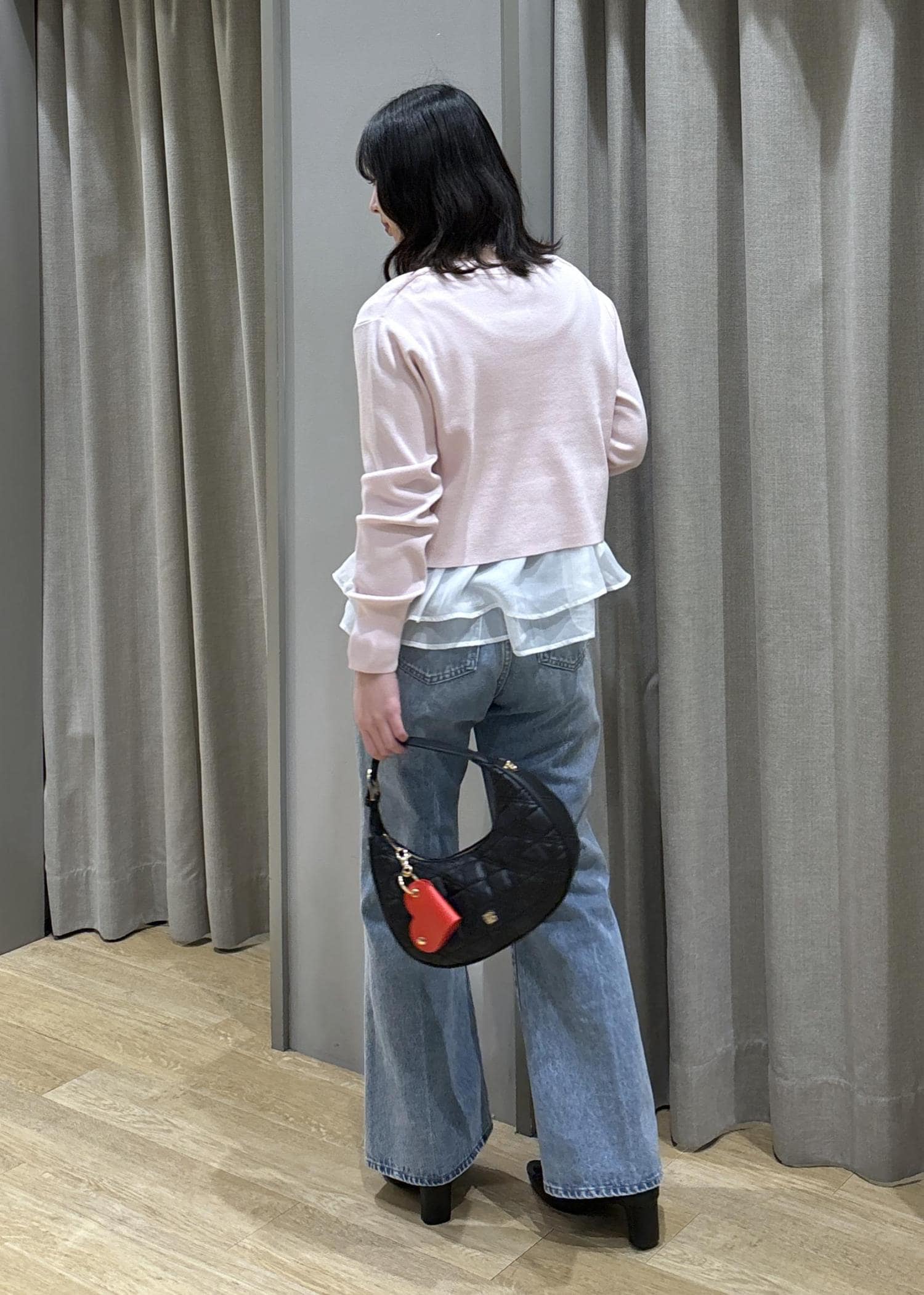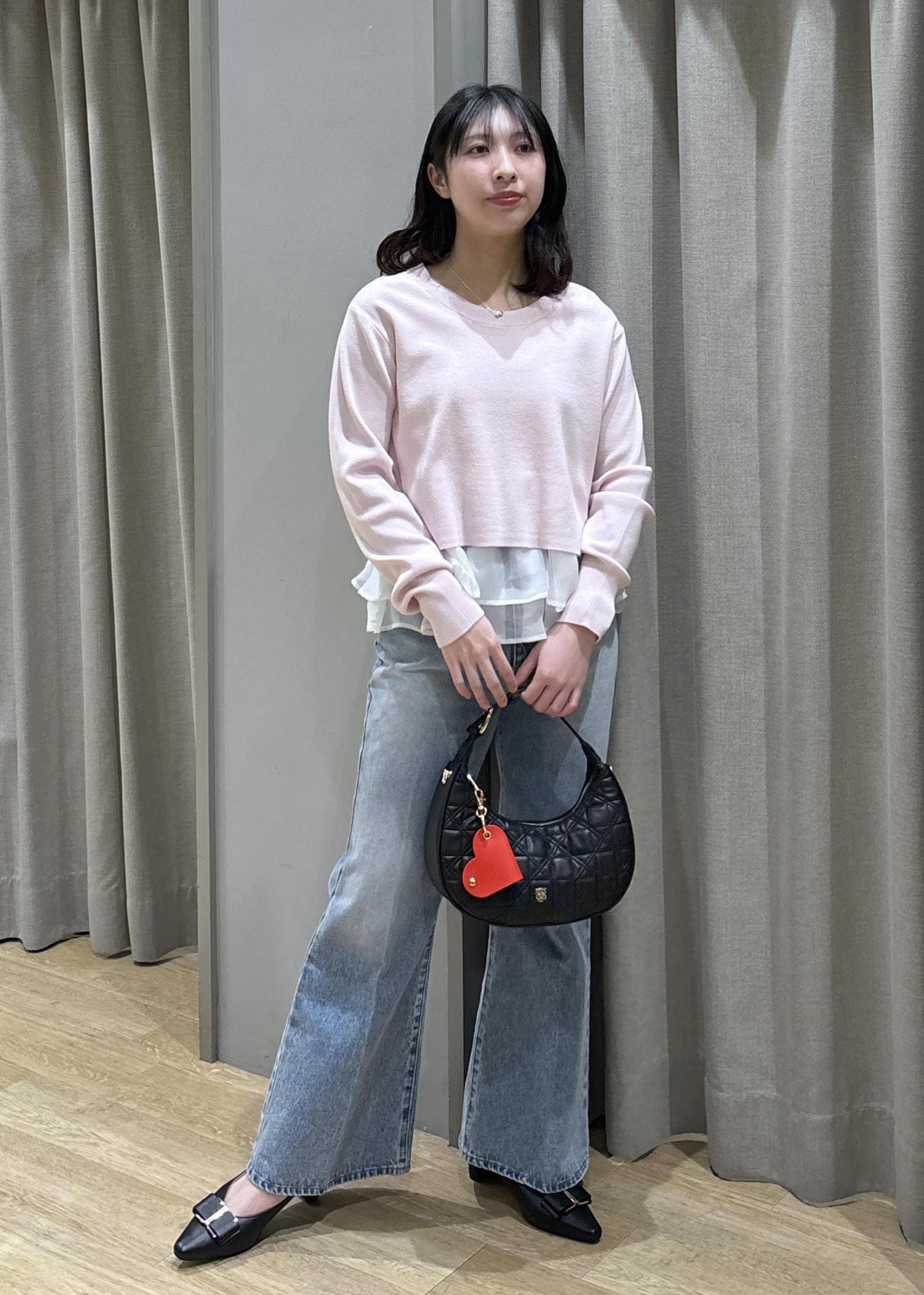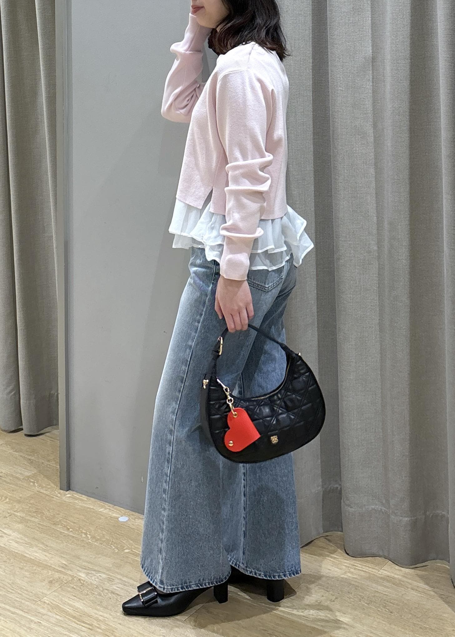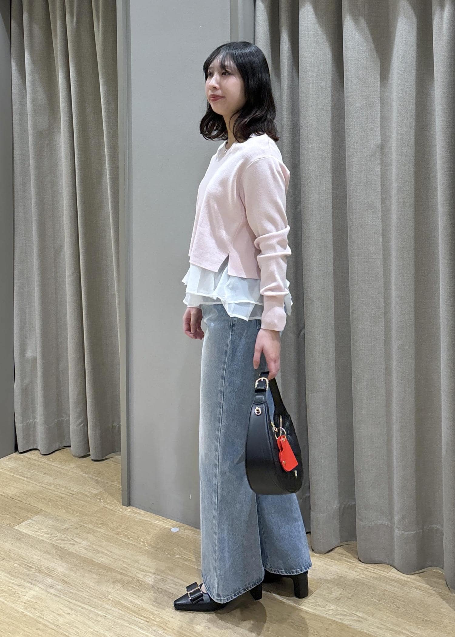 ペプラムオーガンジーニット×フレアデニム