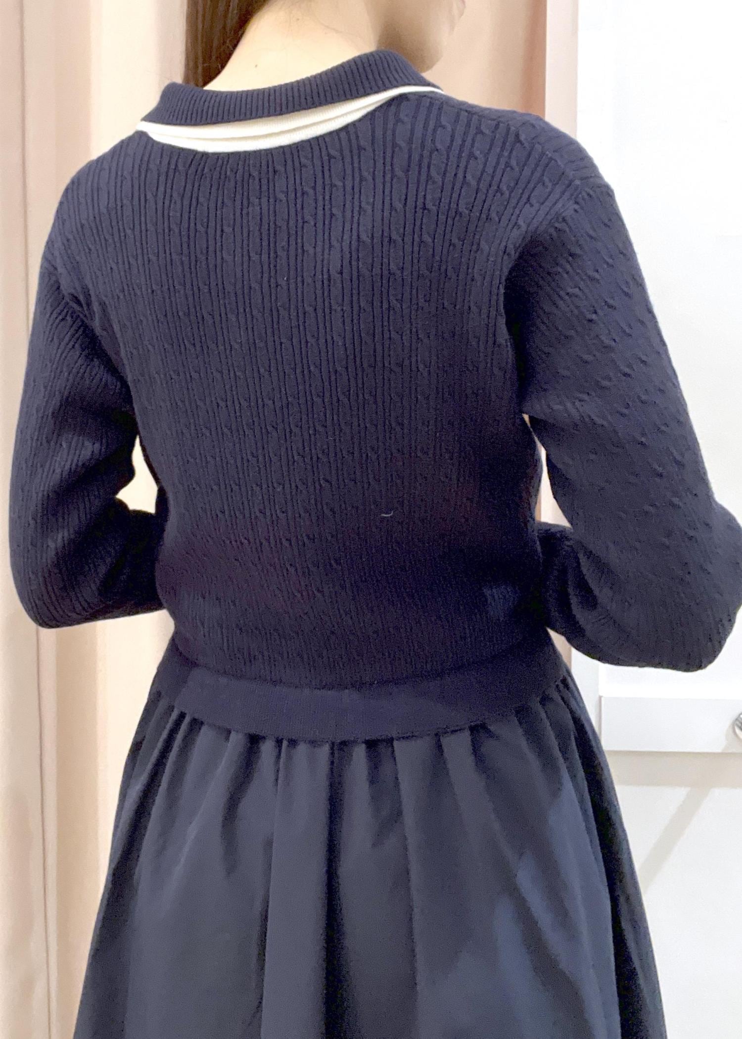 ダブルカラーポロニットドッキングワンピースの春コーデ