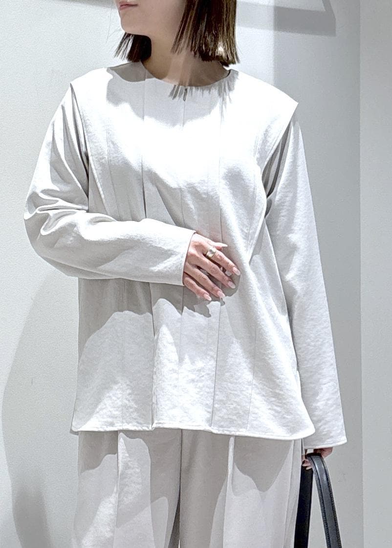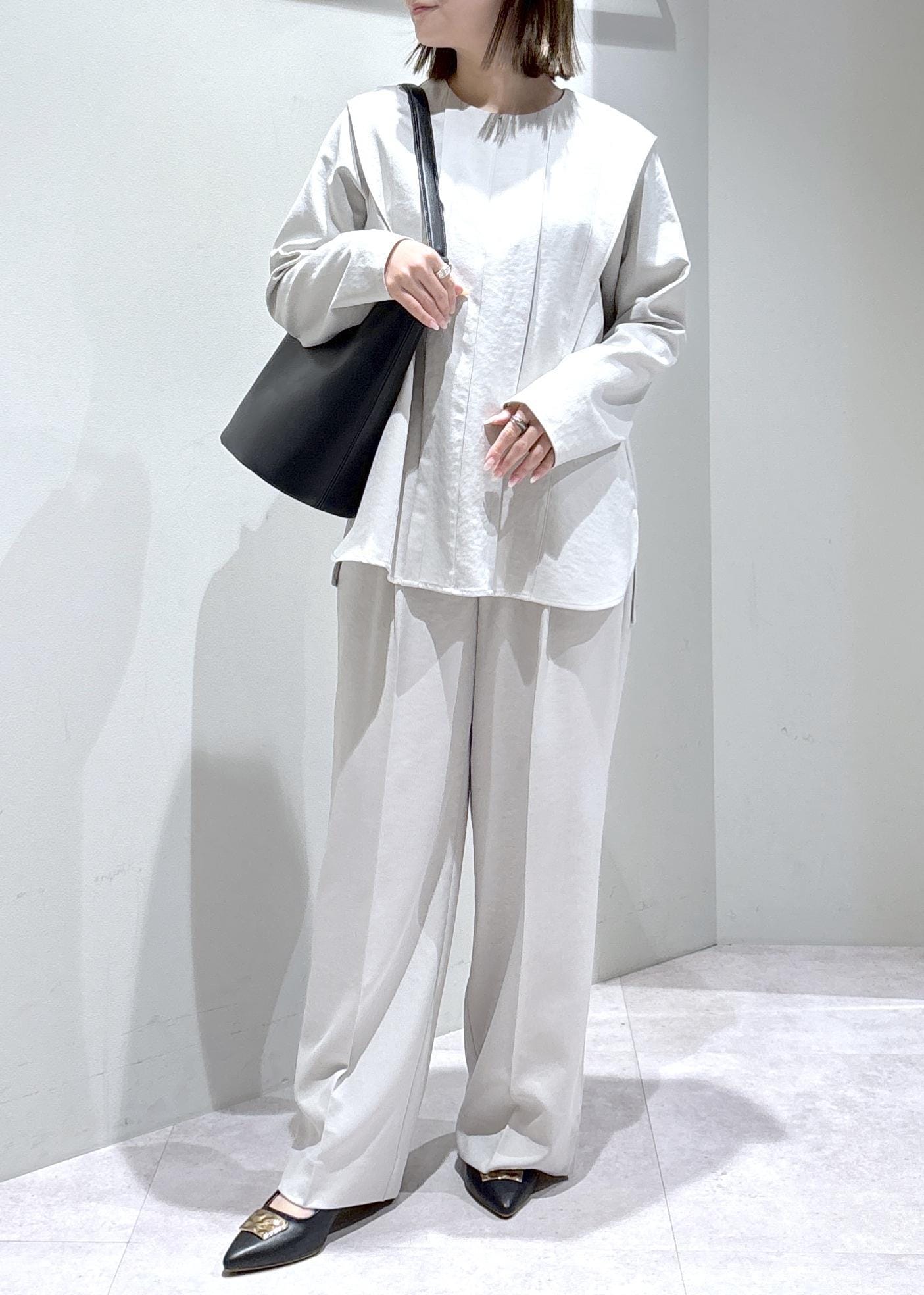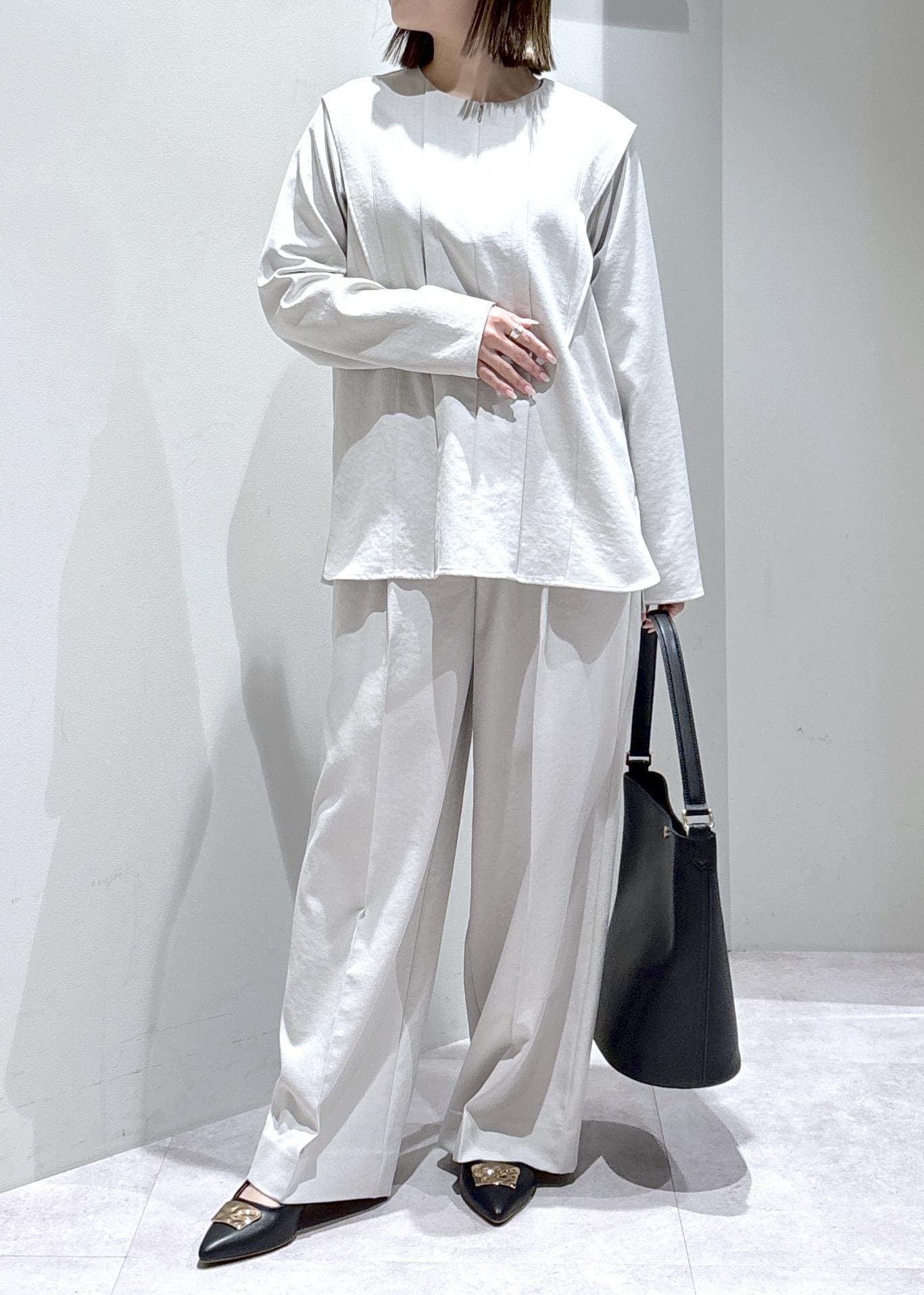 LE CERCLE par ropéビンテージライクツイルファスナーネックブラウス/セットアップ対応ライトグレー / F¥9,790レビュー柔らかい着心地で肩タックがポイント。