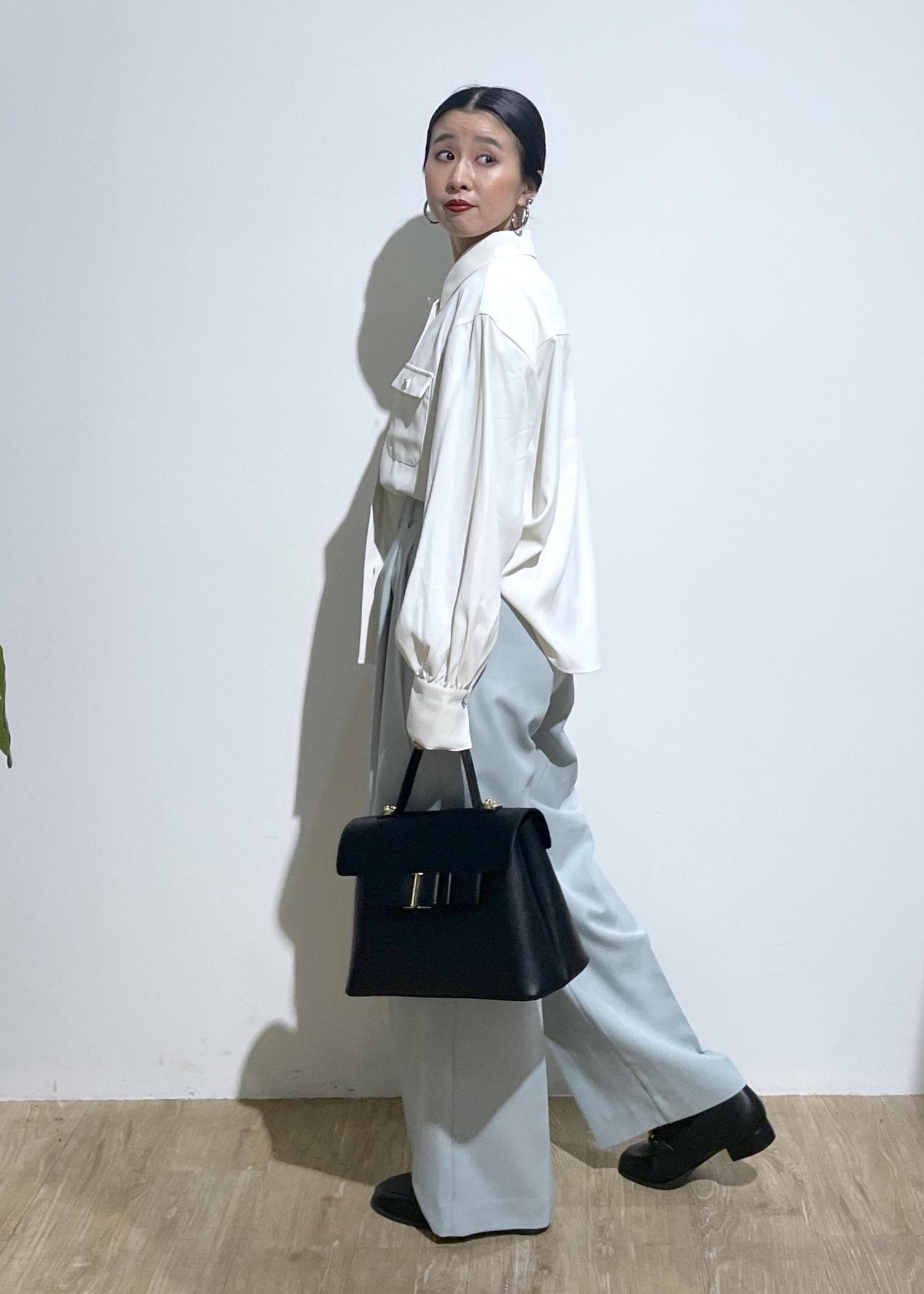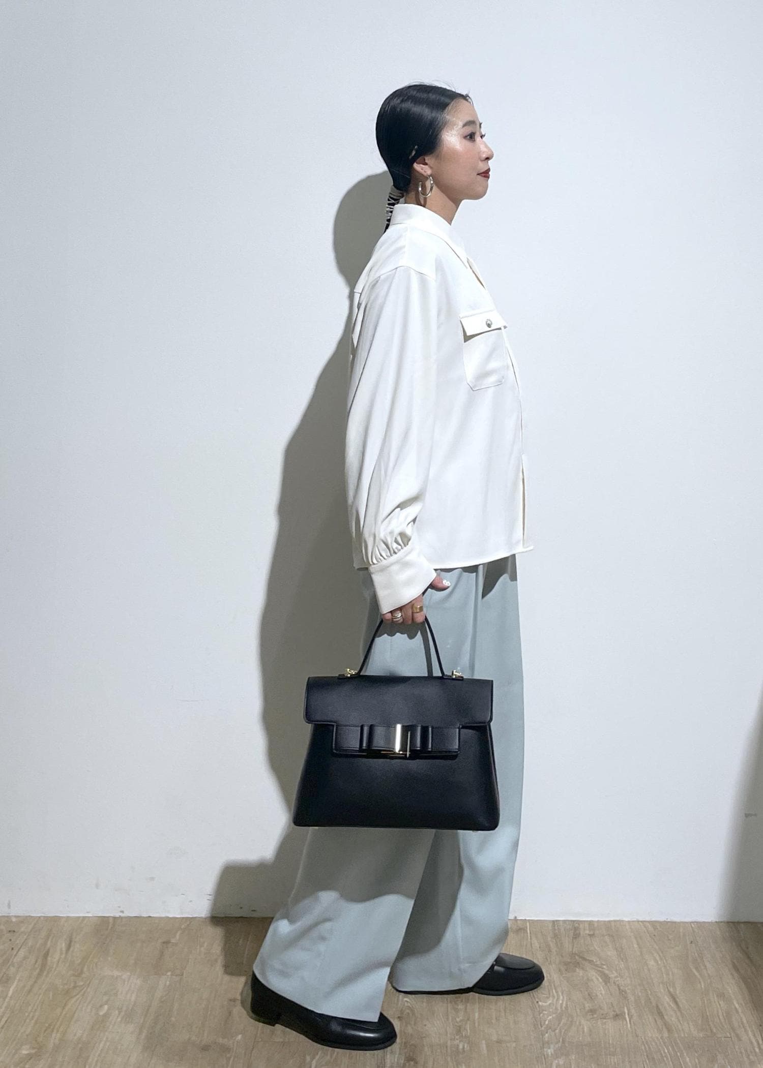 今回は、シャツを片方だけインして後ろは、アウトで体型カバー◎