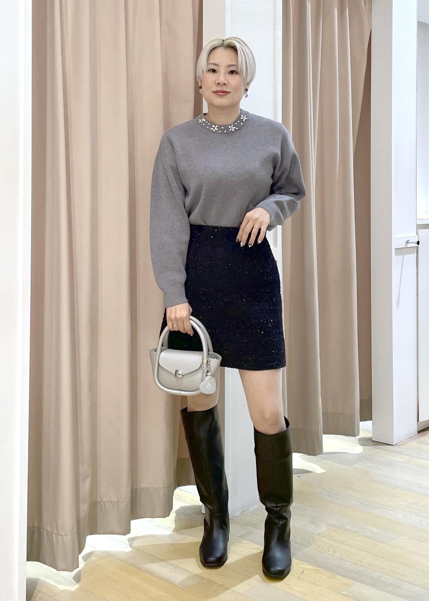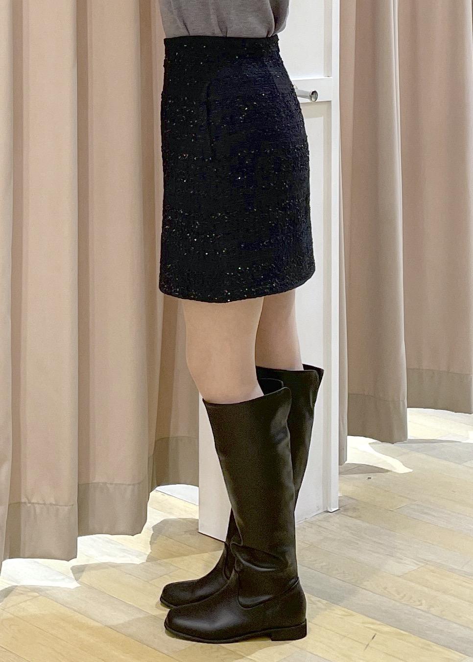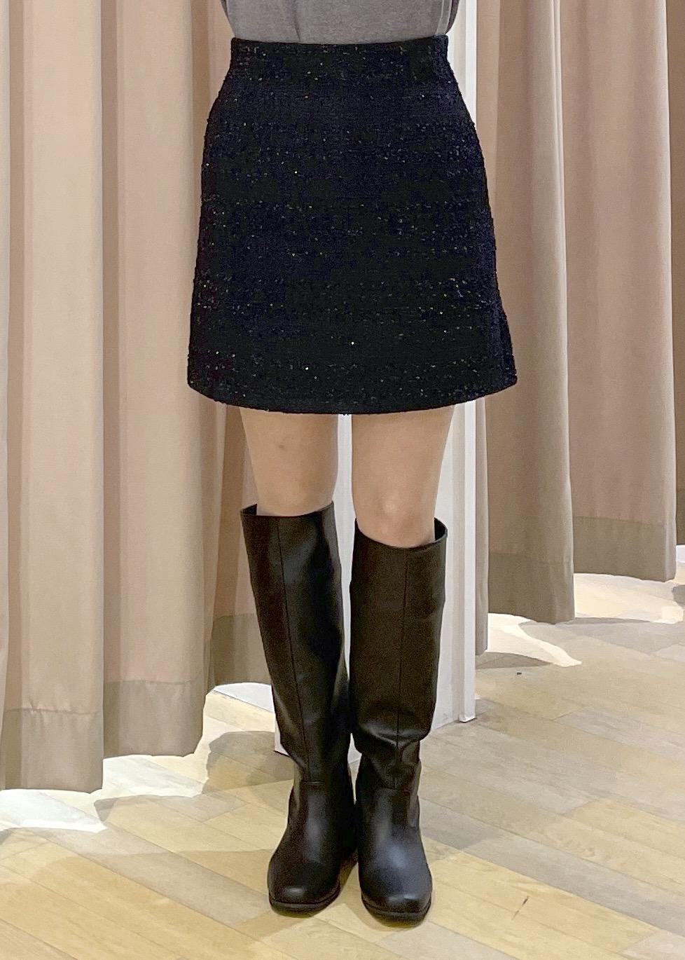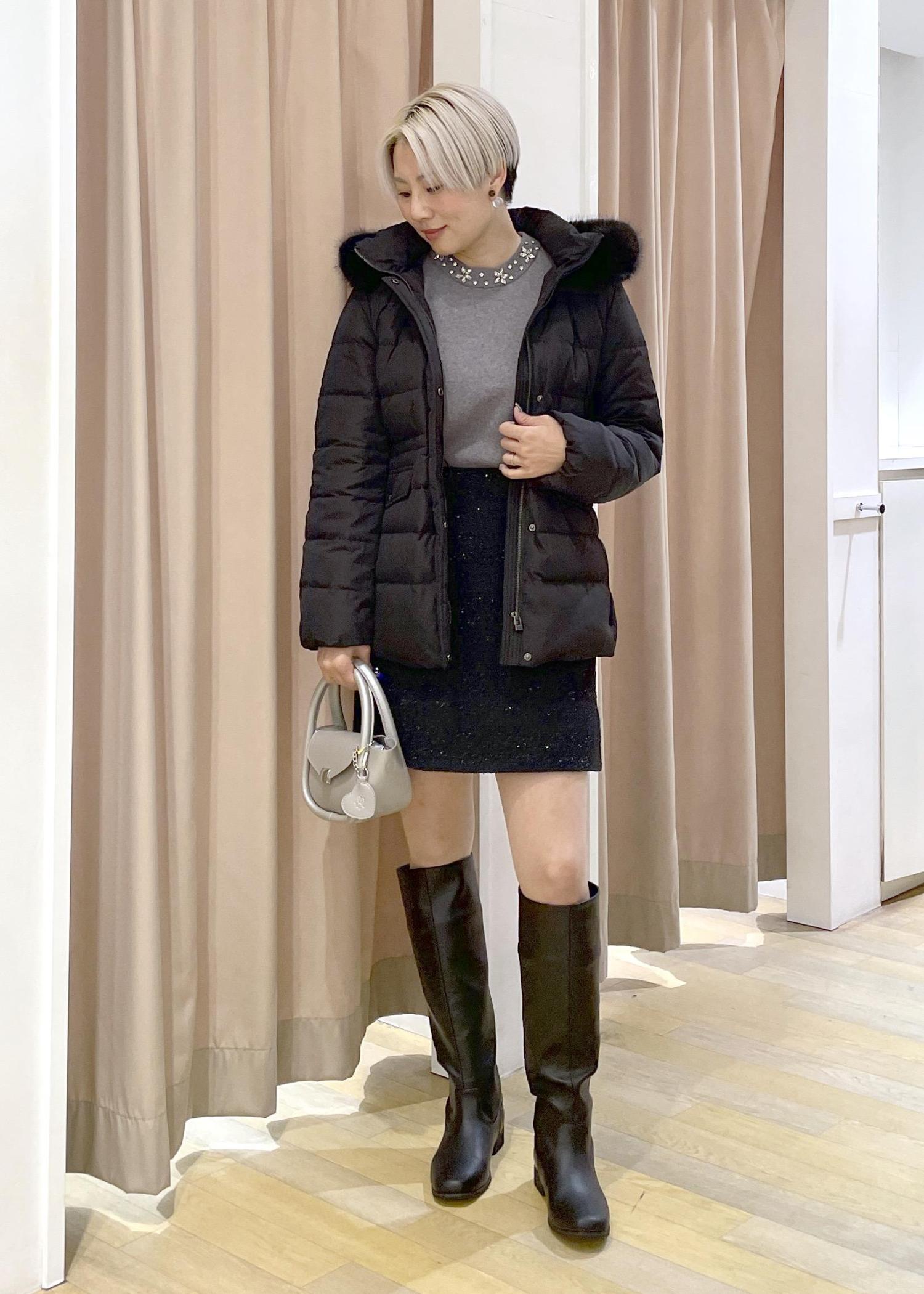 ロングブーツとのバランスがとりやすいミニ丈です。 -